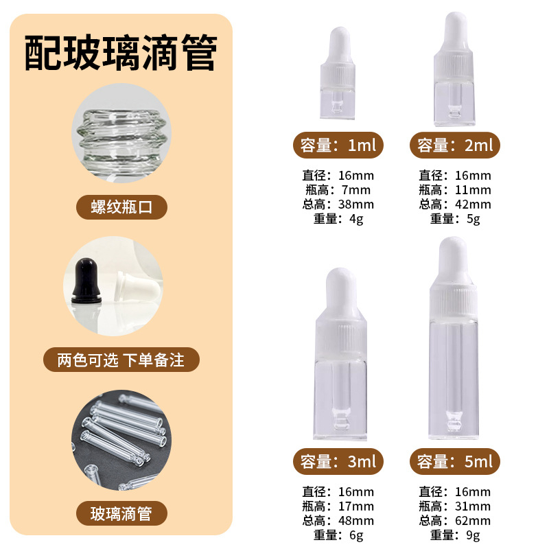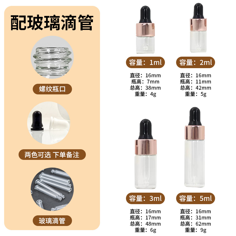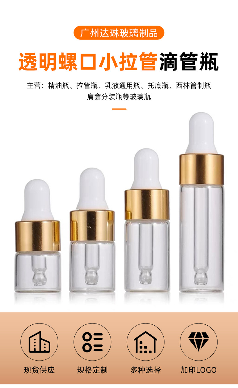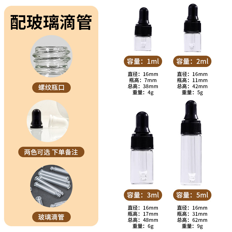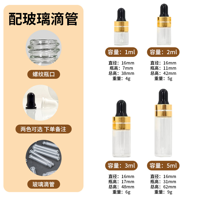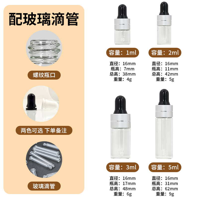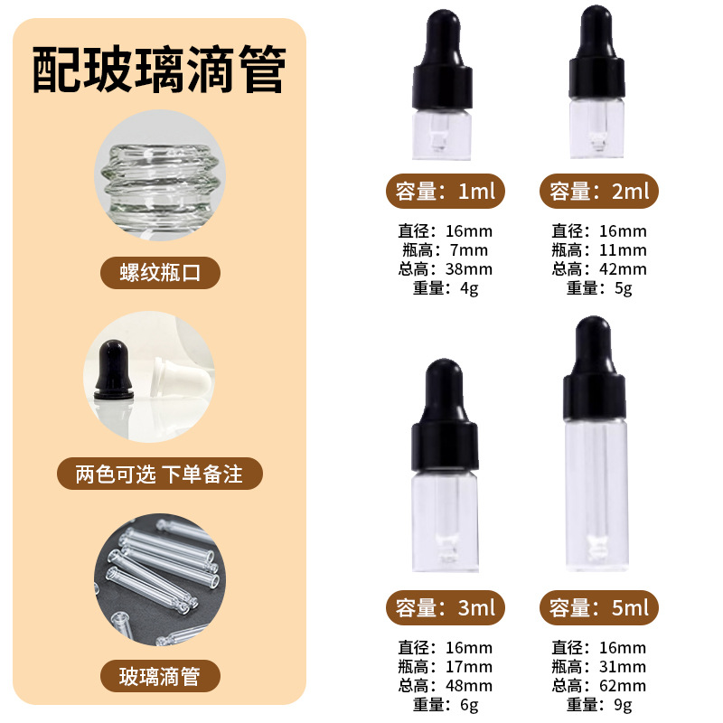 Оригинальная бутылочка для дозирования жидкости, 1-5 мл, прозрачная стеклянная бутылочка для эфирных масел, мини-бутылочка для образцов 2 мл, бутылочка-капельница для эссенций