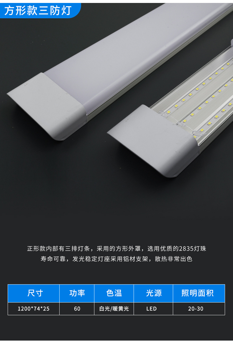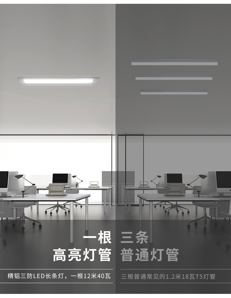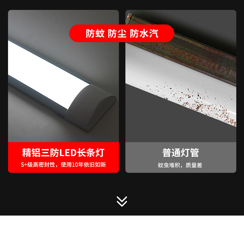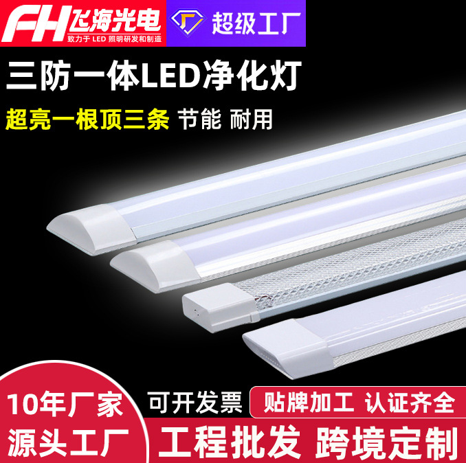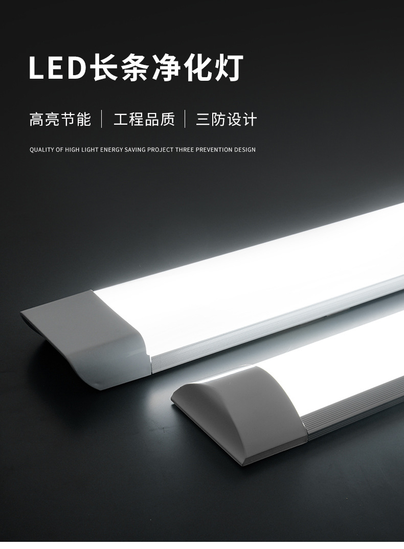 Оптовая продажа светодиодная длинная лампа из железного листа из алюминия сверхяркая энергосберегающая люминесцентная лампа интегрированная офисная бытовая трехзащитная лампа очистки