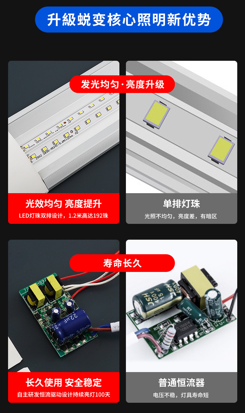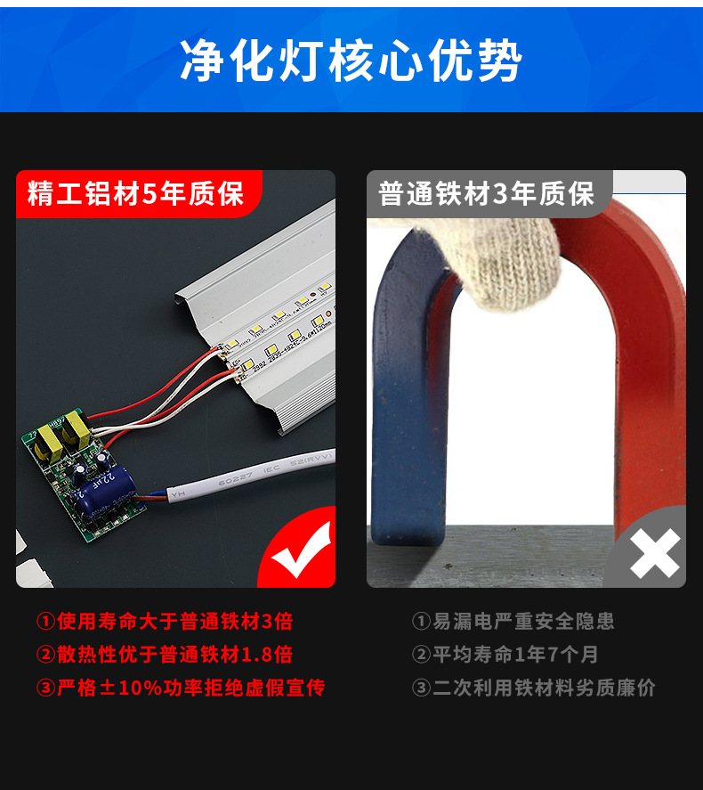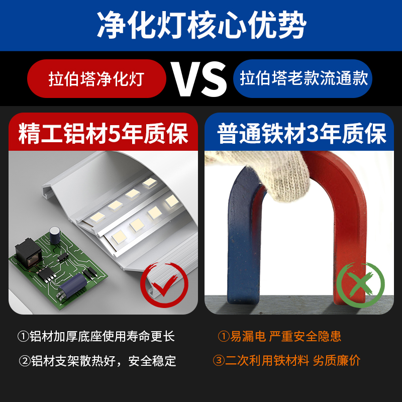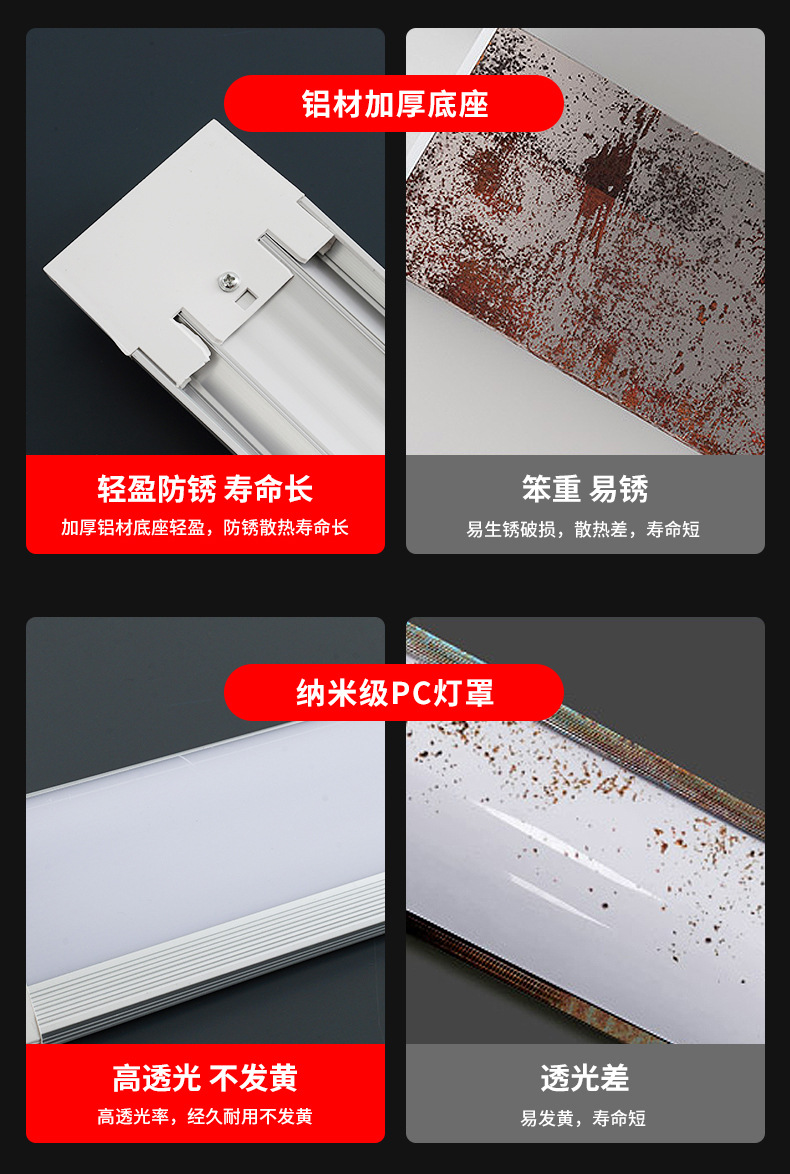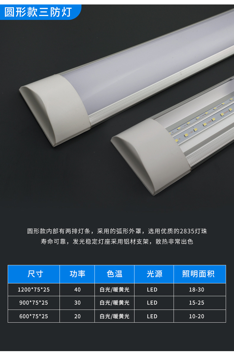 Оптовая продажа светодиодная длинная лампа из железного листа из алюминия сверхяркая энергосберегающая люминесцентная лампа интегрированная офисная бытовая трехзащитная лампа очистки