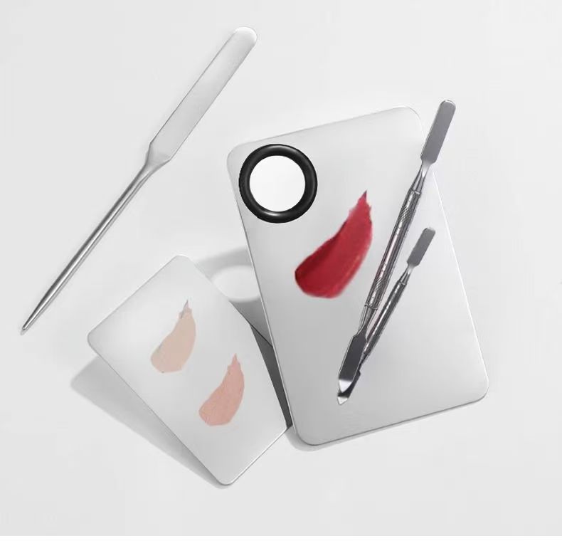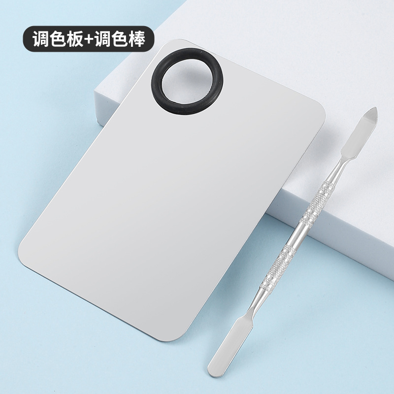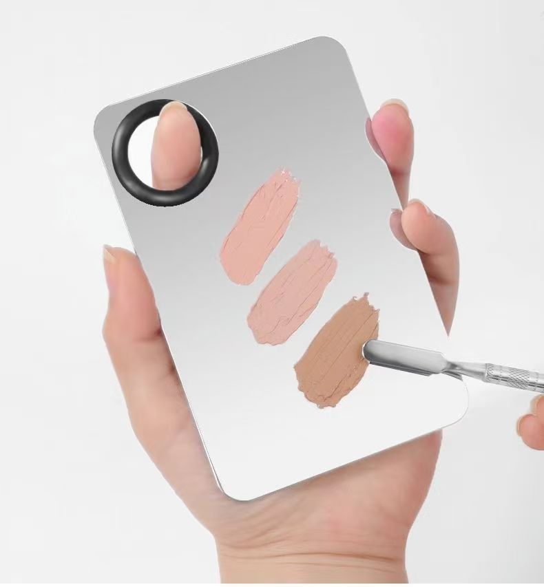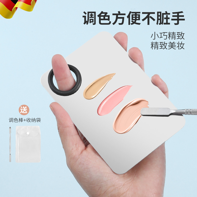 Набор для макияжа из нержавеющей стали: палитра для смешивания цветов, двусторонняя кисть-шпатель для тональной основы