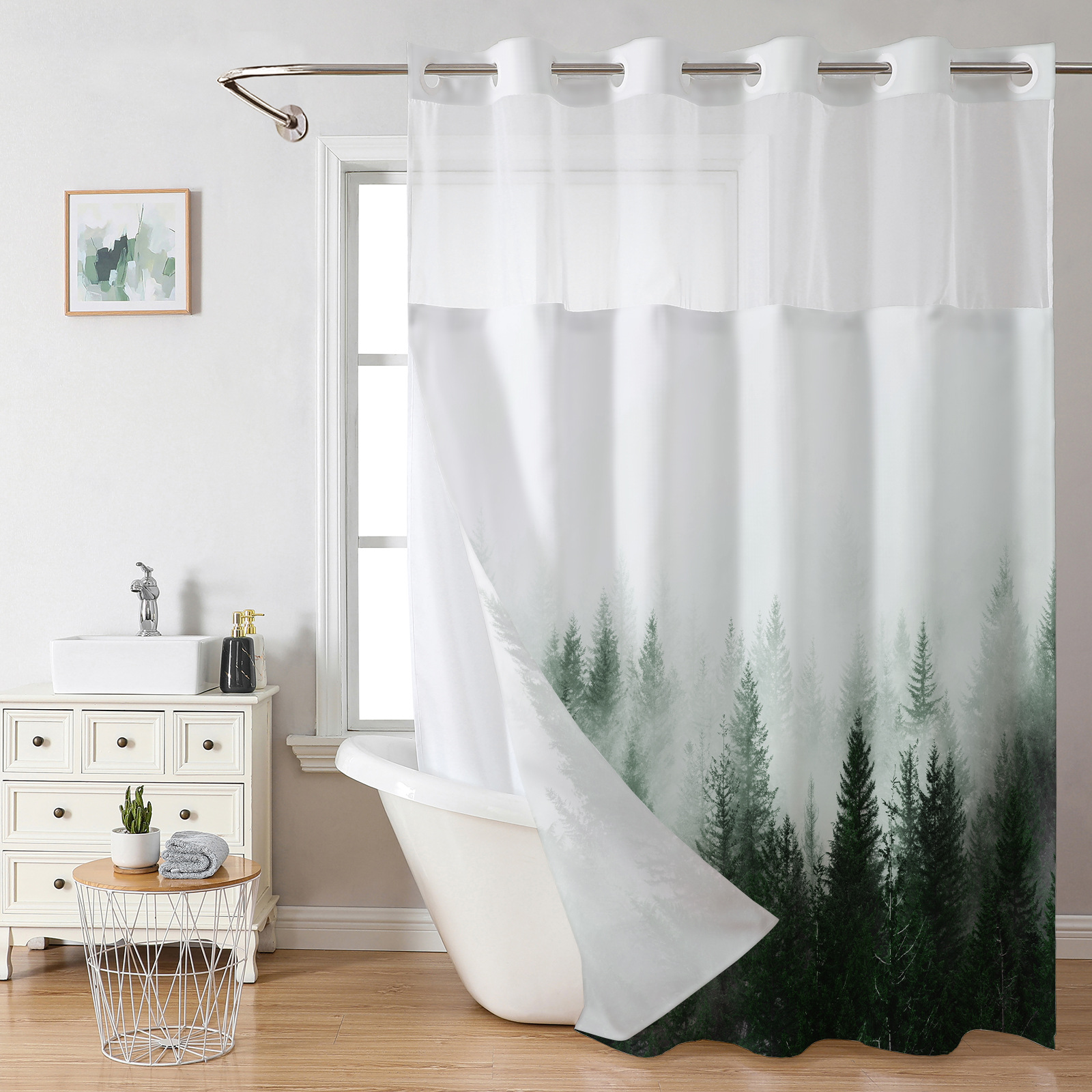 Трансграничная цифровая печать 3D двухслойная большая кольцевая лесная полиэфирная занавеска для душа