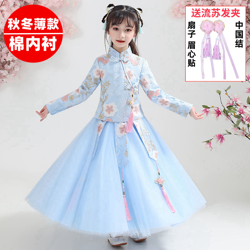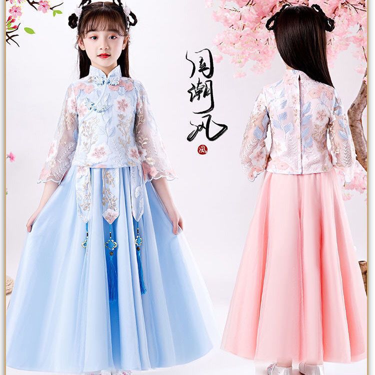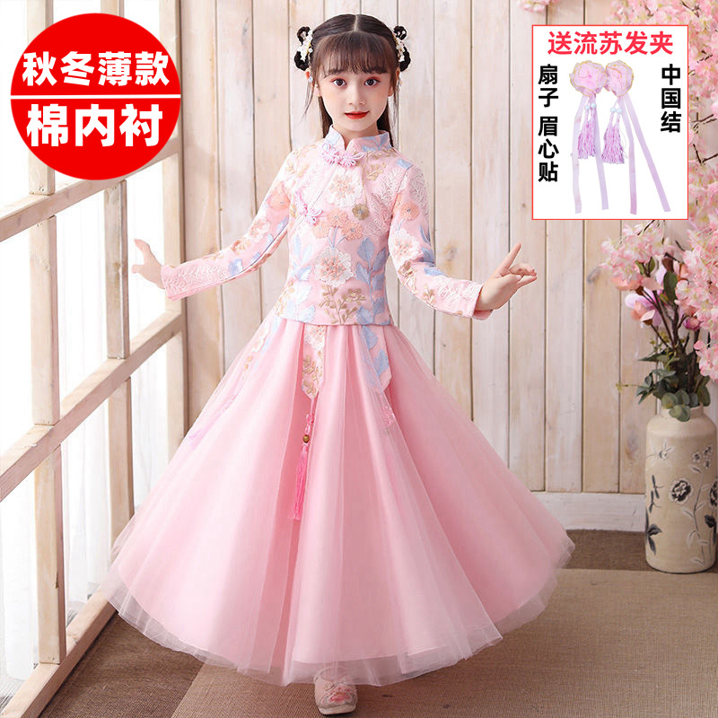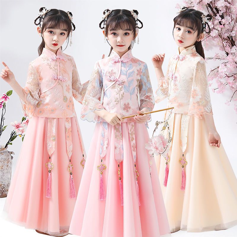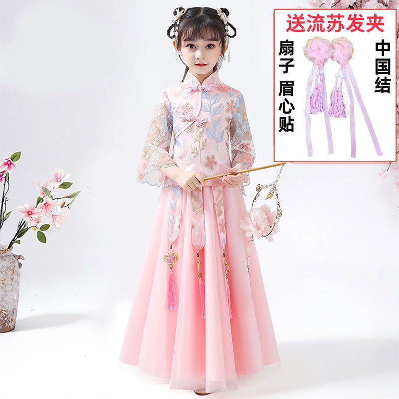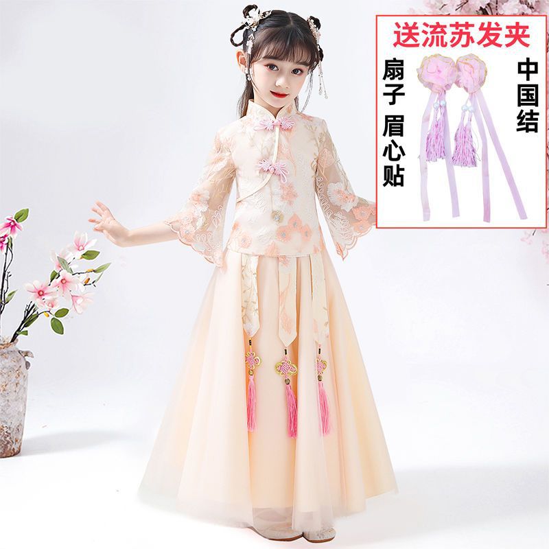 Эксклюзивное платье для девочек Hanfu платье для девочек Tang платье для девочек принцесса платье весеннее платье для весны и осени 2024 новых детей