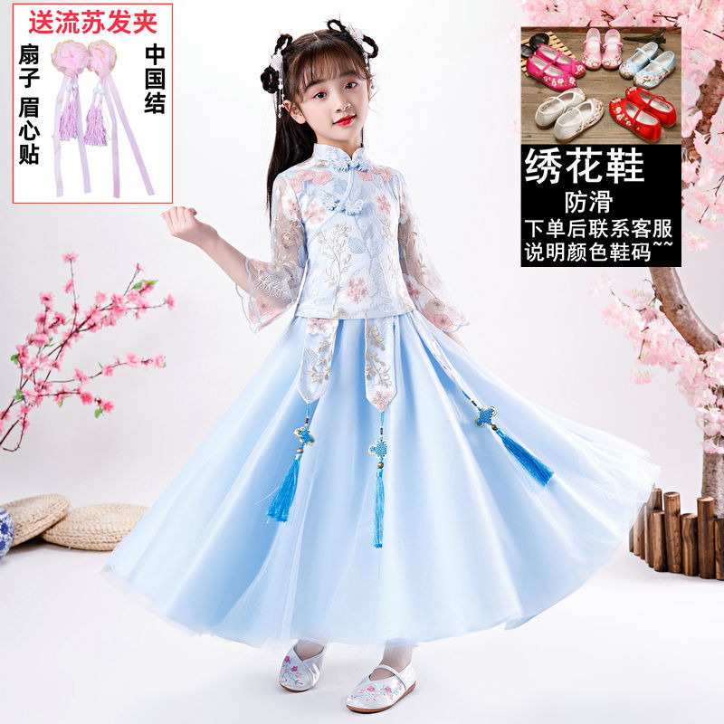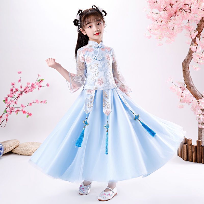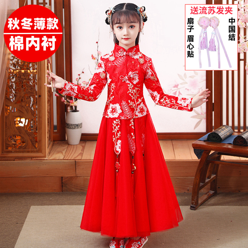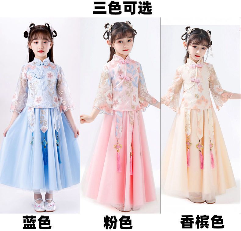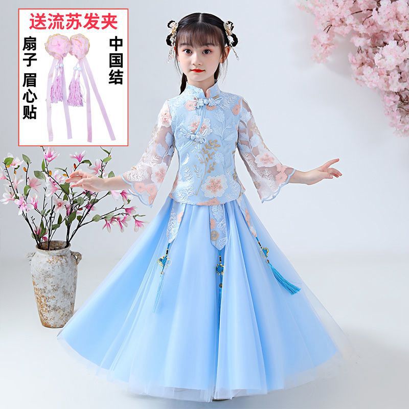 Эксклюзивное платье для девочек Hanfu платье для девочек Tang платье для девочек принцесса платье весеннее платье для весны и осени 2024 новых детей