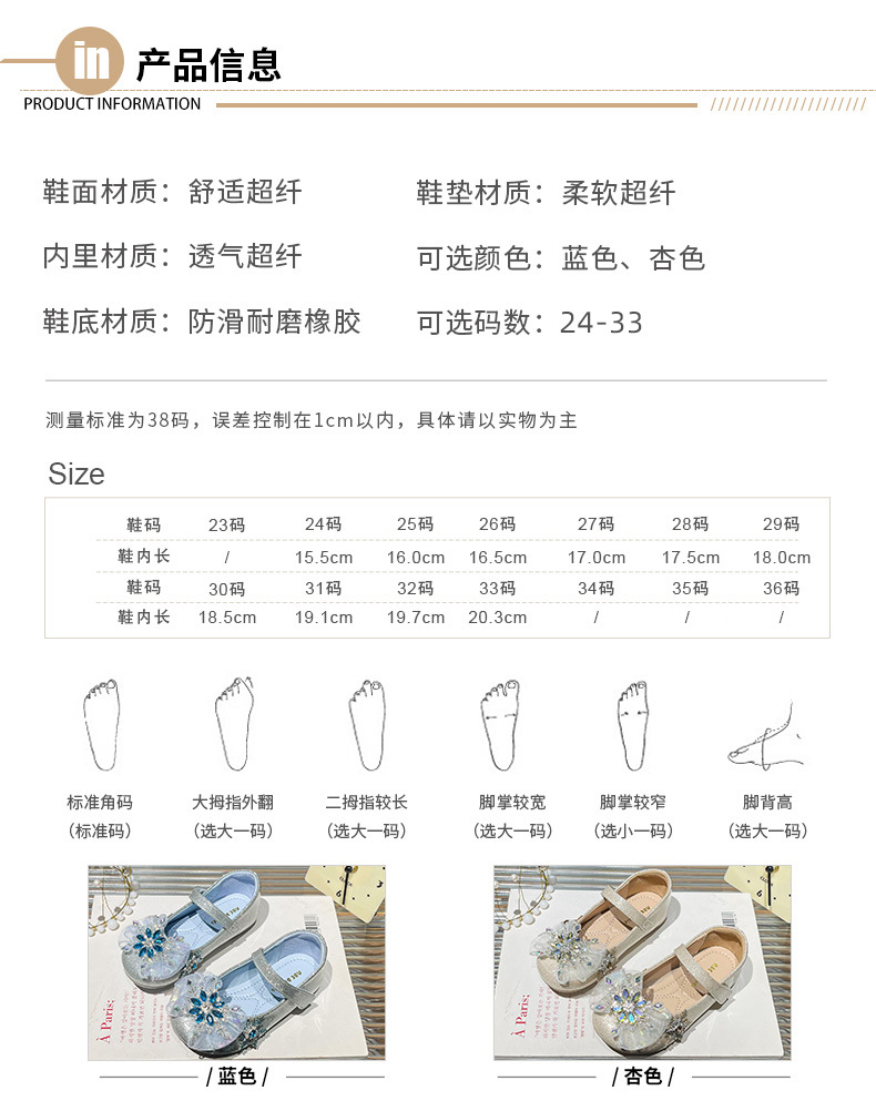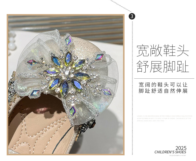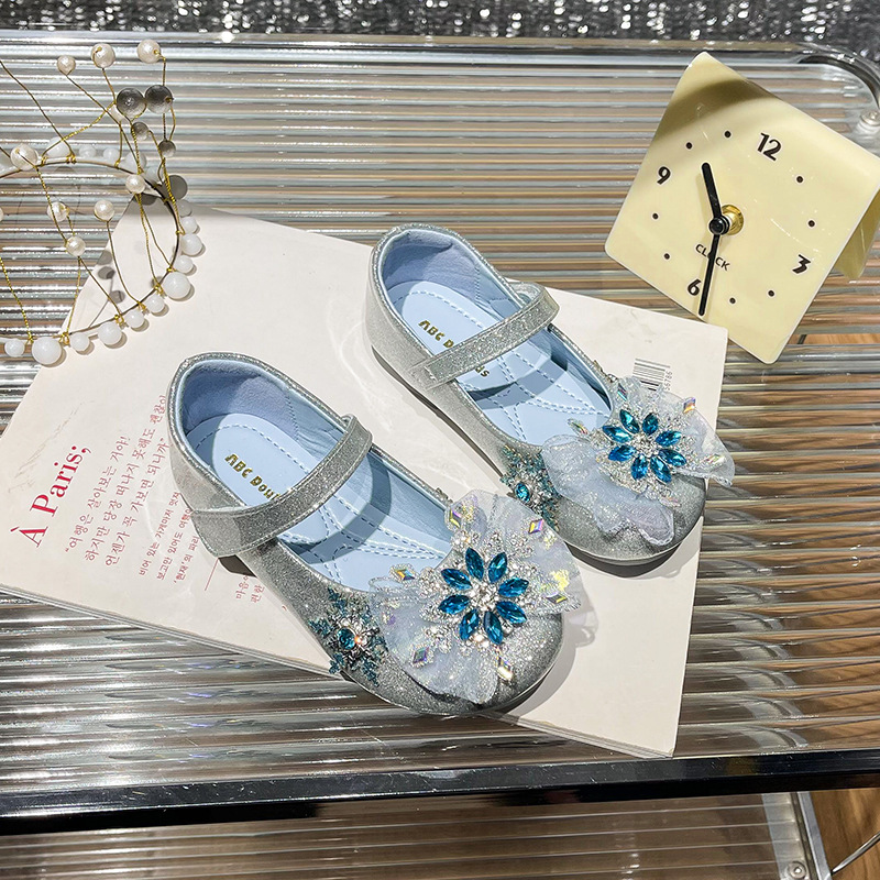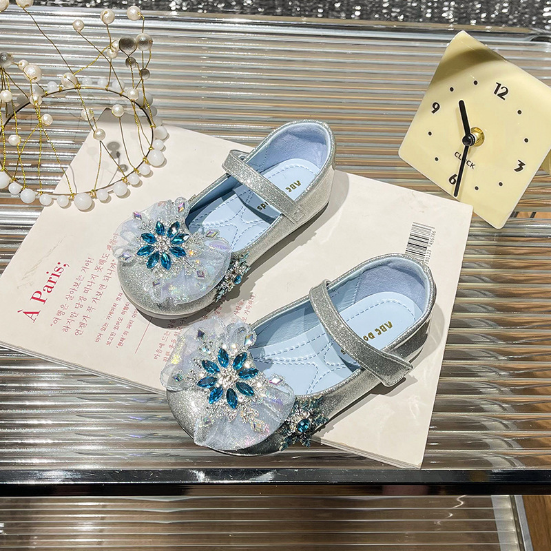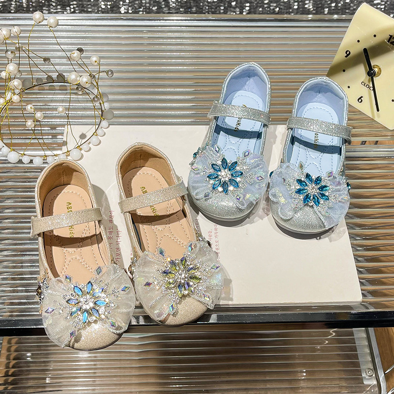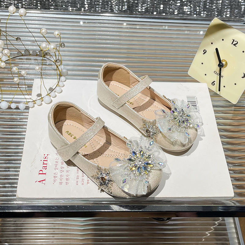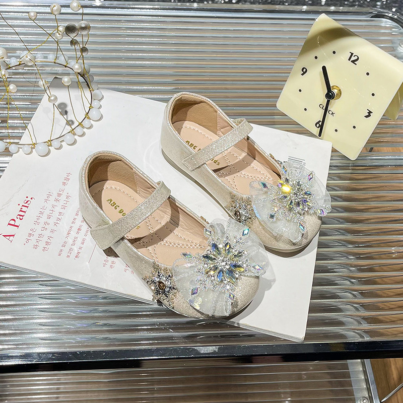 Хрустальные туфли для девочек 2025 новая весна новая детская мода на липучке плоские туфли детские стразы на мягкой подошве принцессы