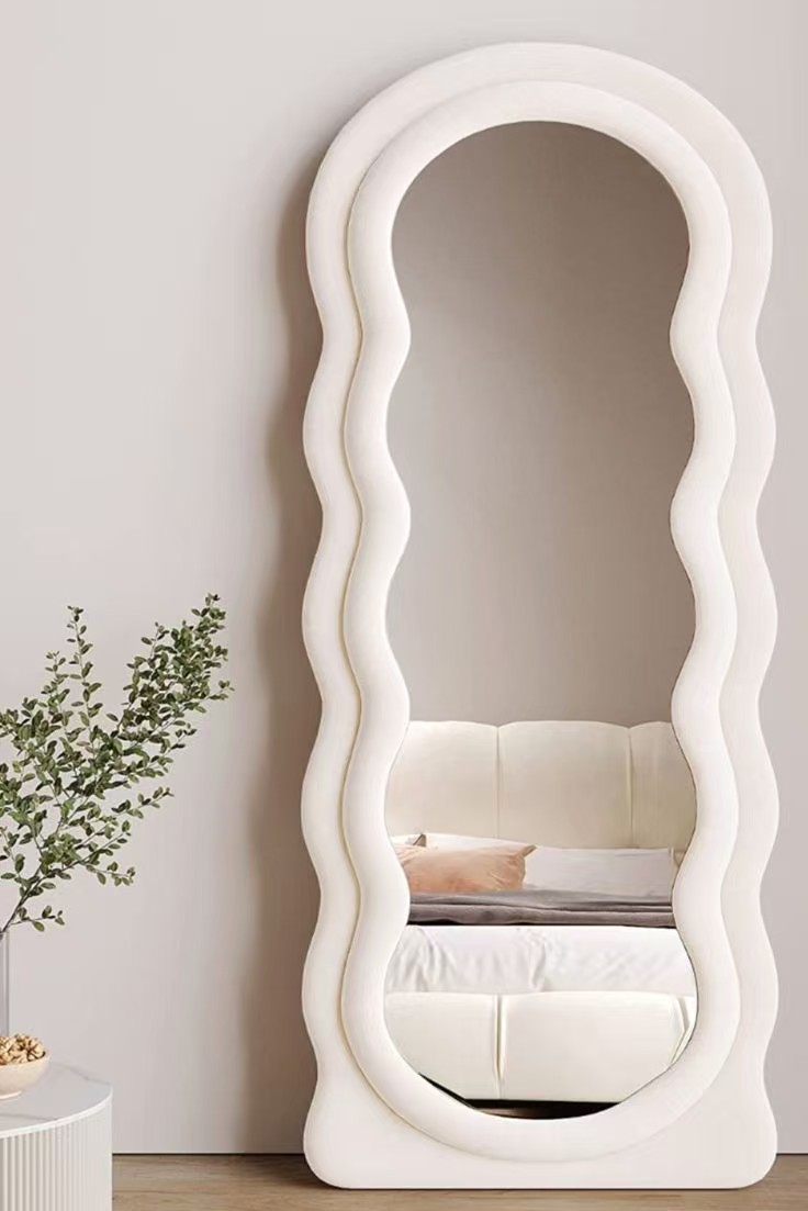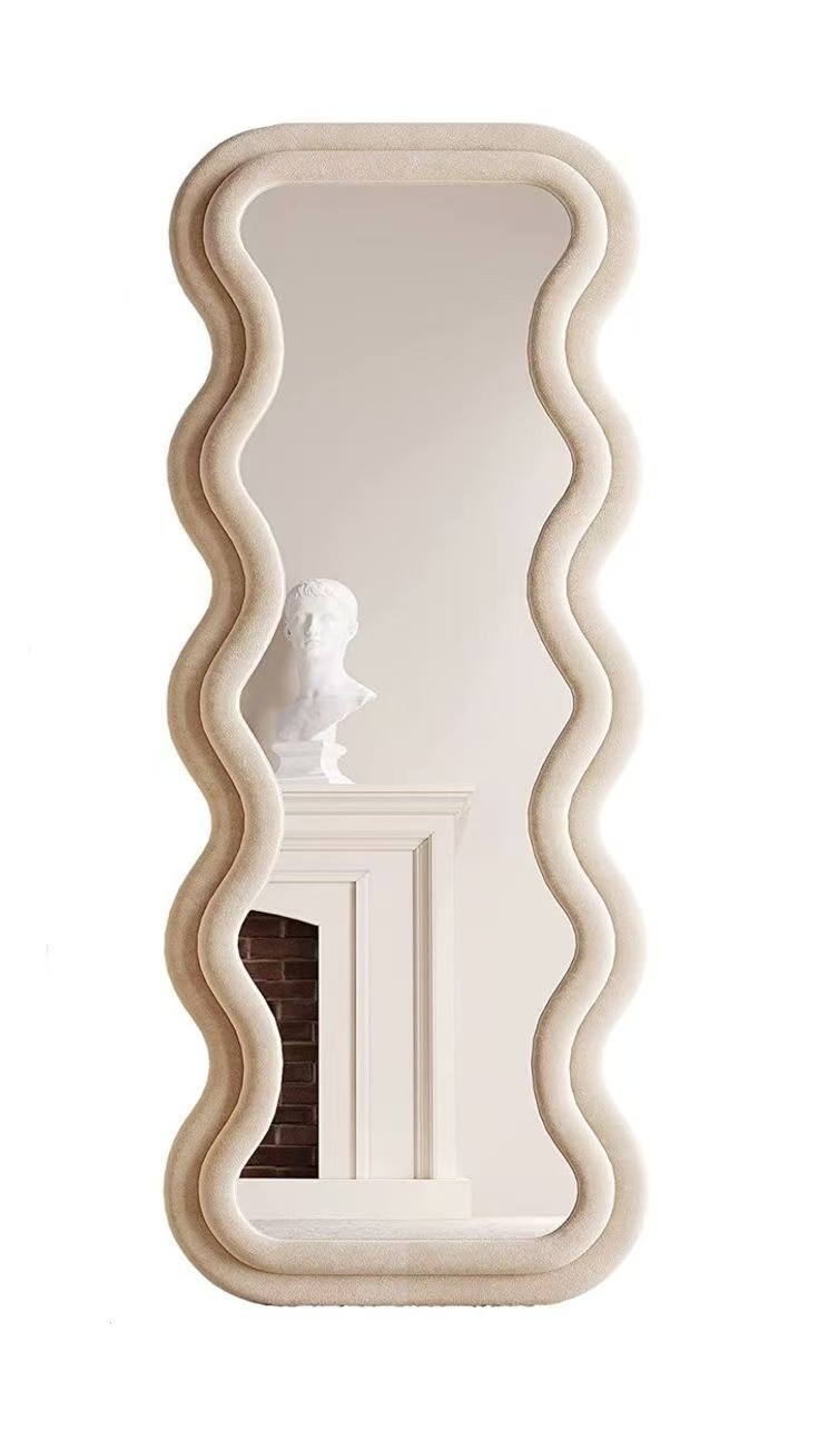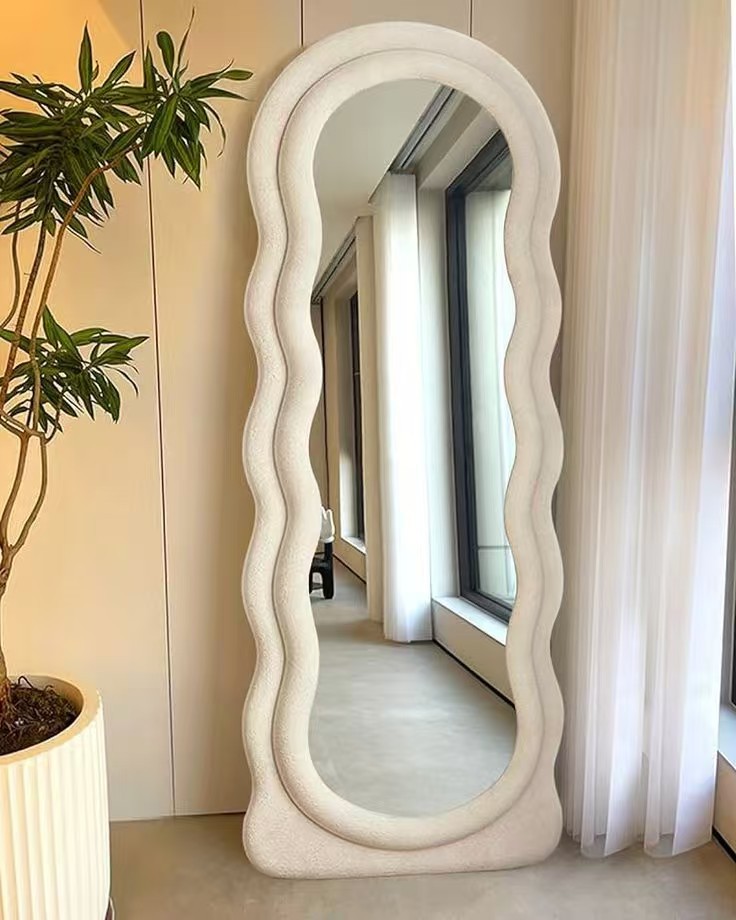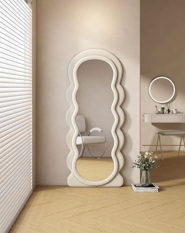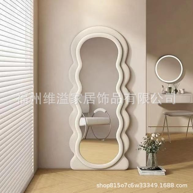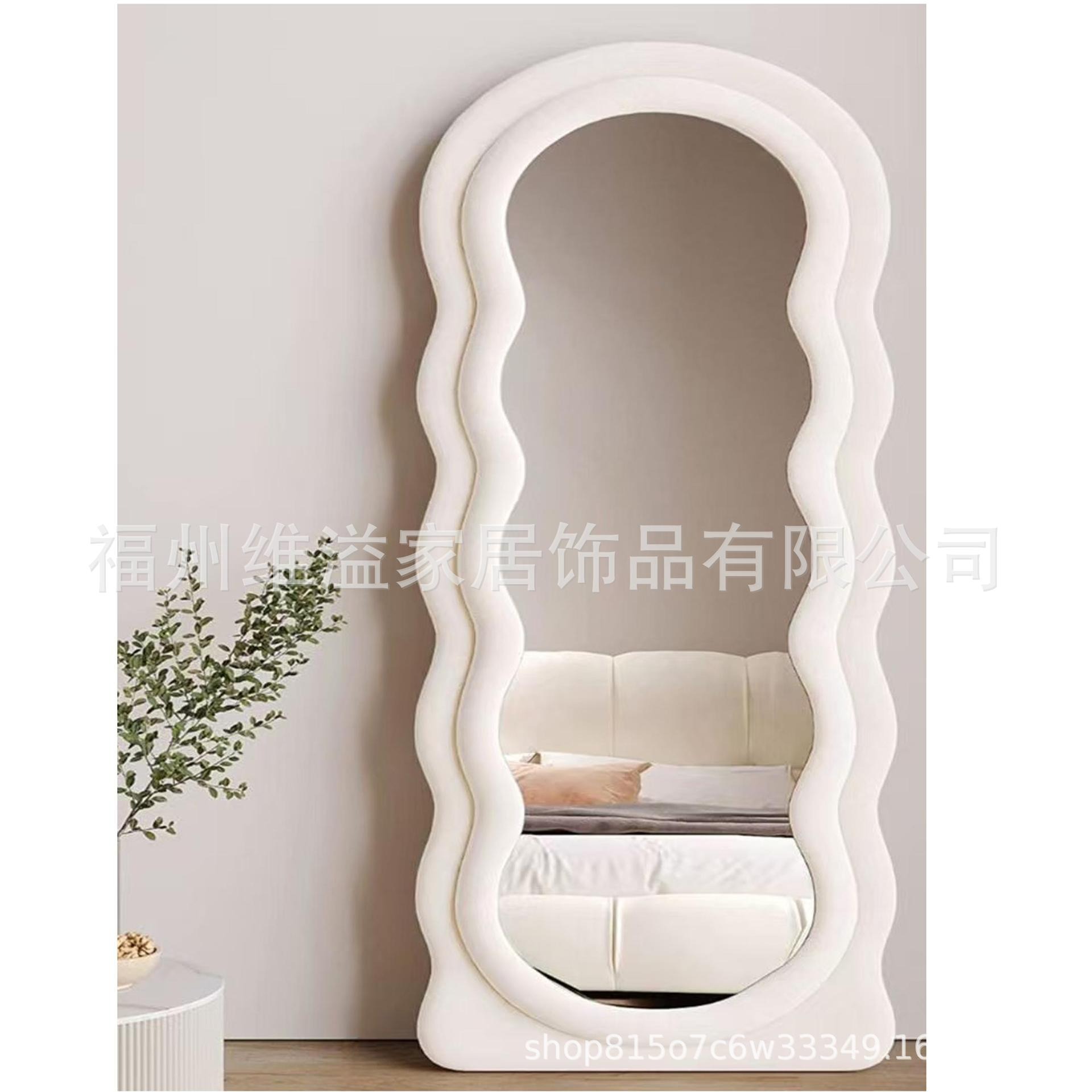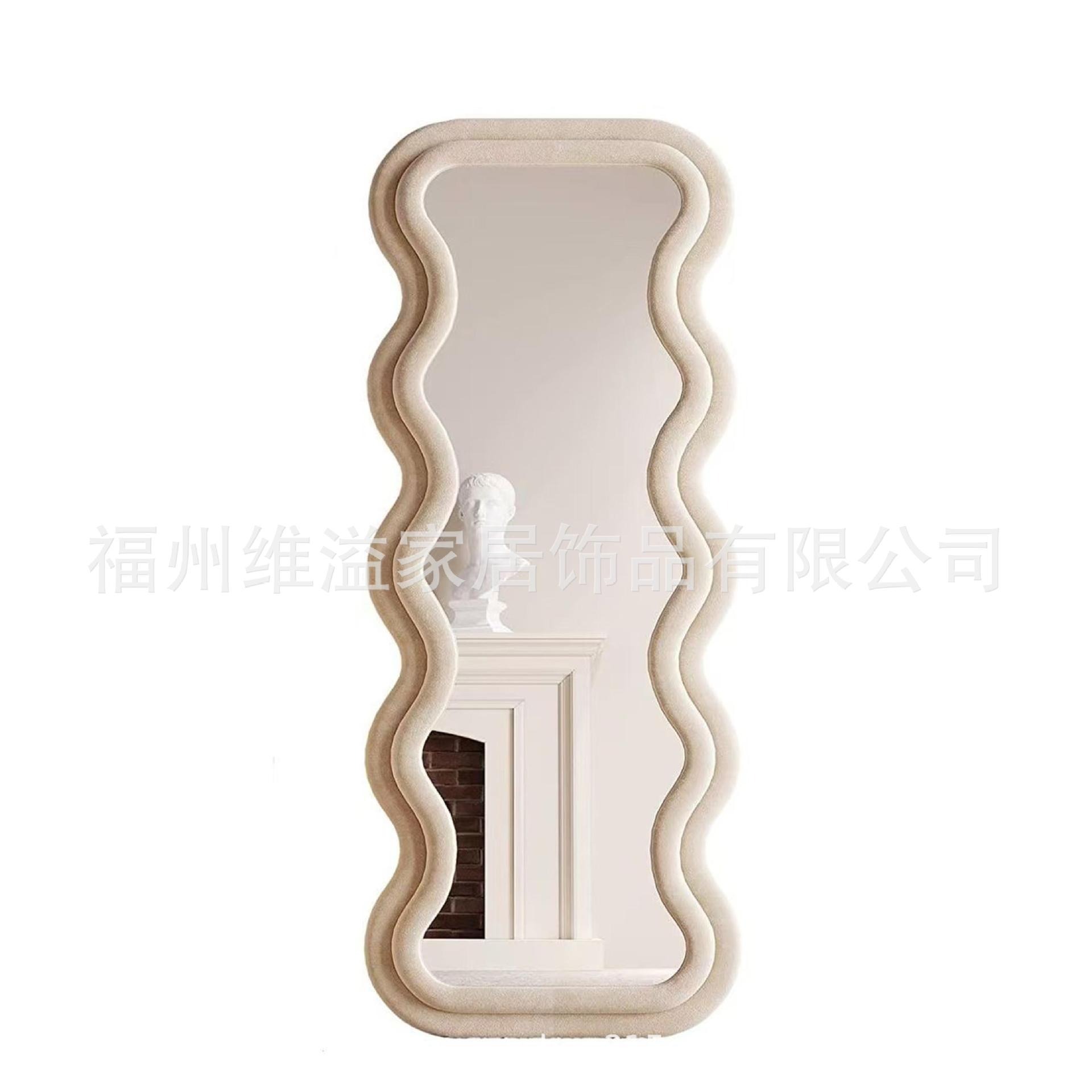 Зеркало в полный рост Amazon Wayfair для трансграничной электронной торговли, с неровной поверхностью из вельвета, в кремовом стиле, ручной работы, в раме из массива дерева