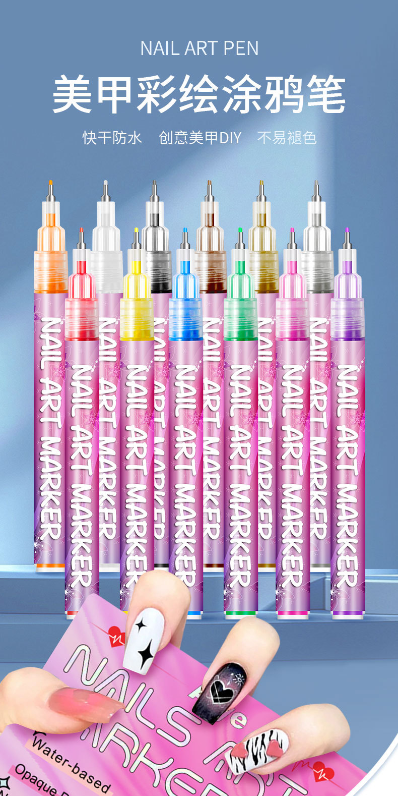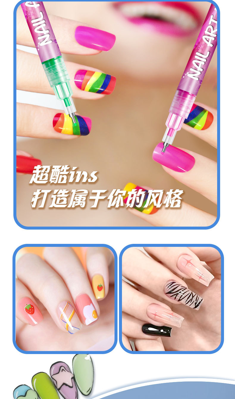 Набор для дизайна ногтей: ручка для нейл-арта, ручка для рисования линий, ручка для точечной росписи, акриловая краска для ногтей, гель-лак для ногтей