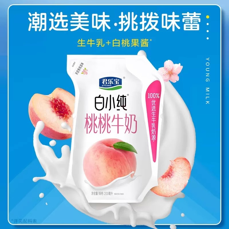 Junlebao белый чистый персиковый персиковый молочный мешок для студентов 200 мл * 12 мешков клубничного персикового молока для завтрака