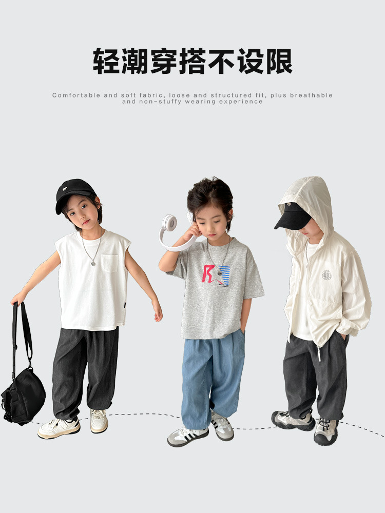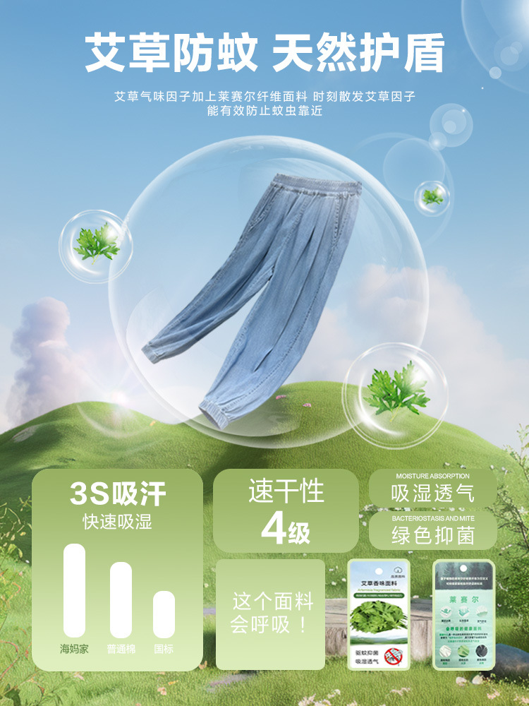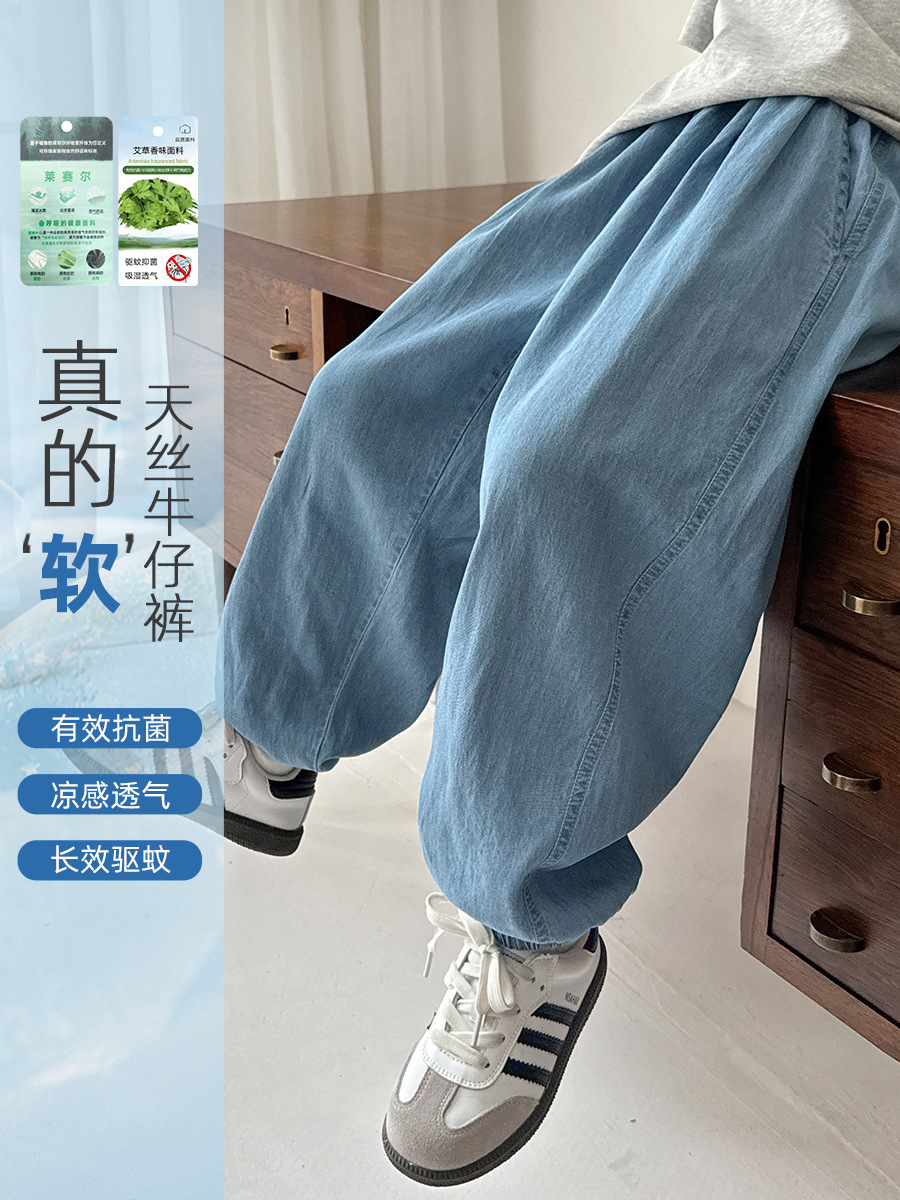 Новые летние детские брюки Haima 2026 для мальчиков из тенсела, тонкие длинные брюки с защитой от комаров, стильная летняя одежда для детей постарше.