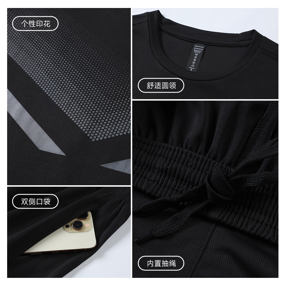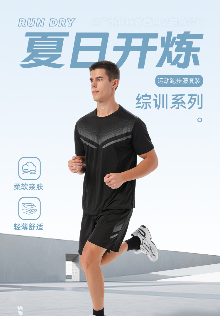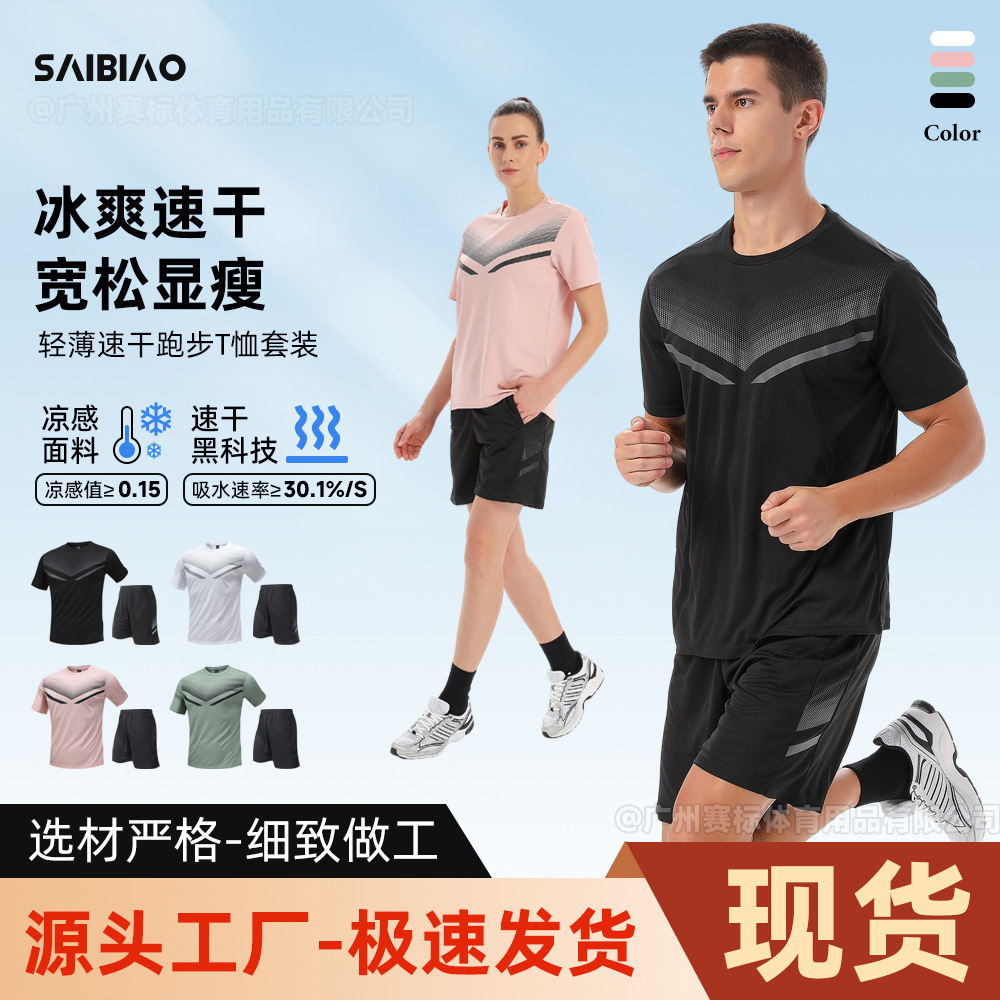 运动服套装批发男跑步短袖冰丝夏季速干衣篮球服羽毛健身衣服短裤