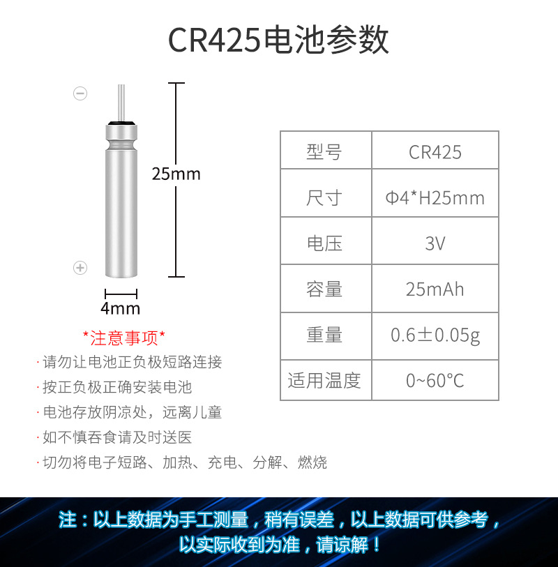 目前市场上面95%的电子漂用的都是425的电池,是目前用的较多常见的型号。本厂保证所销售电池为zui新。近时间生产。请所有顾客根据自己的销售能力购买电池数量,及选择自己需要的规格,切记!动力源电池保质期内有任何质量问题(非人为因素)可包换!