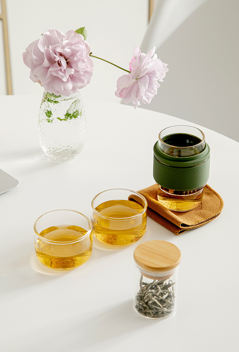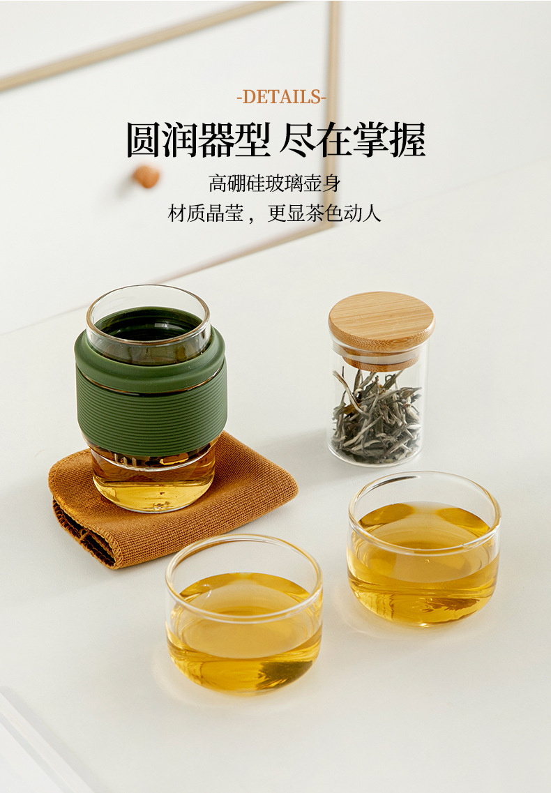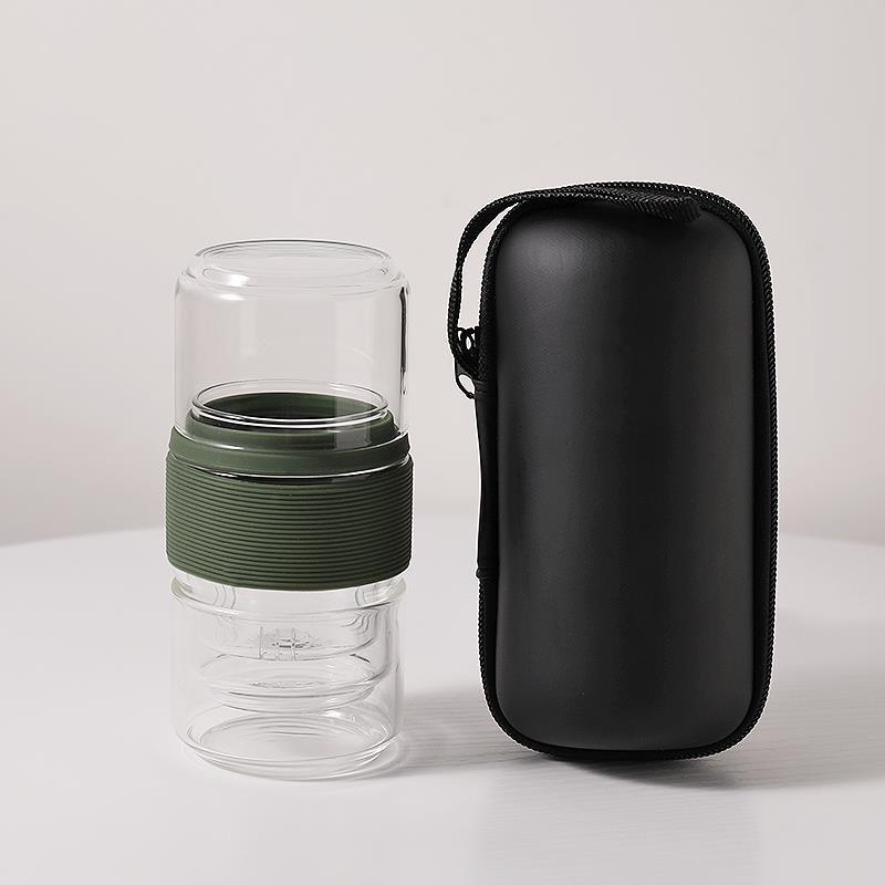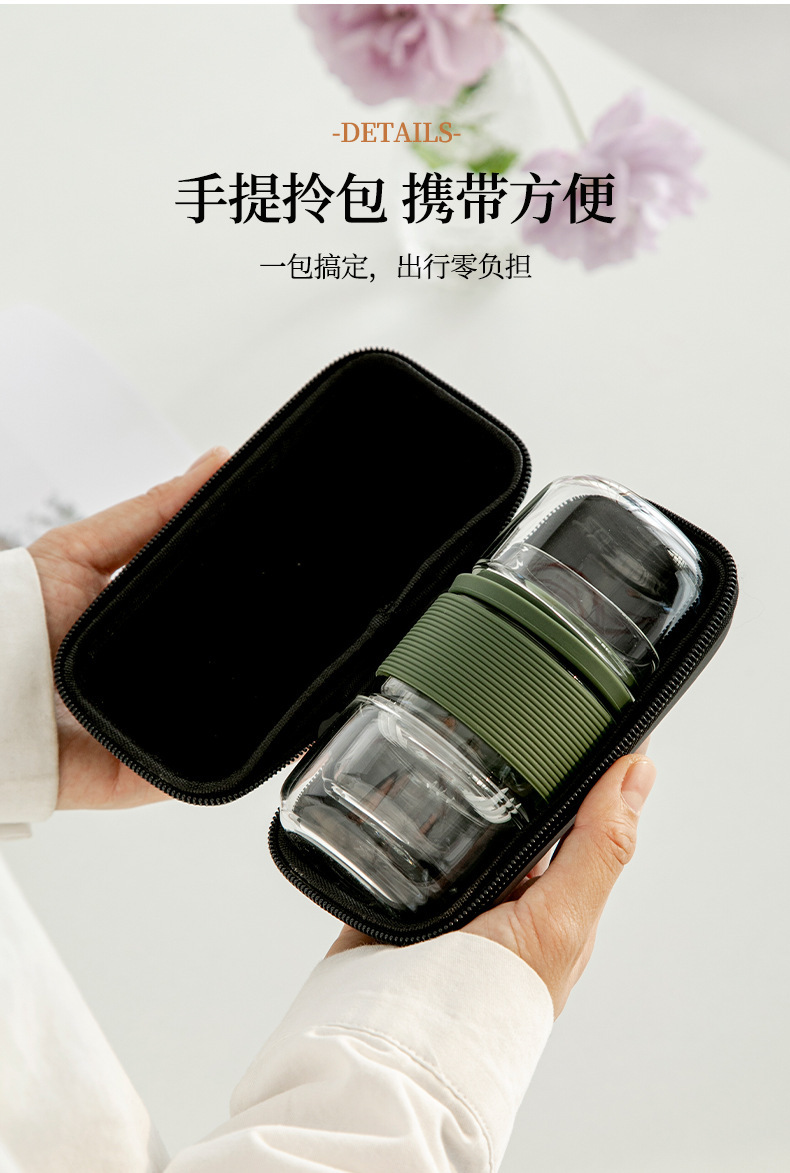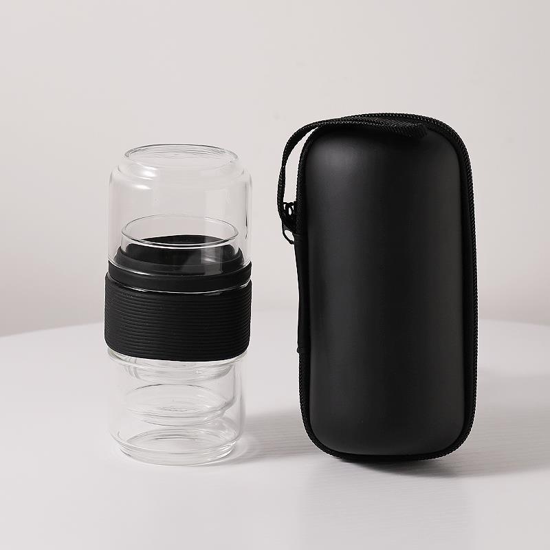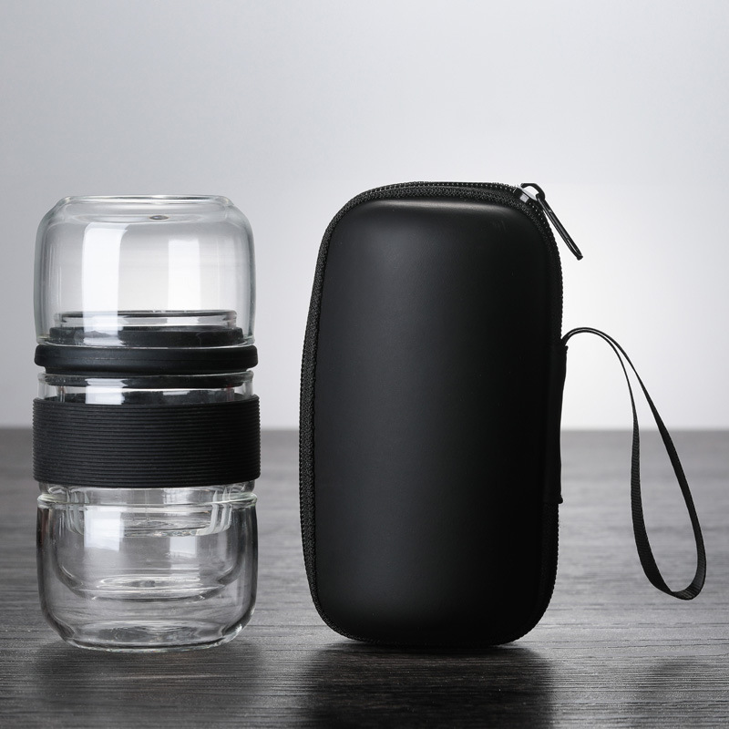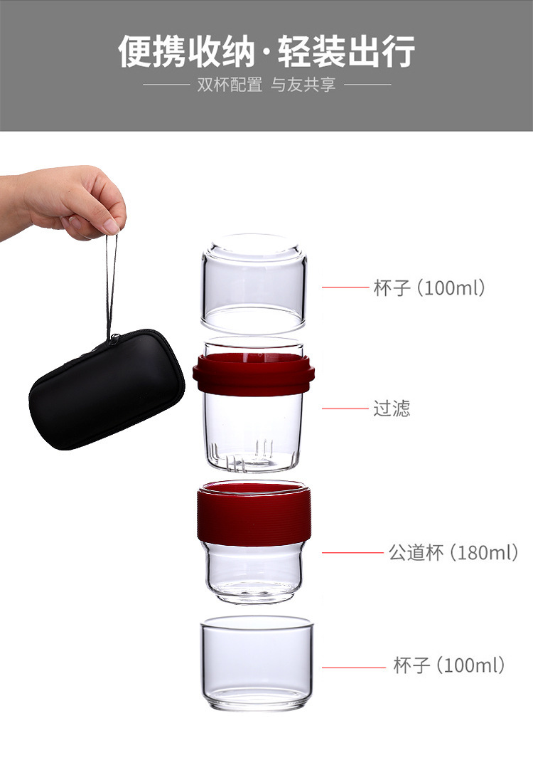 Термостойкий стеклянный дорожный чайный набор: быстрый заварочный чайник с двумя чашками для кунг-фу чая, портативный, с функцией хранения