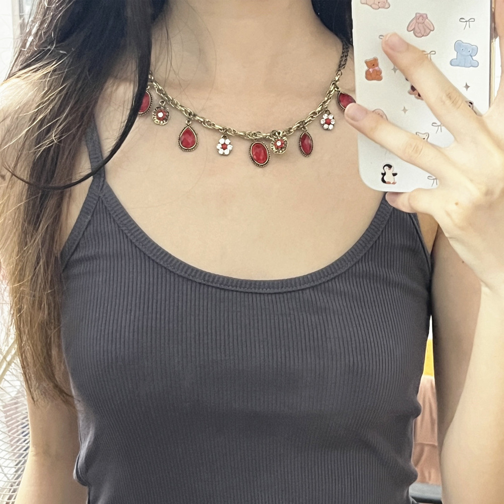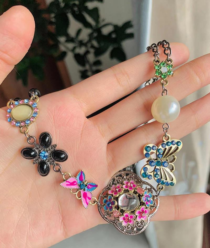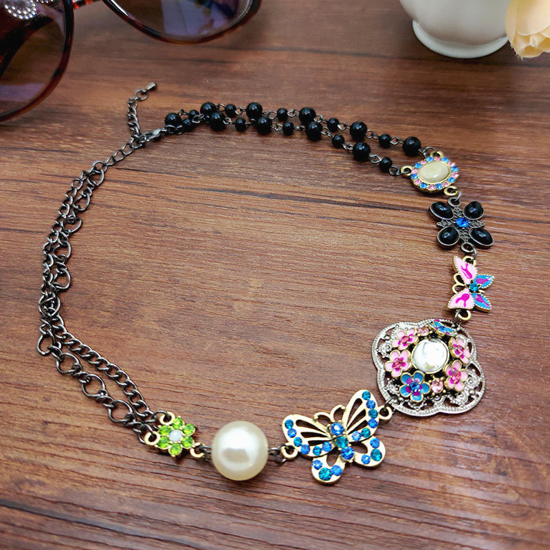 Европейские и американские ретро цветные стразы бабочки полые цветы жемчужные женские короткие ожерелья ретро стиль ожерелья старые пары ожерелья