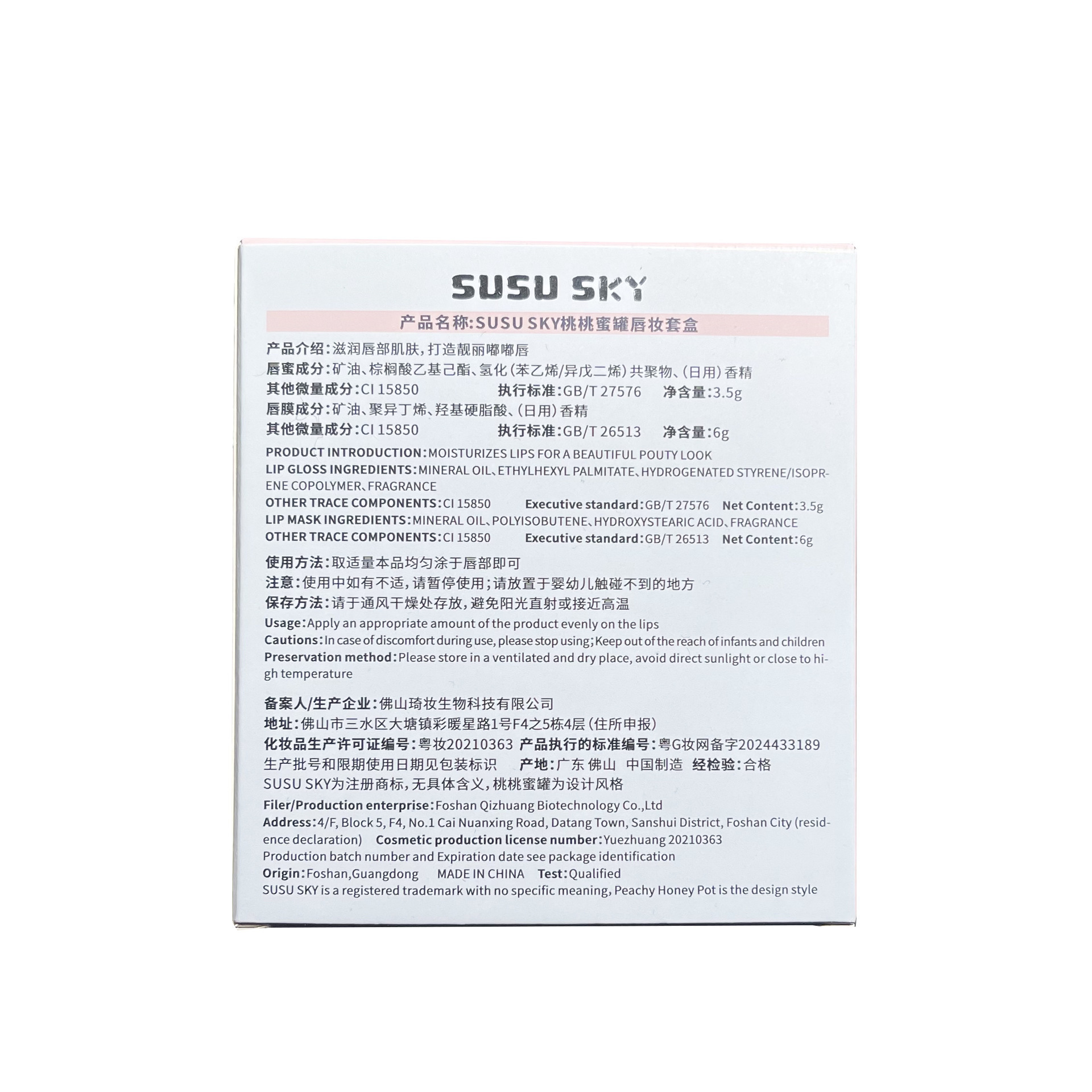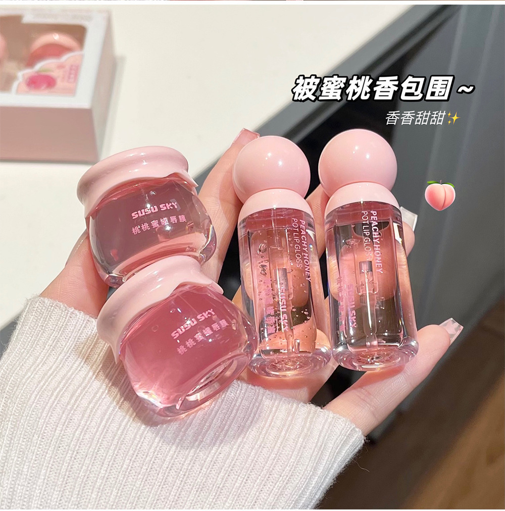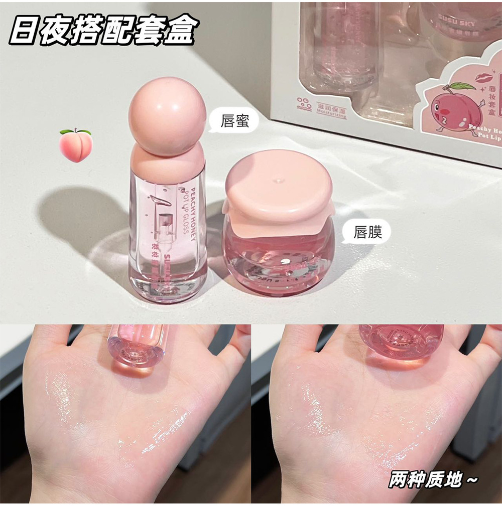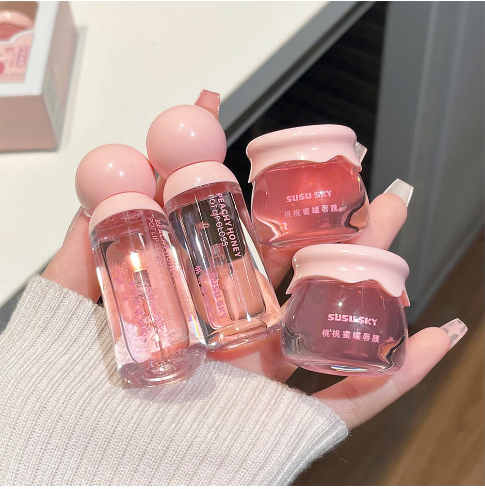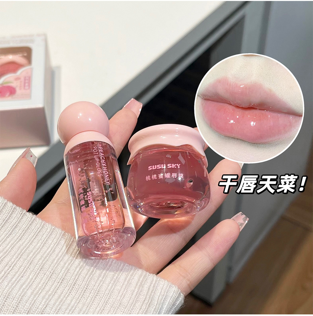 SUSU SKY персиковый персиковый медовый горшок для губ. Коробка для макияжа. Увлажняющая и увлажняющая.