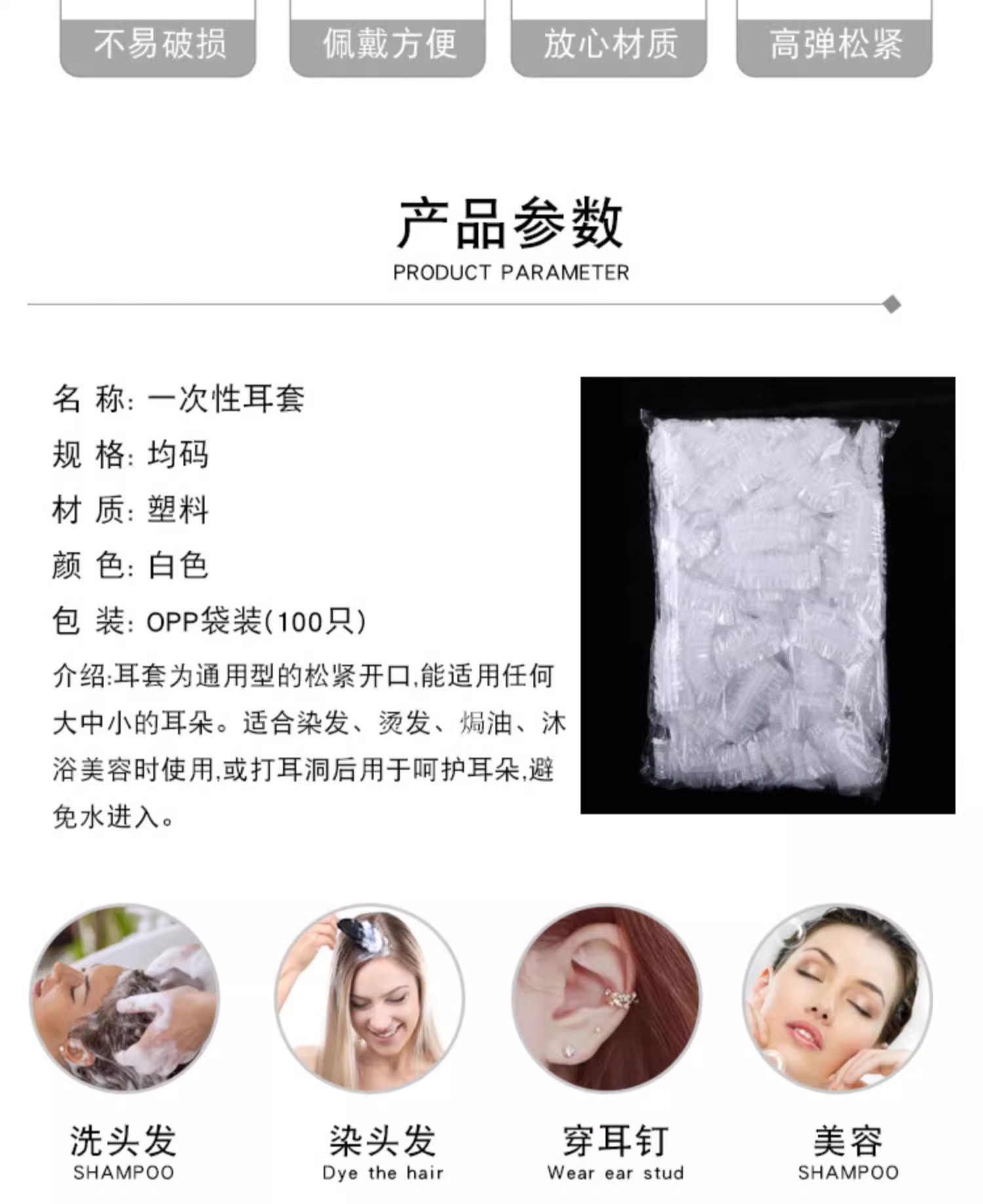 100 одноразовых водонепроницаемых накладок для ушей для окрашивания волос, ухода за волосами, купания, косметических процедур, мытья головы и предотвращения попадания воды в проколы в ушах.