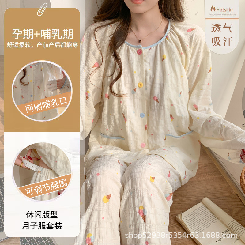 Облачный хлопчатобумажный костюм весной и летом тонкая послеродовая беременная пижама грудное вскармливание во время беременности
