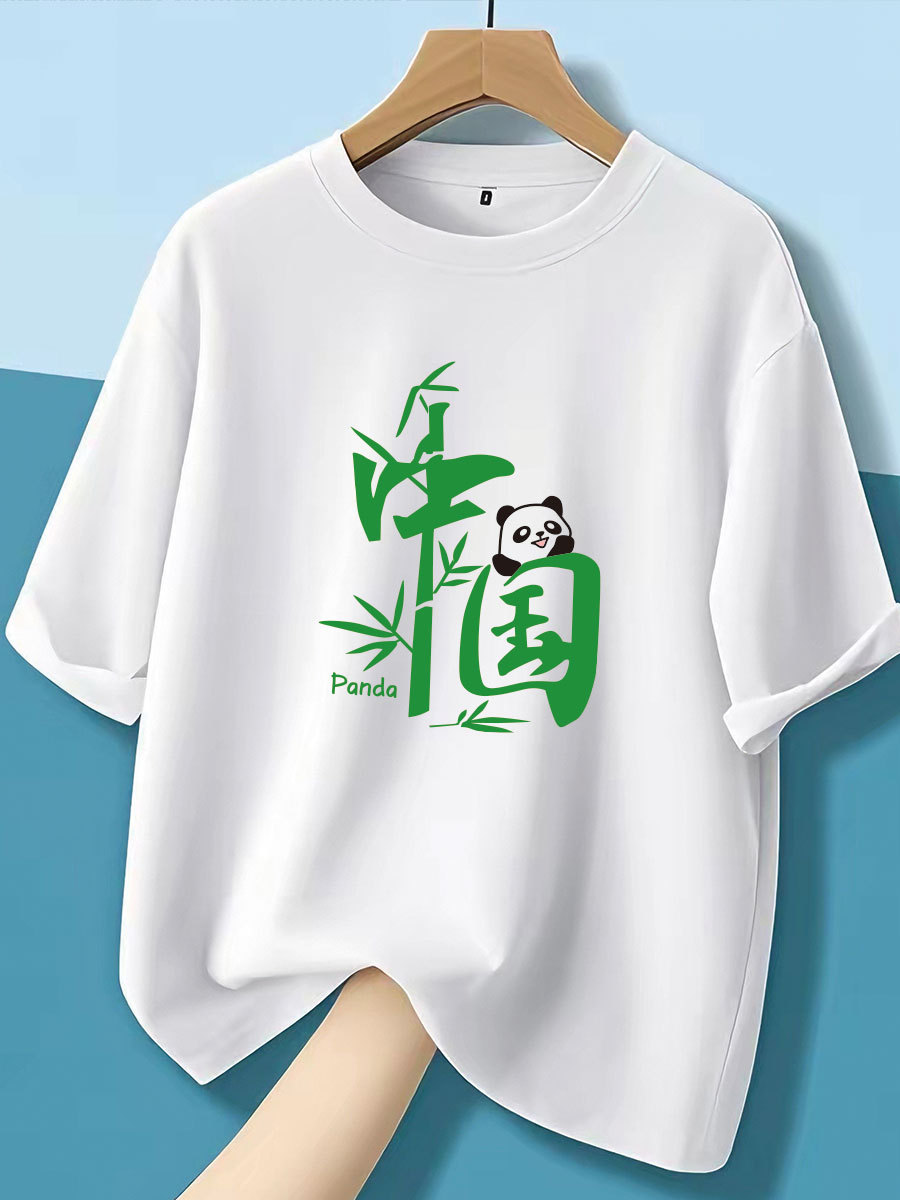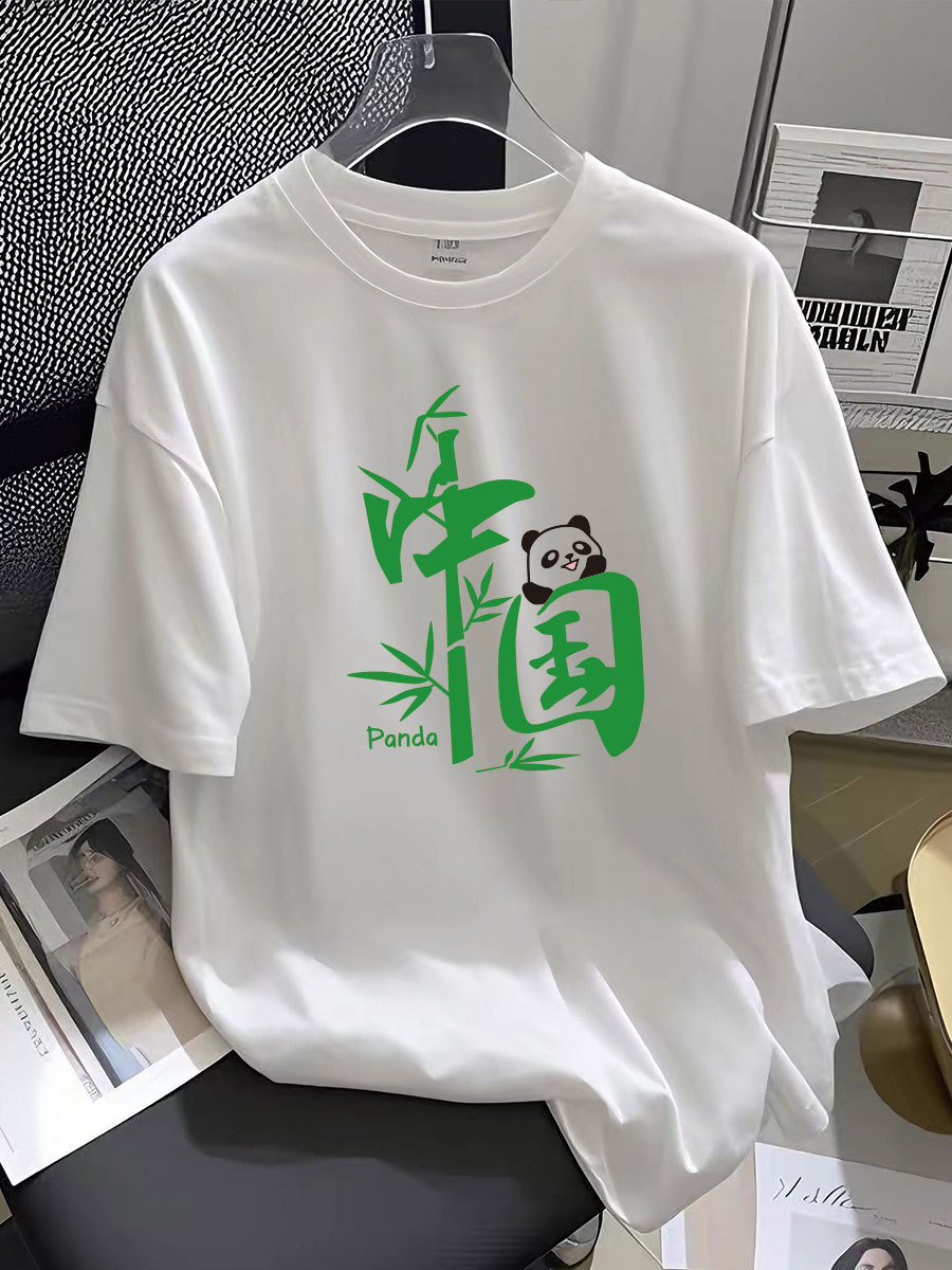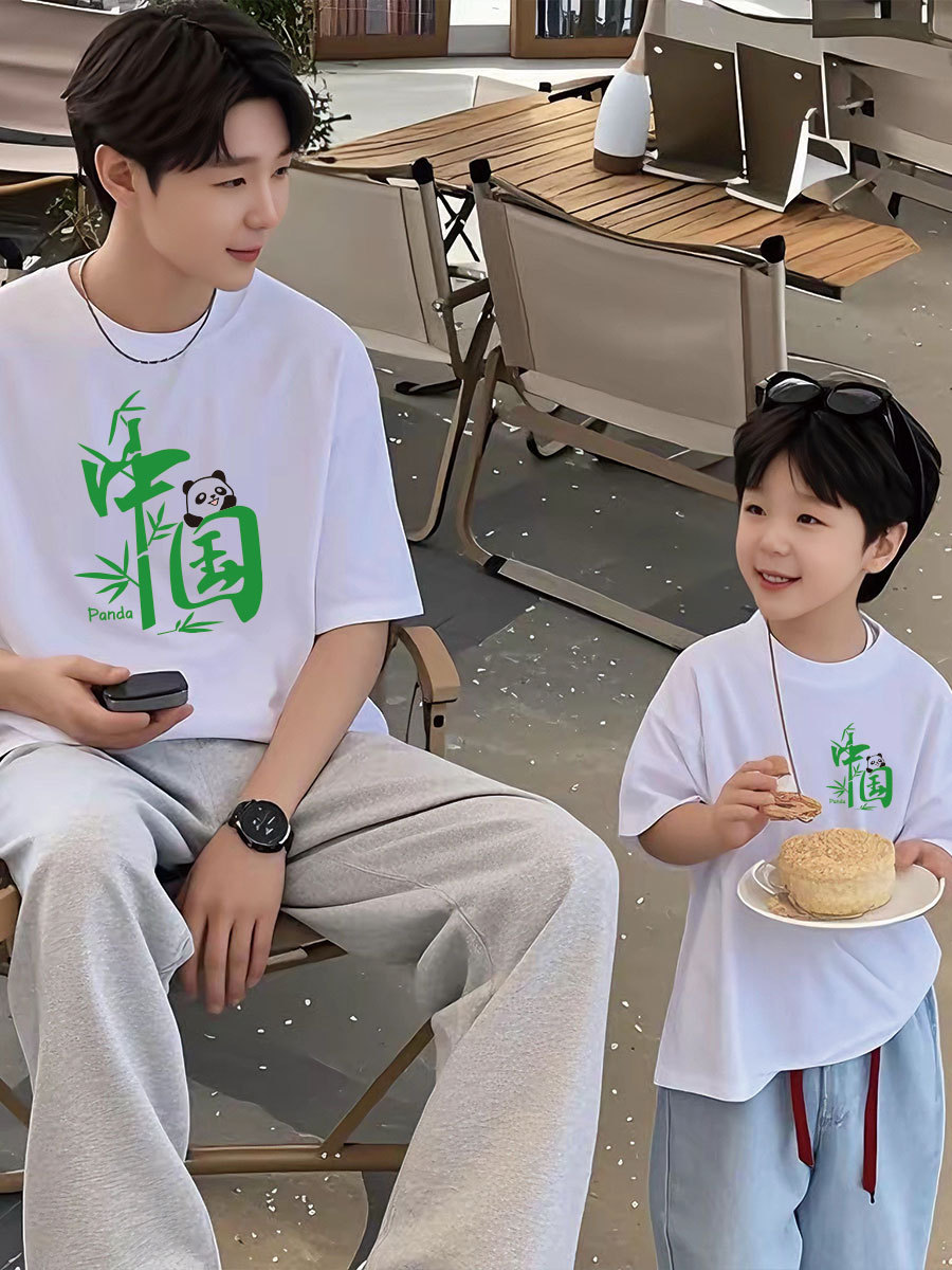 Белый; 006-China Panda (180 г чесаного хлопка, одежда для родителей и детей, шелкография)
