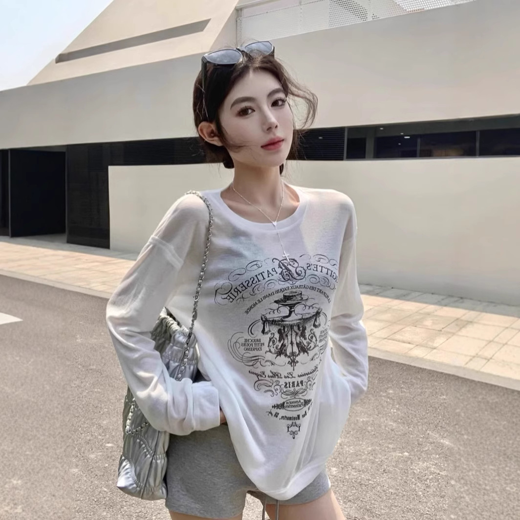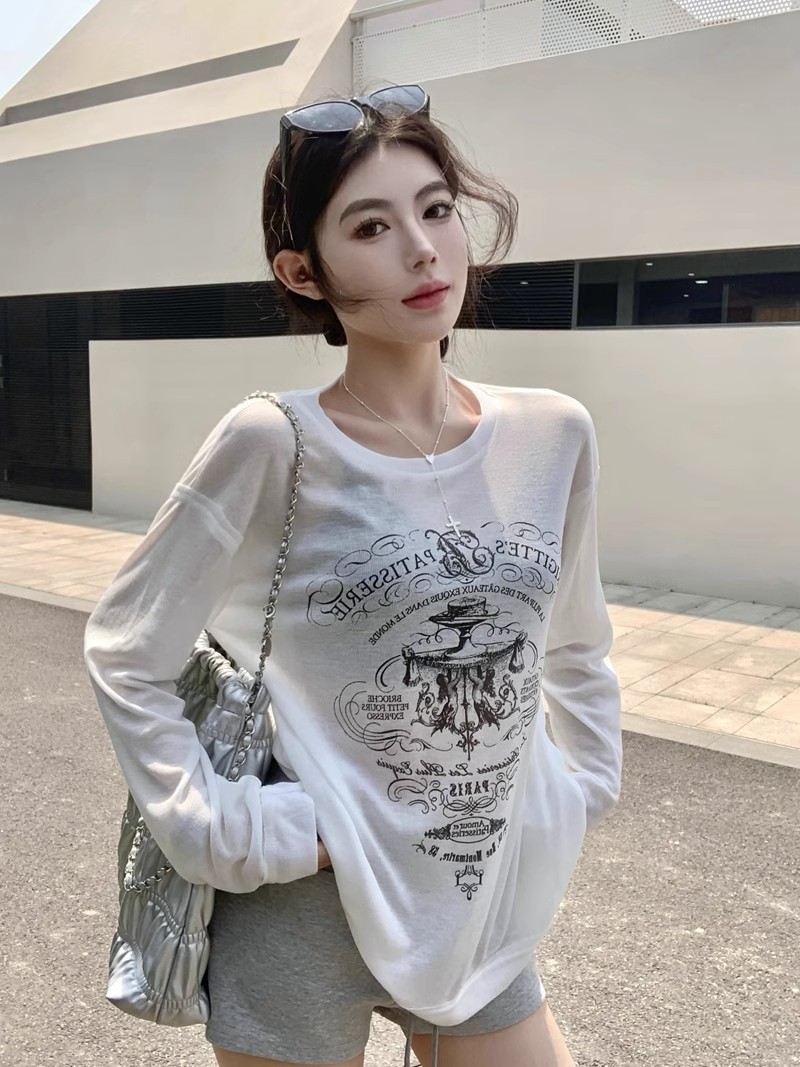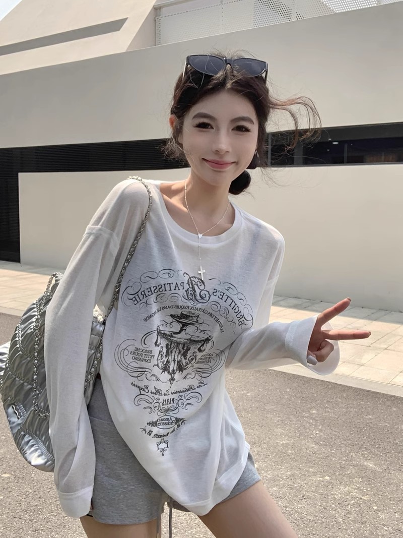 Ленивый ветер дизайн с буквенно-принтом солнцезащитная футболка женская летняя новая повседневная свободная прозрачная блузка блузка