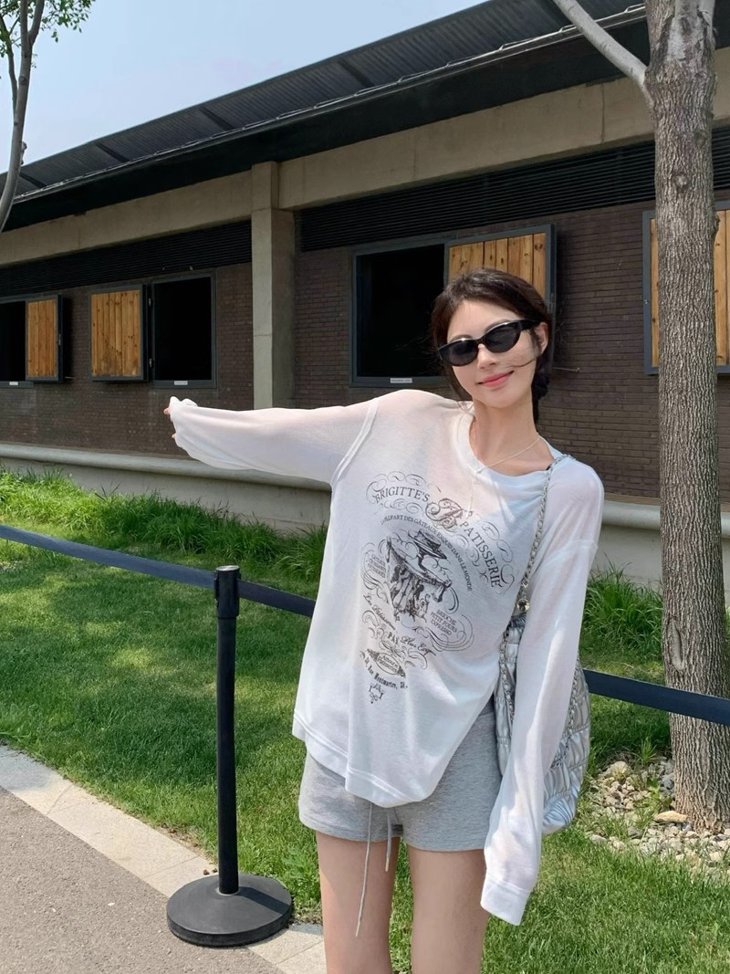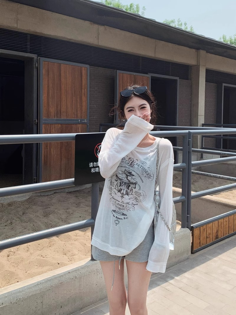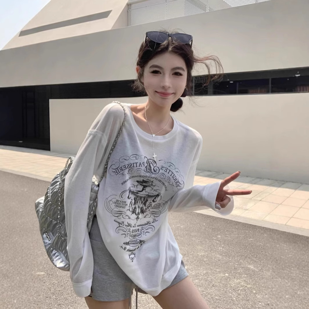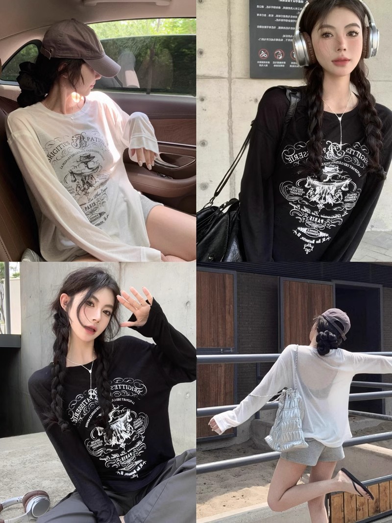 Ленивый ветер дизайн с буквенно-принтом солнцезащитная футболка женская летняя новая повседневная свободная прозрачная блузка блузка