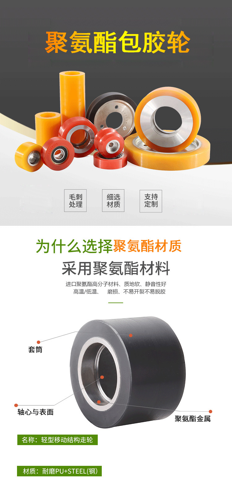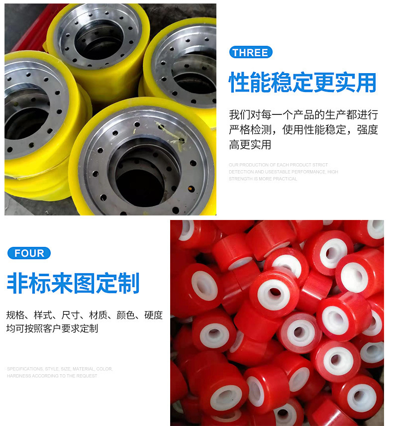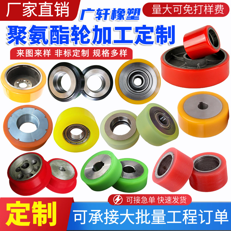 Обработка и изготовление на заказ полиуретановых колес, универсальных колес с бесшумным железным сердечником, тяжелых грузовых тележек, колес для тележек, высококачественных резиновых колес.