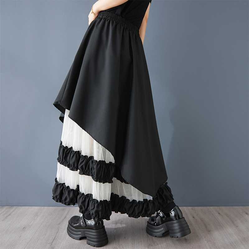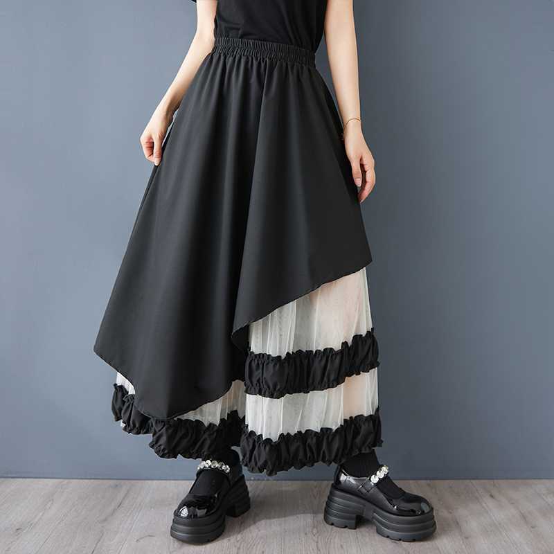 2025 новая корейская версия летней нерегулярной сетчатой пряжи большого размера свободная нерегулярная юбка с высокой талией