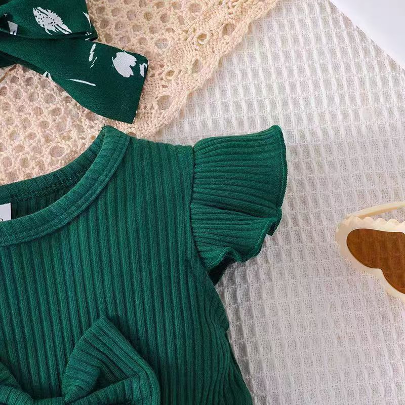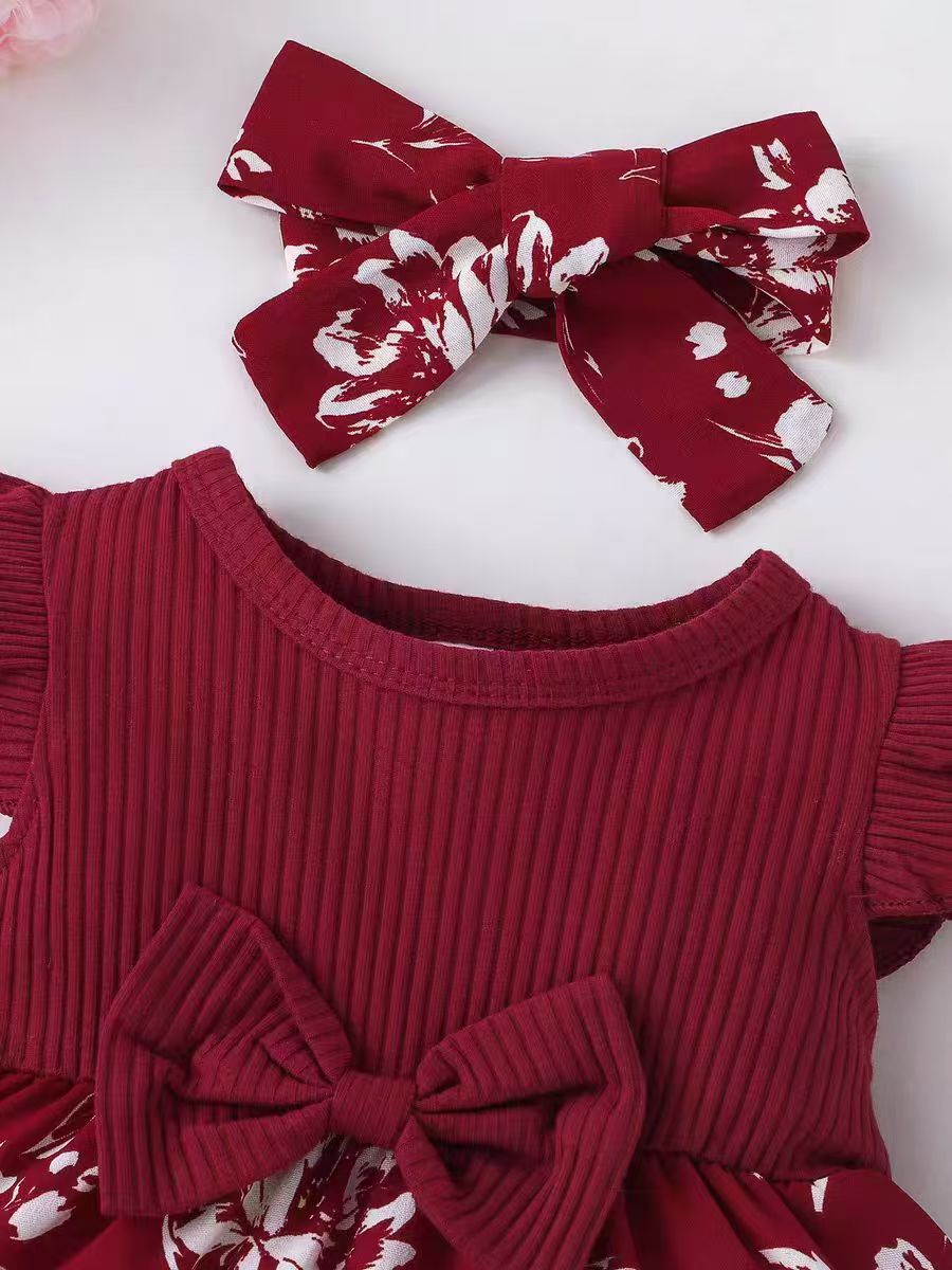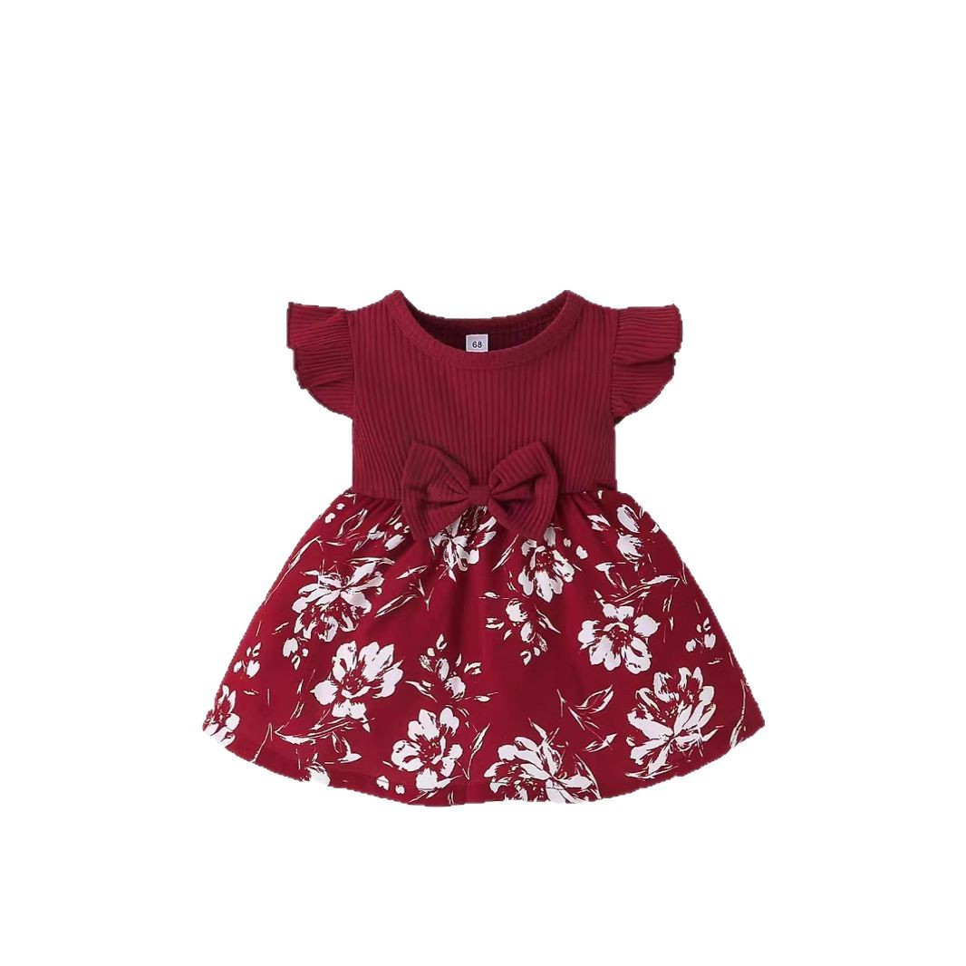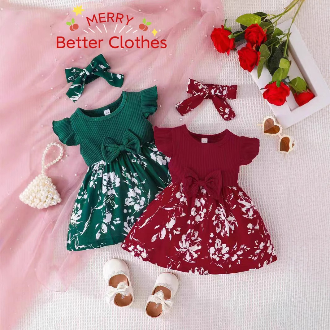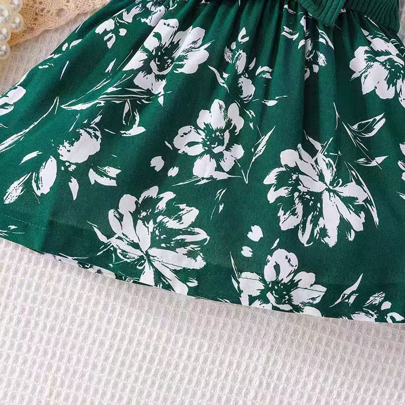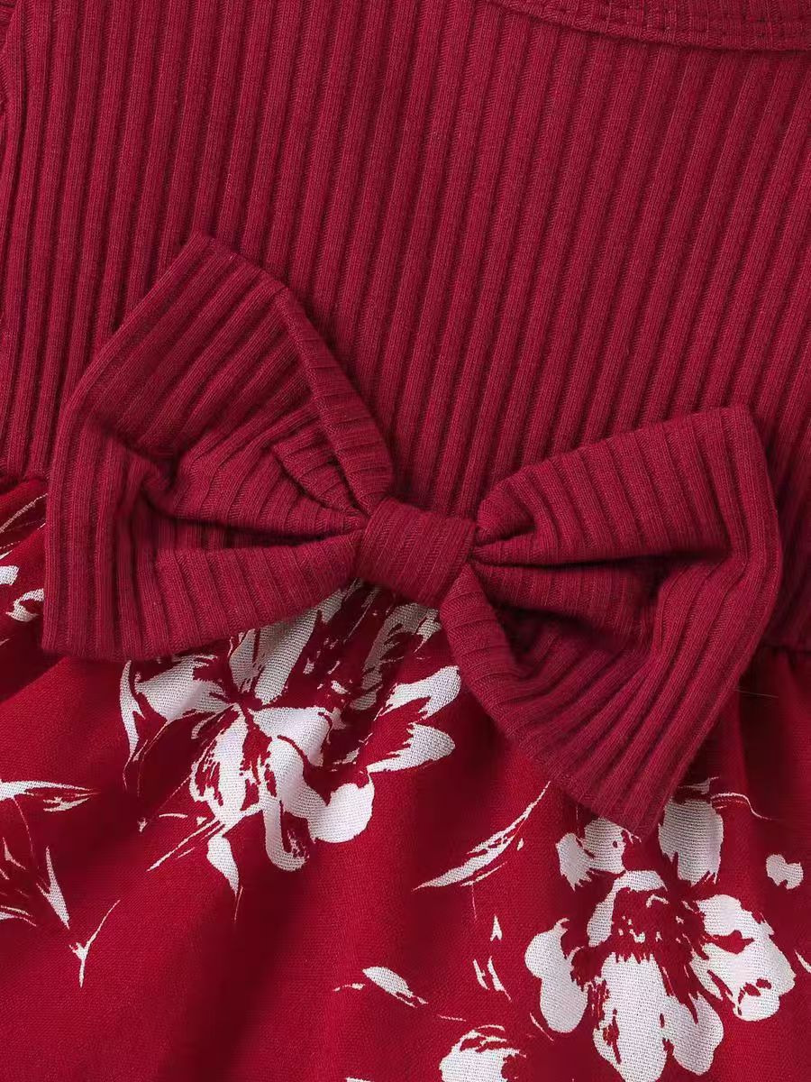 Трансграничные пятно маленькая девочка ins сладкий бант летающий рукав платье милый цветочный юбка тюрбан набор из двух частей