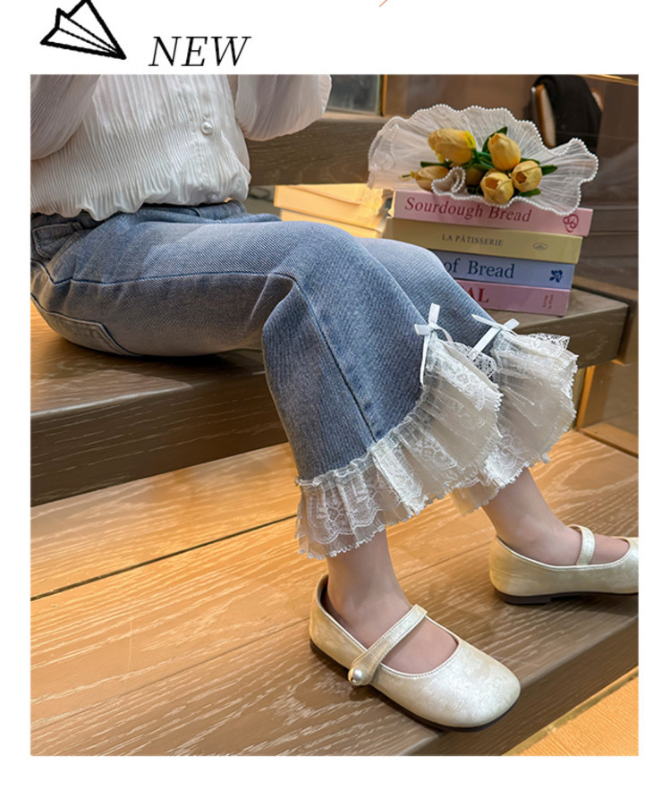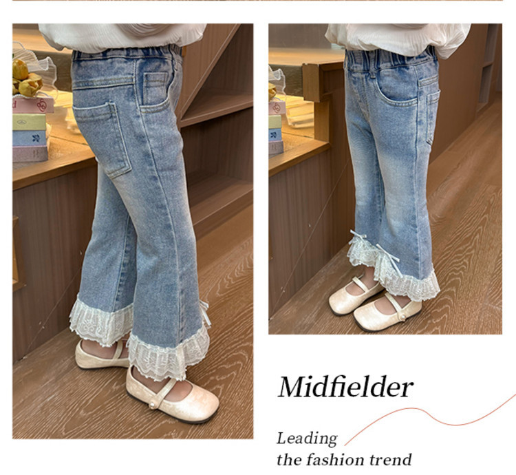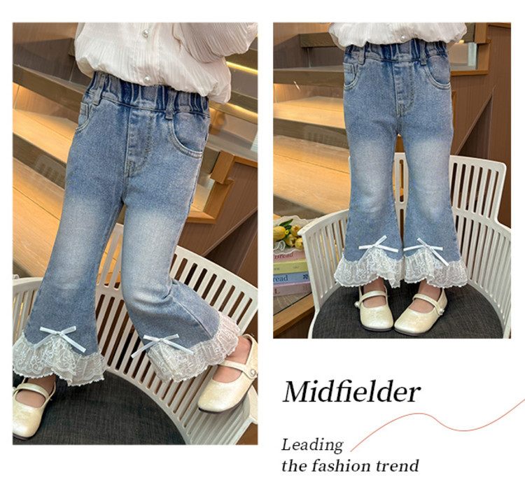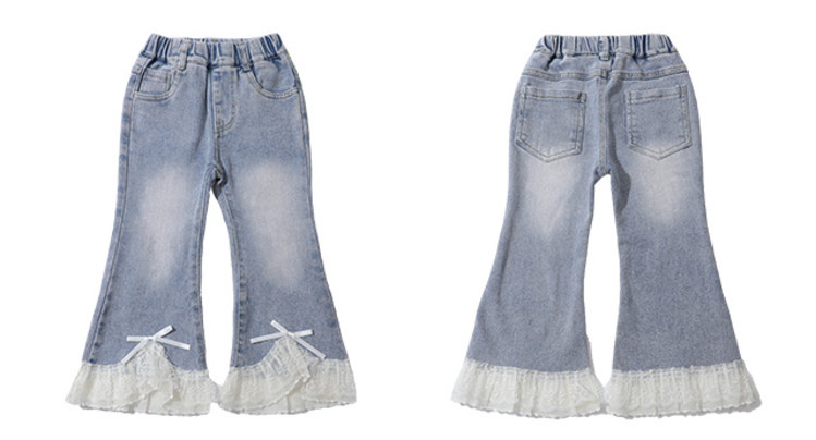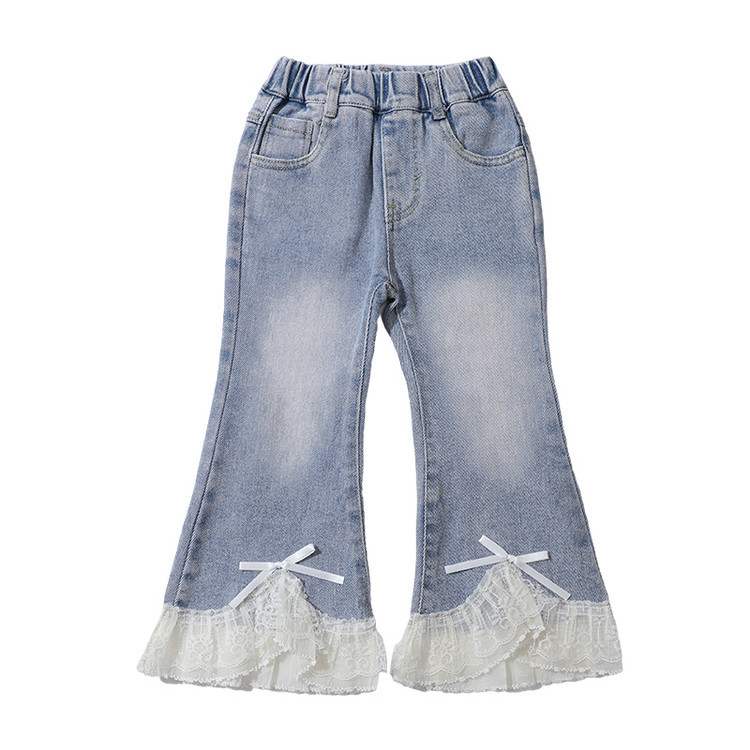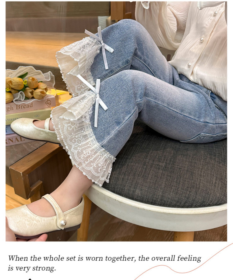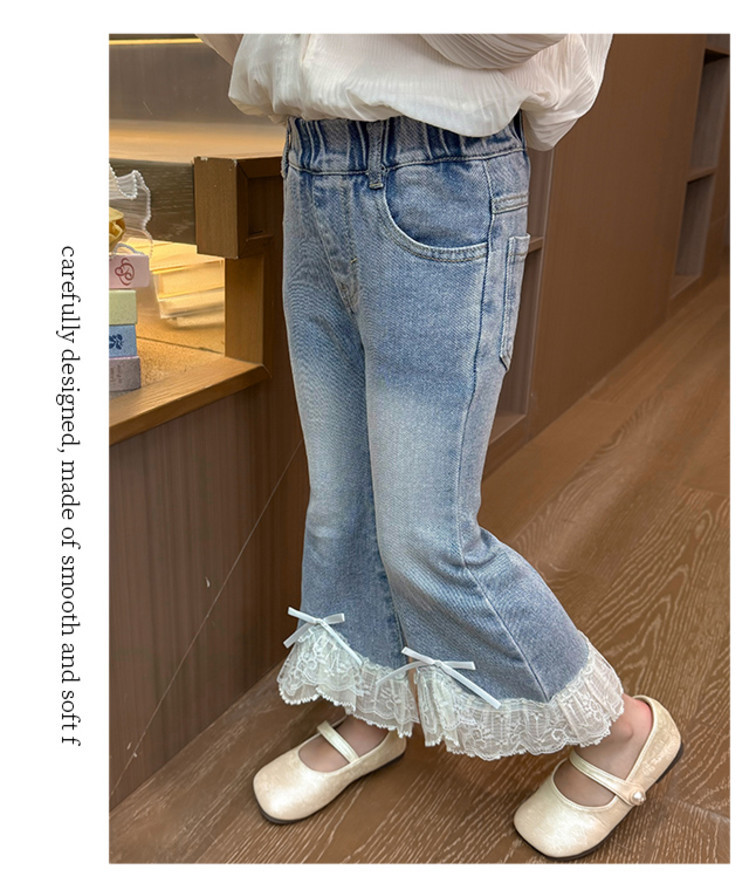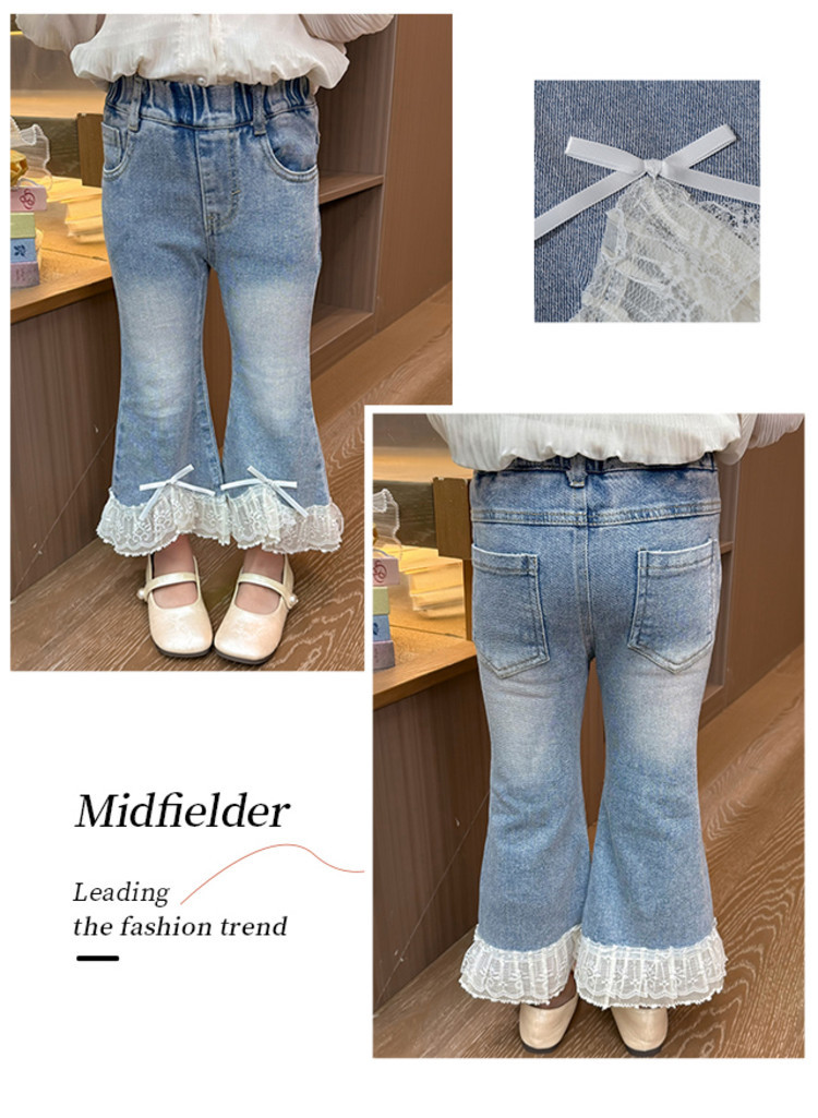 Кружевные расклешенные брюки для девочек весна и осень 2025 новая иностранная детская эластичная дикие детские модные джинсы