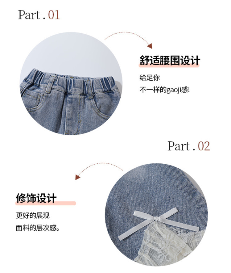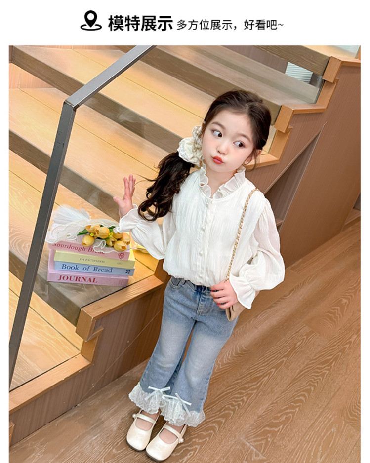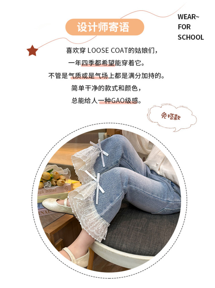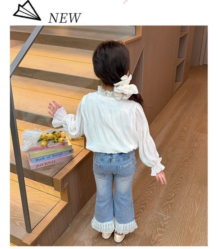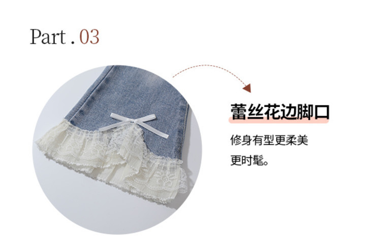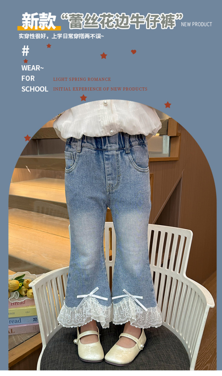 Кружевные расклешенные брюки для девочек весна и осень 2025 новая иностранная детская эластичная дикие детские модные джинсы