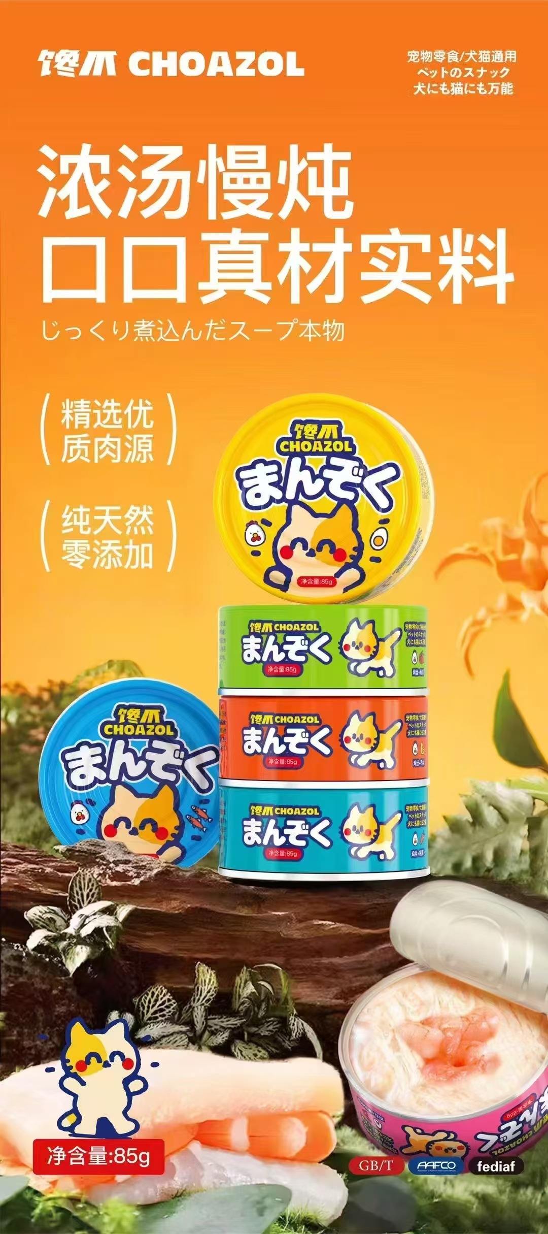 Консервированный корм для кошек 85 г для собак и кошек, универсальная банка увлажняющего супа, влажный корм для кошек в полосках, влажный корм для взрослых и молодых животных, измельченная курица, измельченная утка, креветки