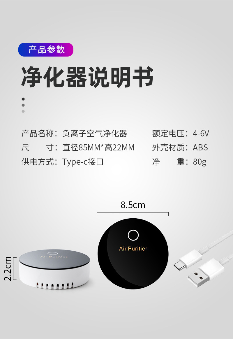 Автомобильный очиститель воздуха с отрицательным ионным воздухом USB порт Автомобильный очиститель для удаления дыма и пыли для удаления запаха Циклический воздух