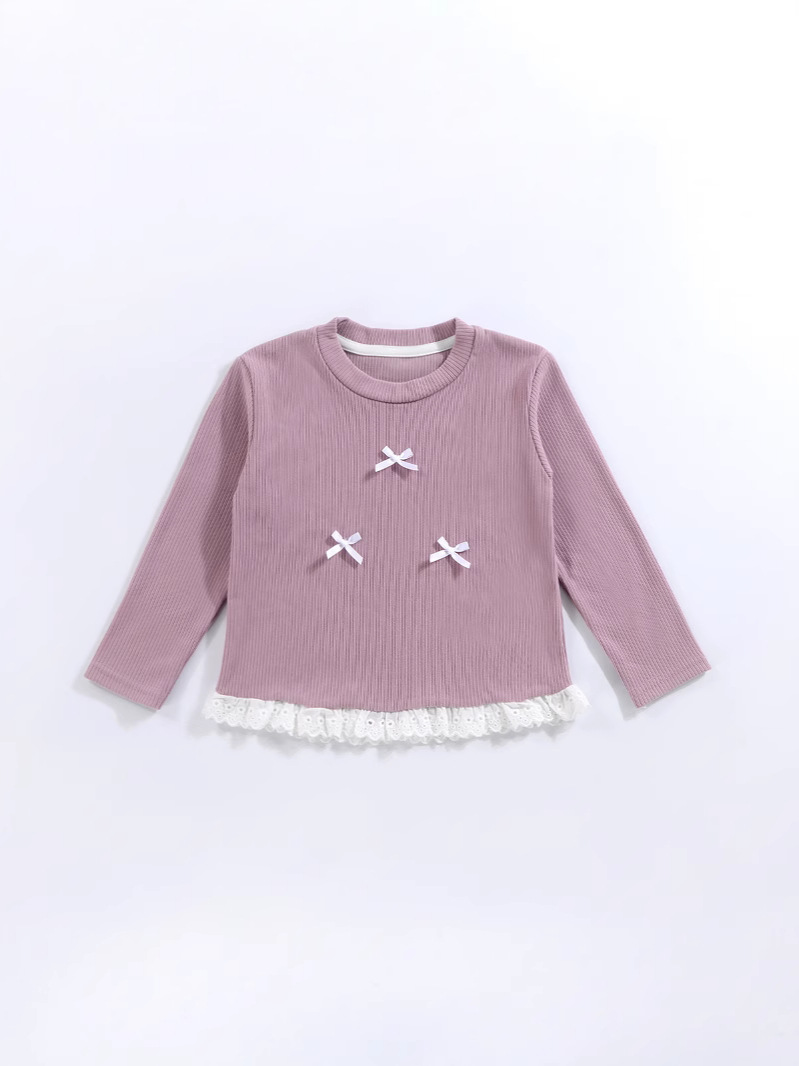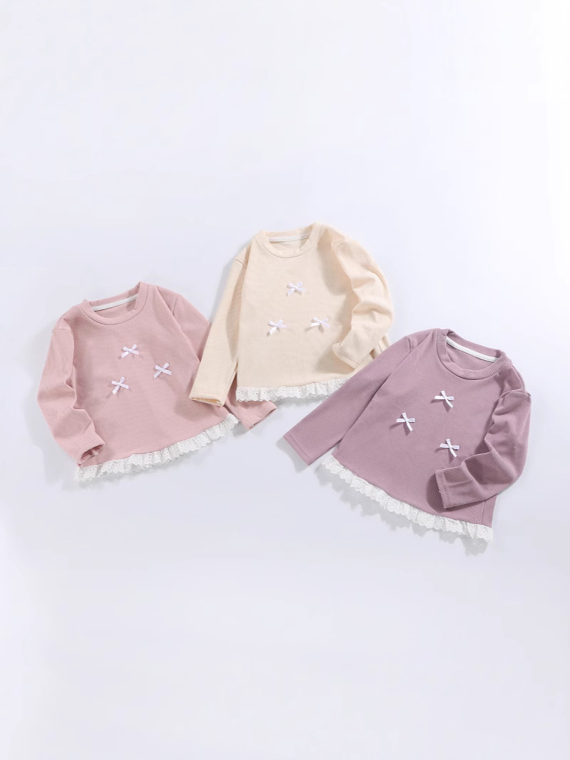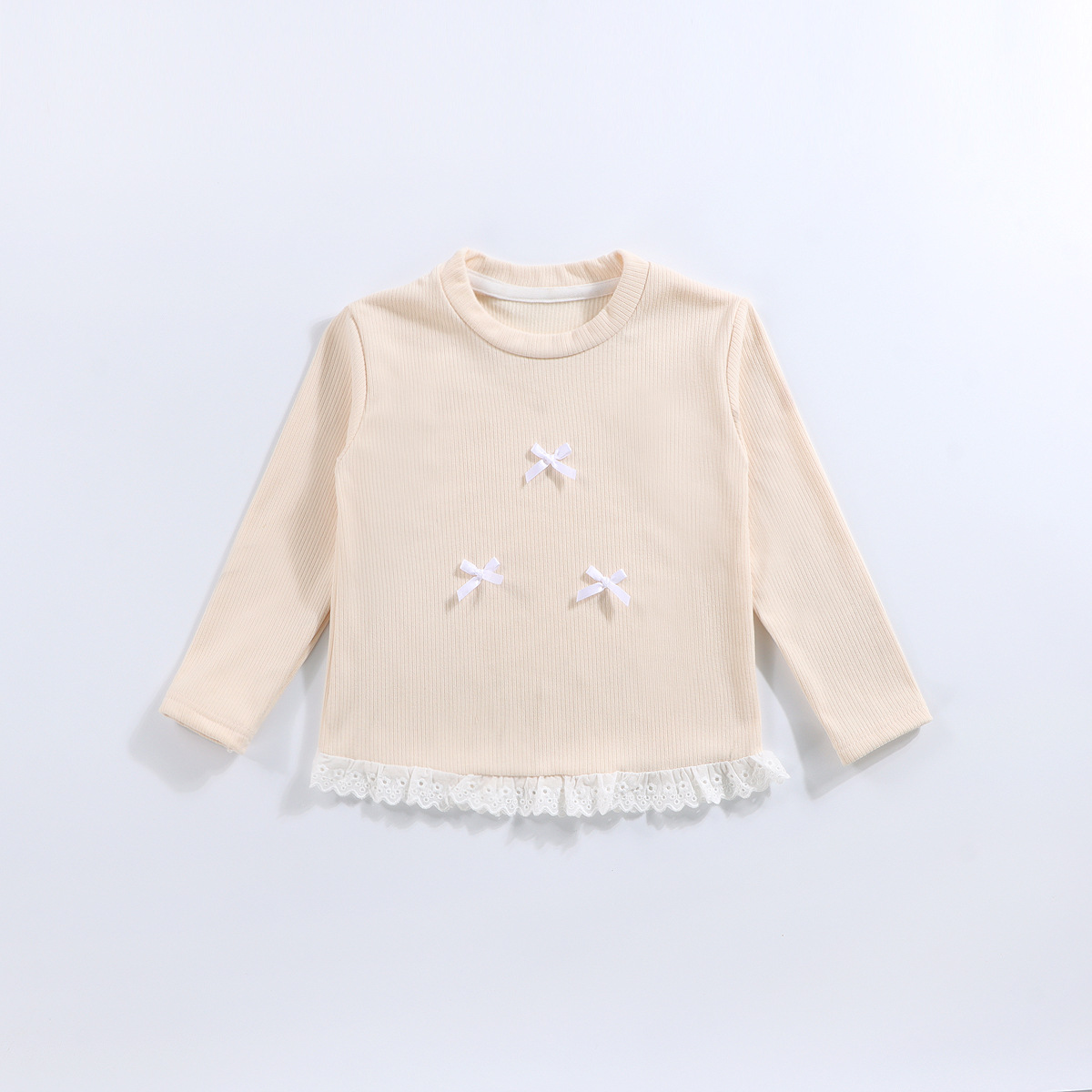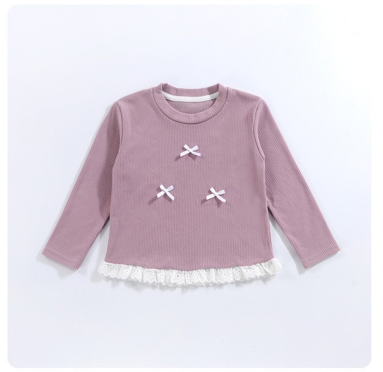 Весенняя нижняя рубашка для девочек дикий лук с длинными рукавами кружева с круглым вырезом