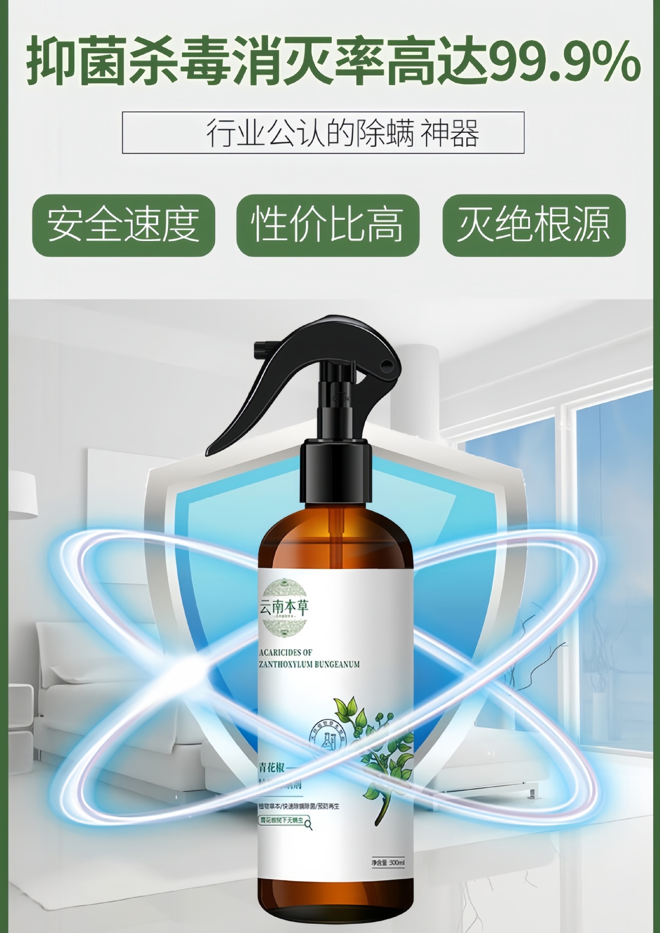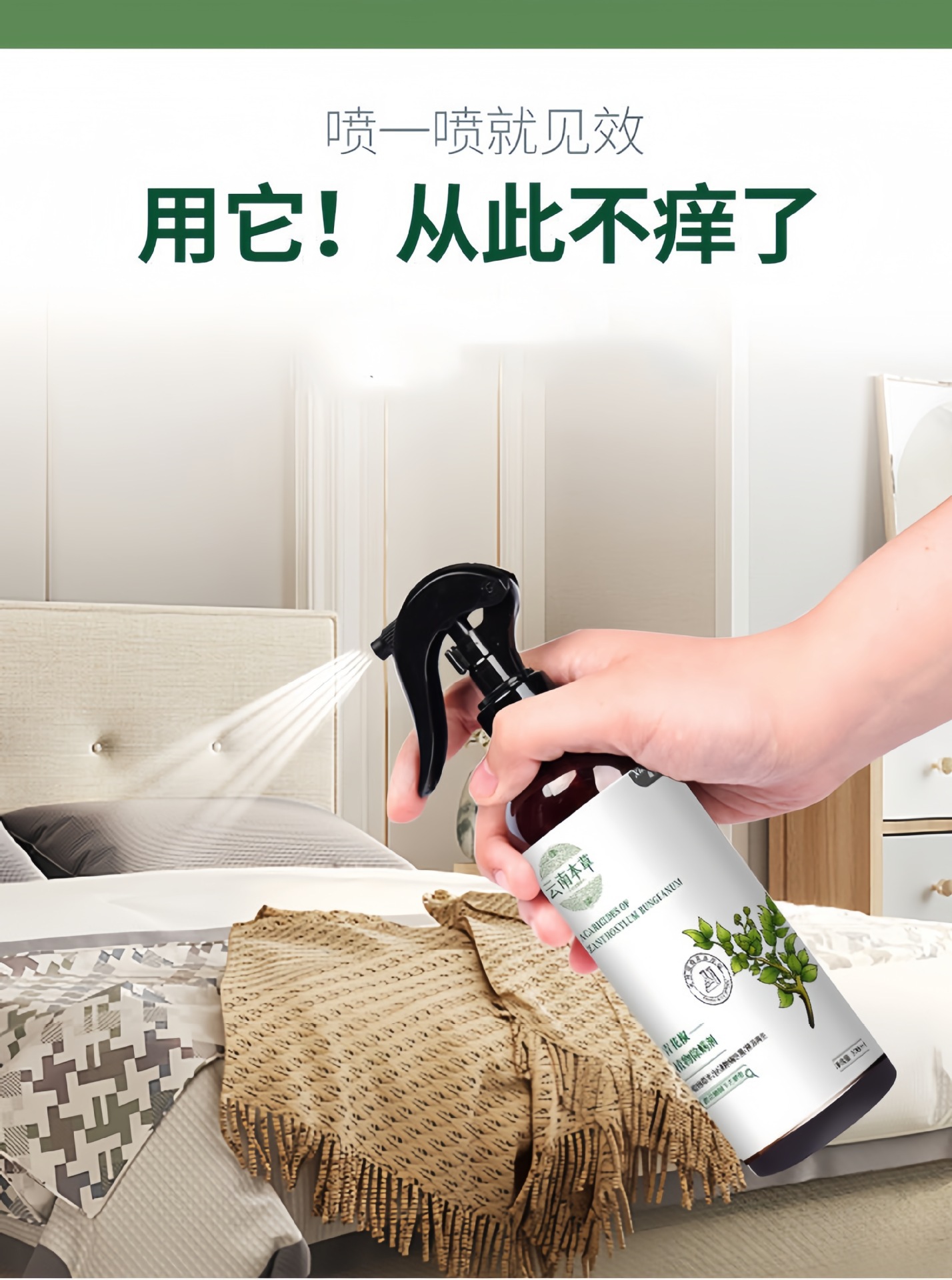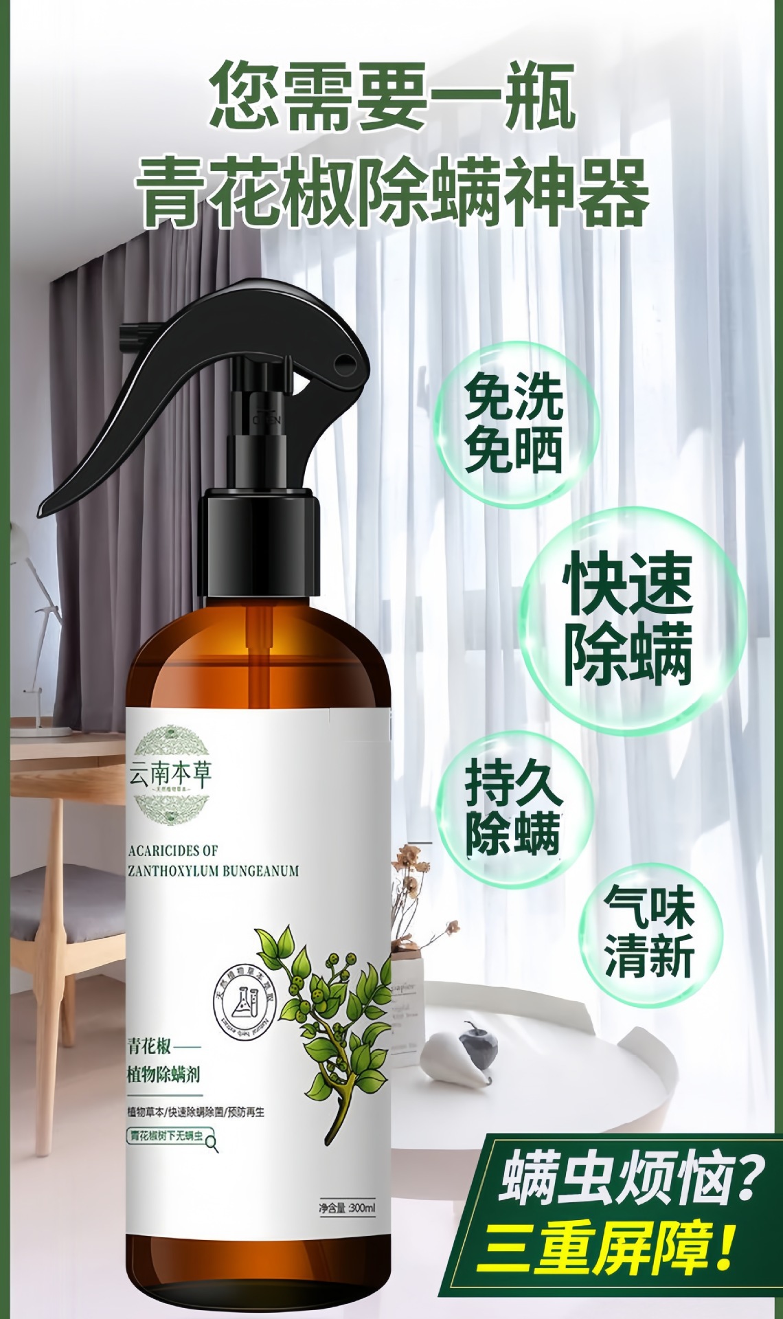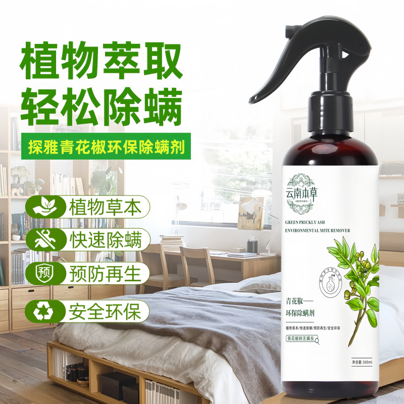 Спрей для удаления клещей с зеленым перцем для домашнего использования, средство для удаления клещей без смывания для кроватей, постельного белья и одежды, растительное средство на основе трав для устранения клещей.