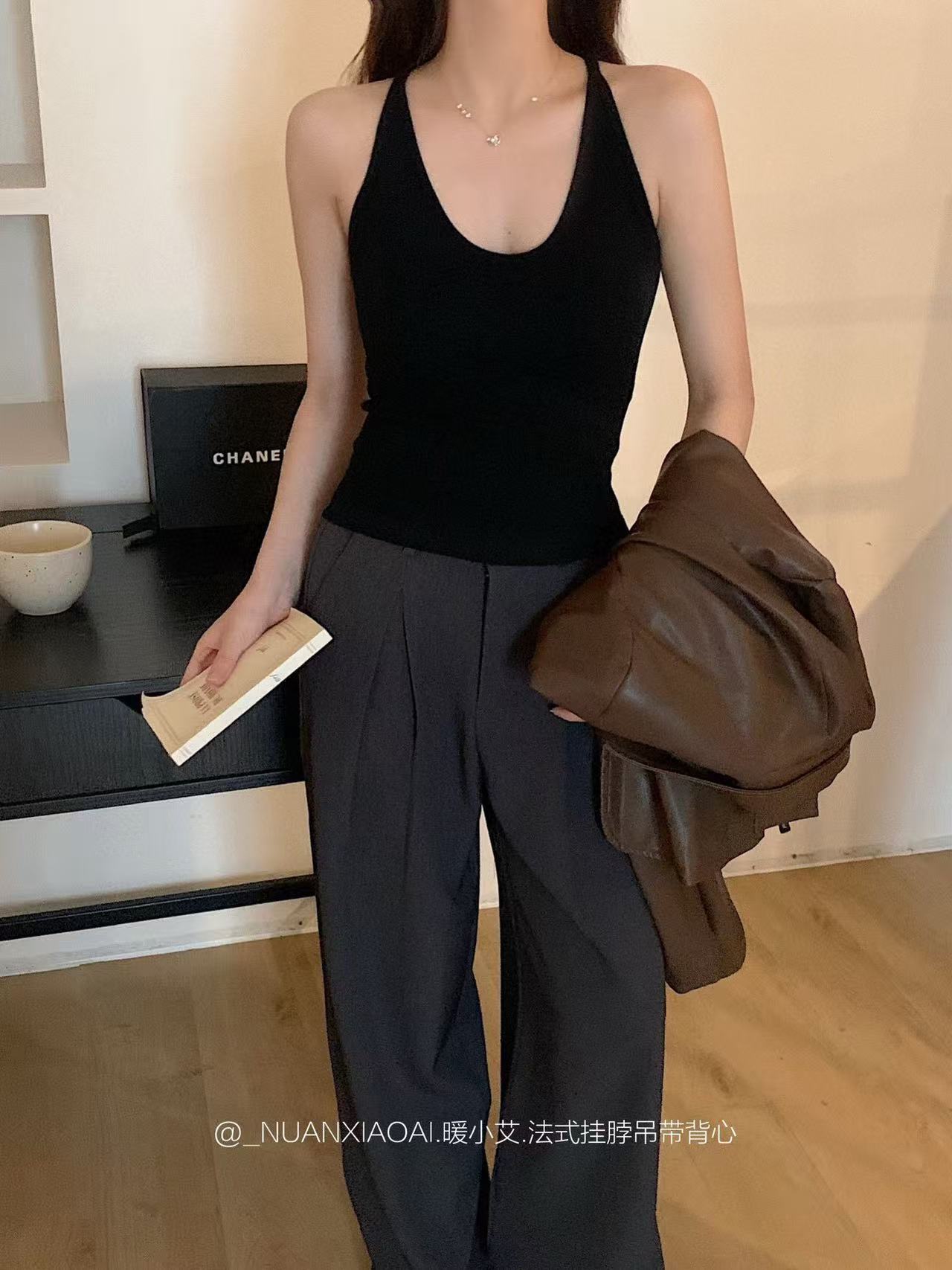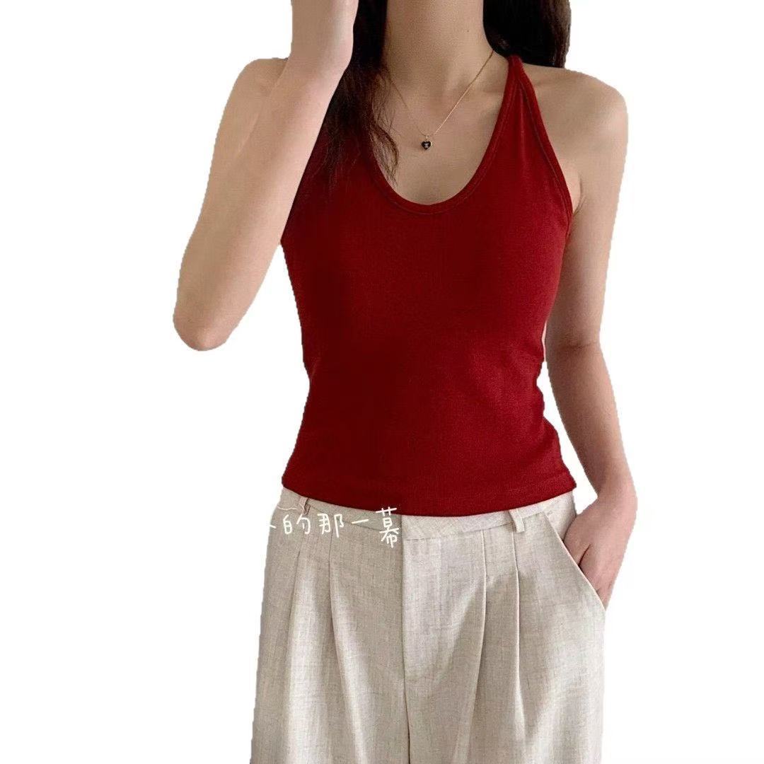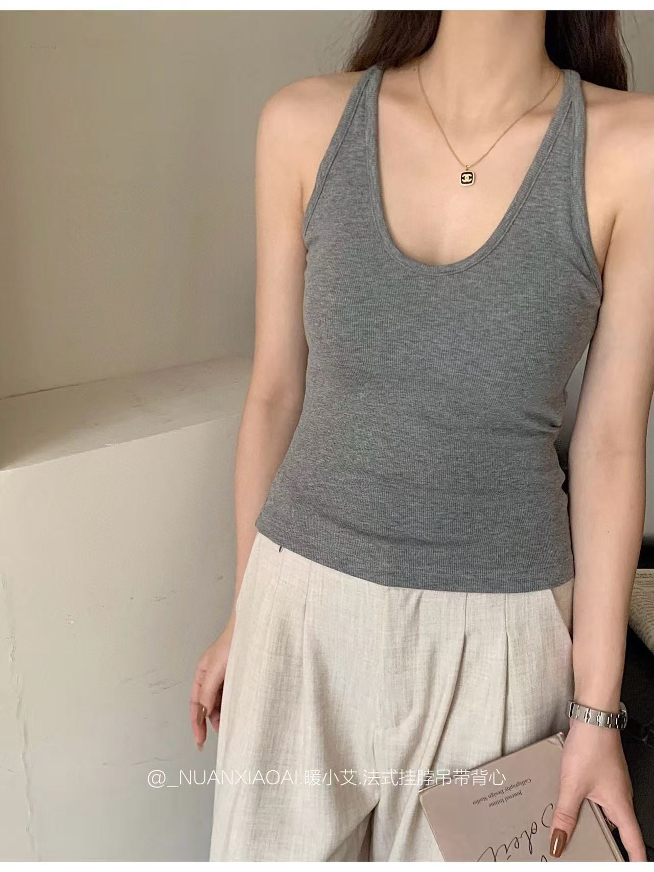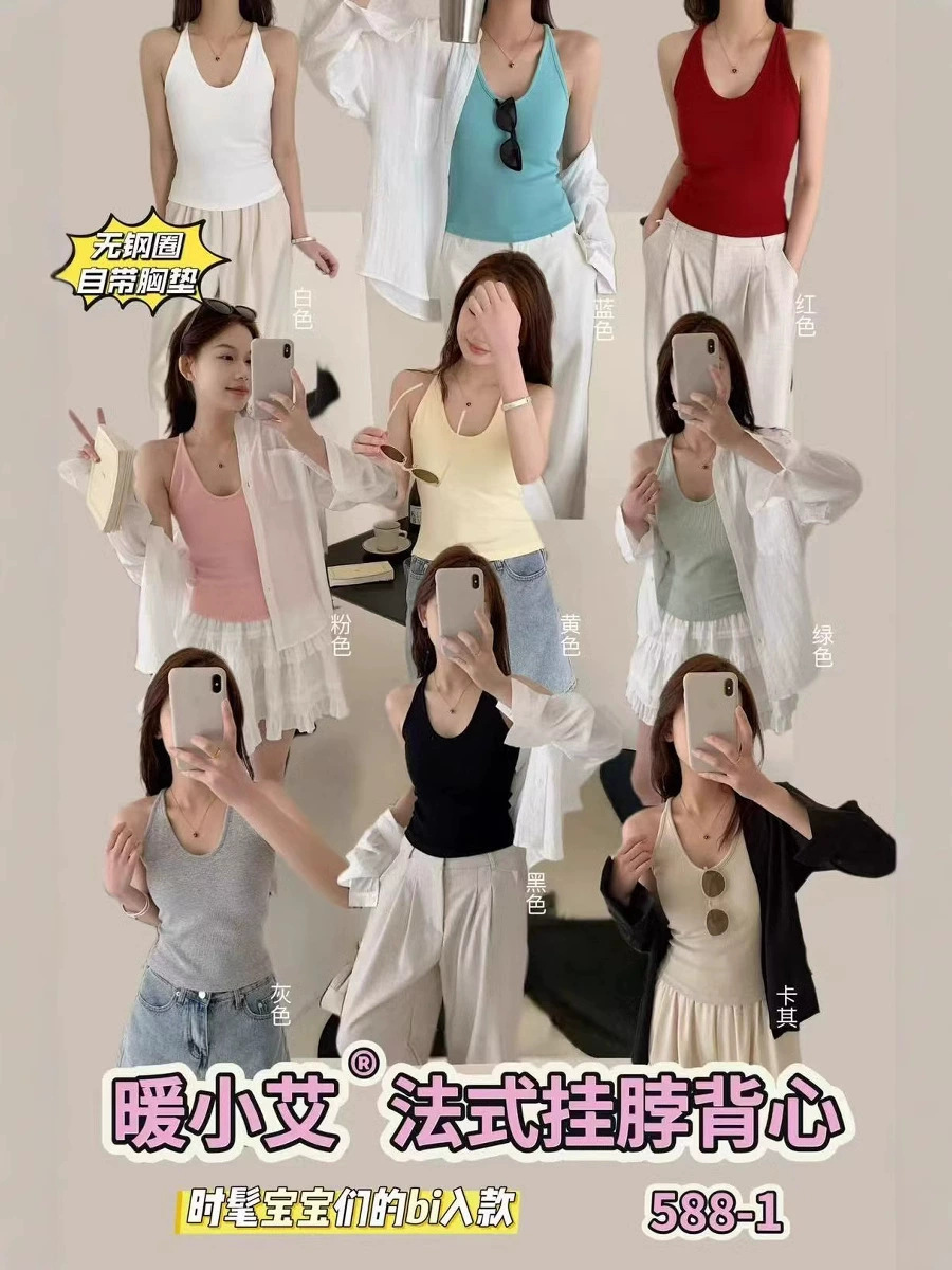 Nuannuan Xiao Ai 588-1Французский кофточка с лямкой на шее, сексуальная высокоэластичная верхняя одежда для похудения с топами без рукавов, летняя красивая майка на спине