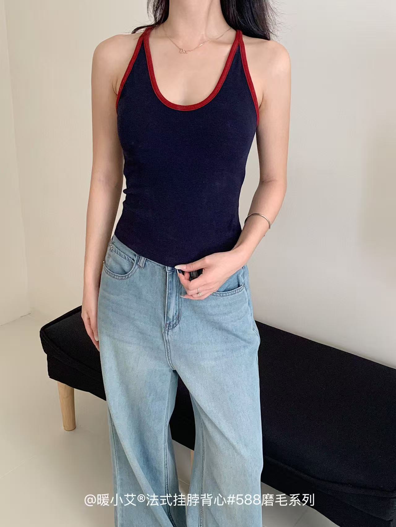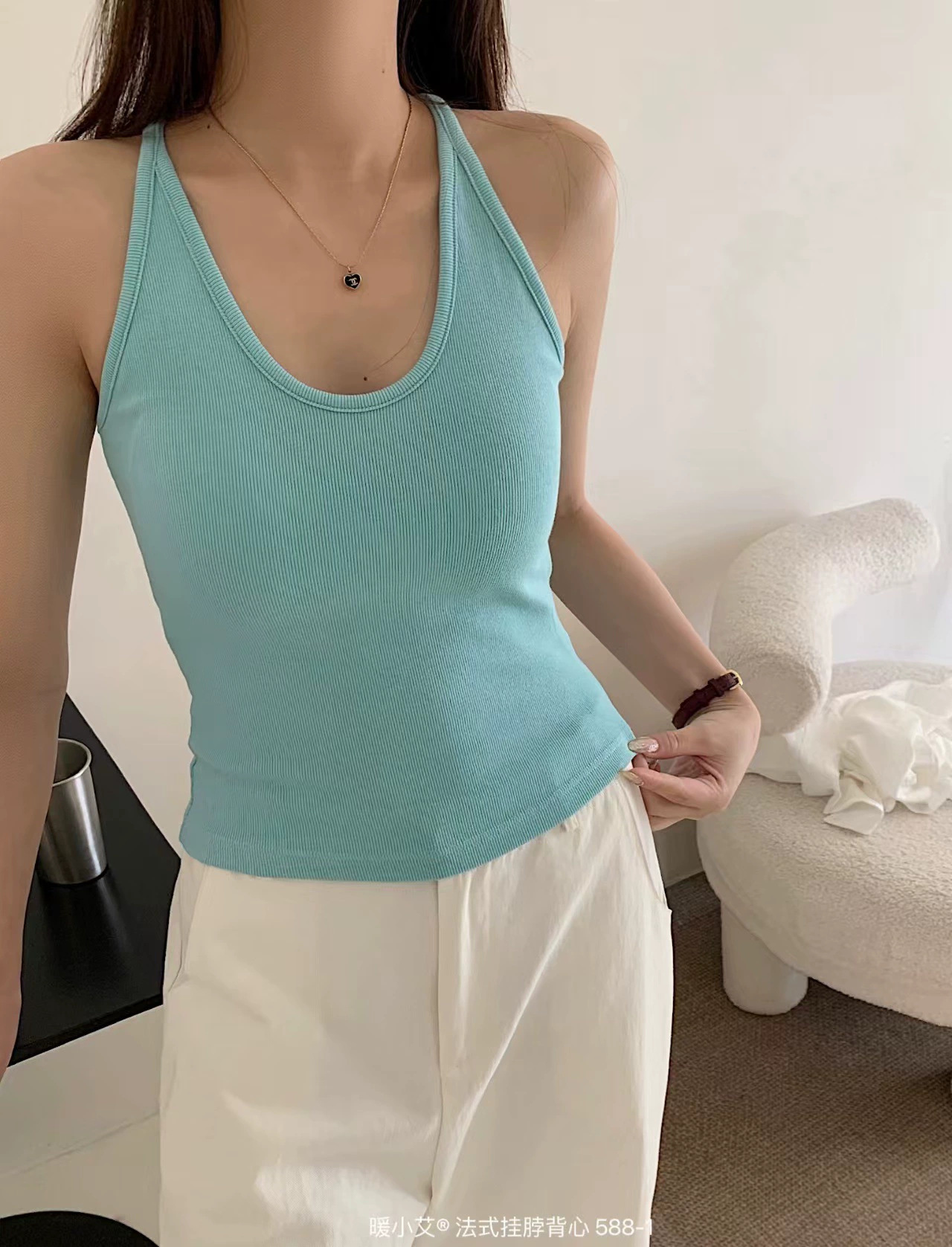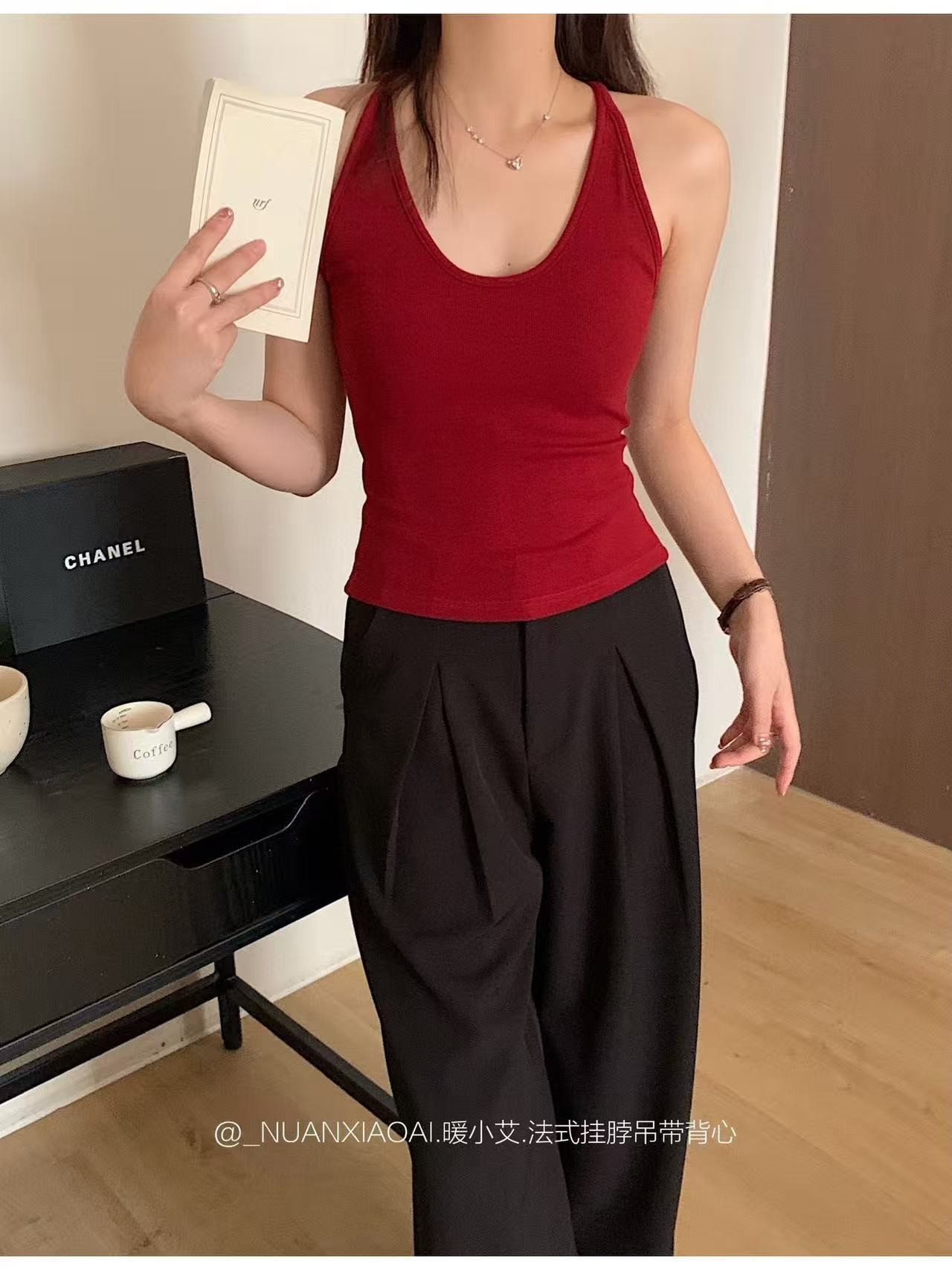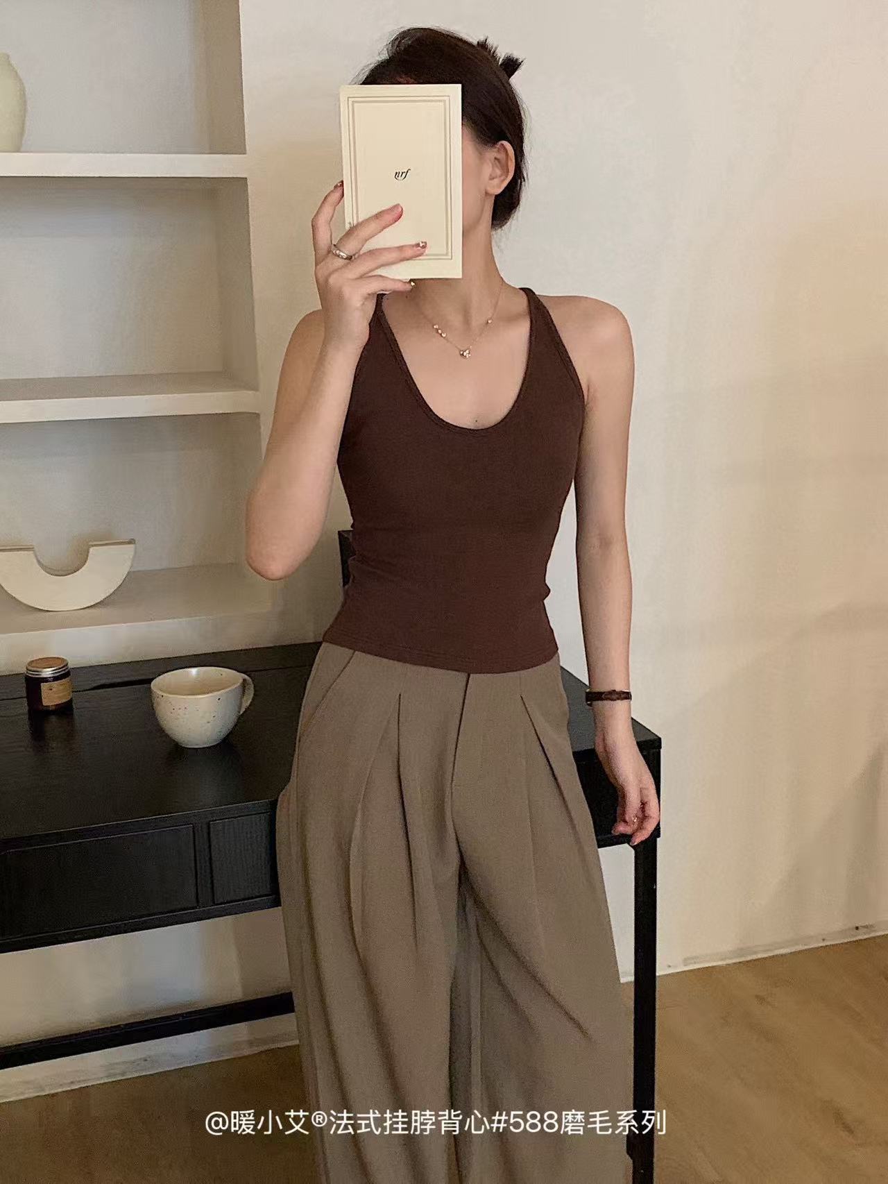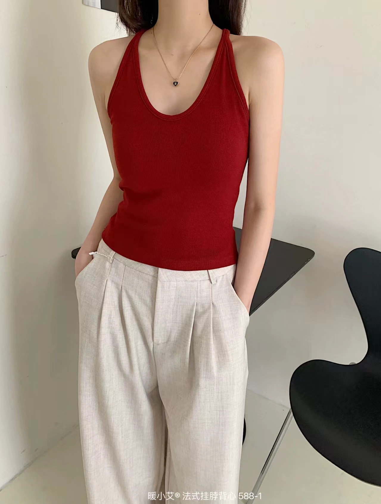 Nuannuan Xiao Ai 588-1Французский кофточка с лямкой на шее, сексуальная высокоэластичная верхняя одежда для похудения с топами без рукавов, летняя красивая майка на спине
