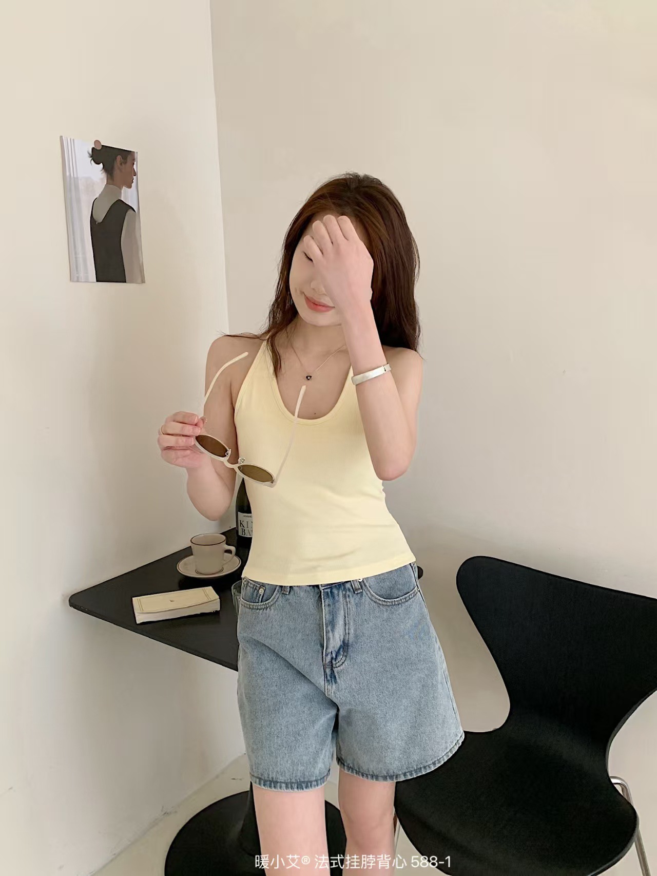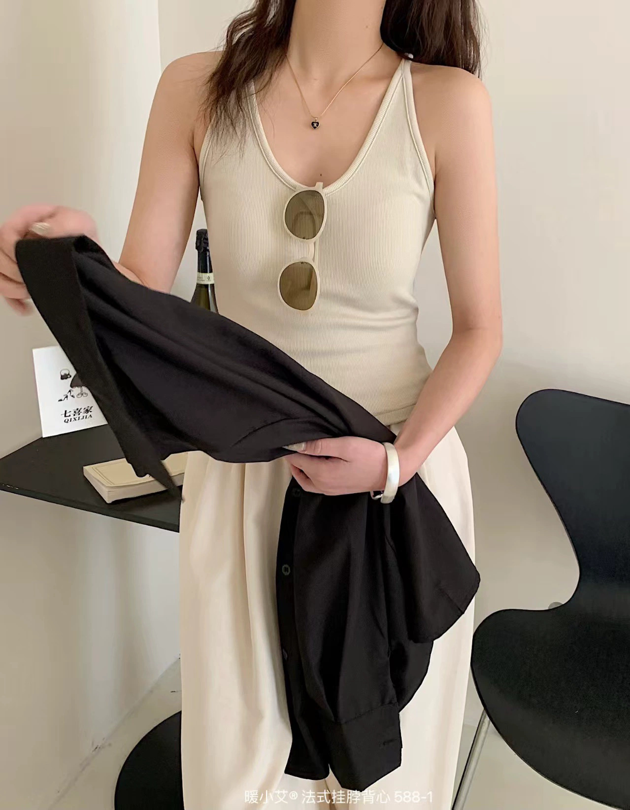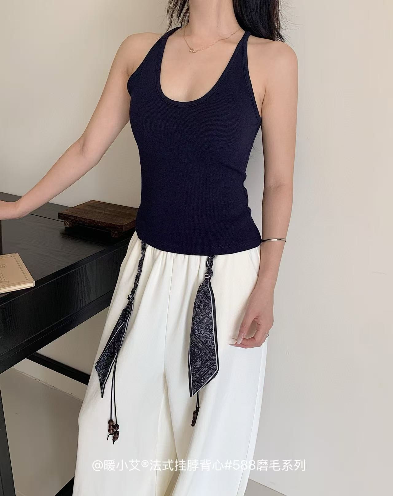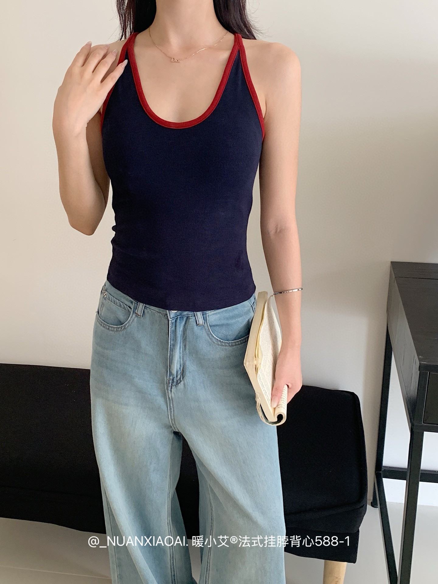 Nuannuan Xiao Ai 588-1Французский кофточка с лямкой на шее, сексуальная высокоэластичная верхняя одежда для похудения с топами без рукавов, летняя красивая майка на спине