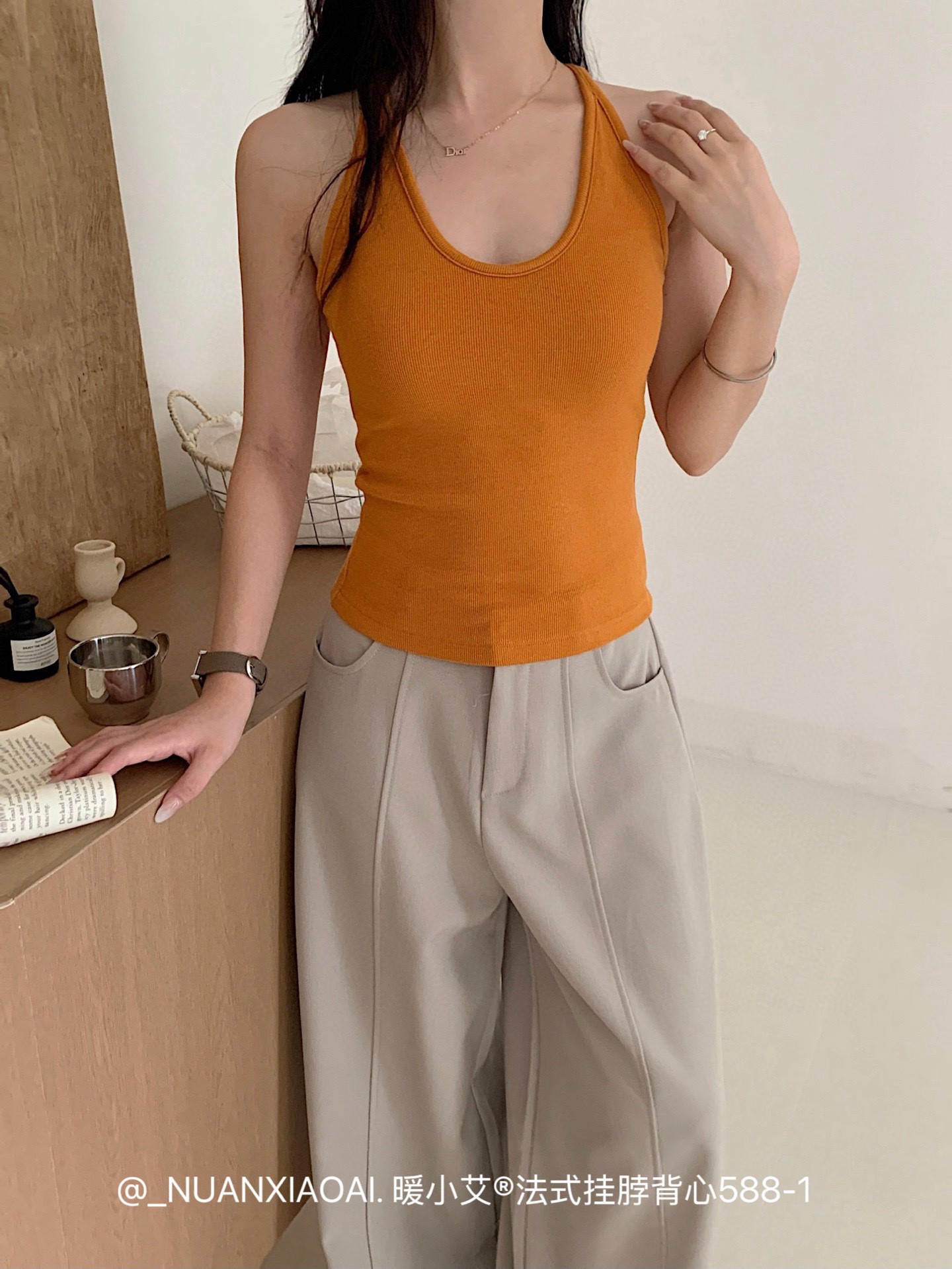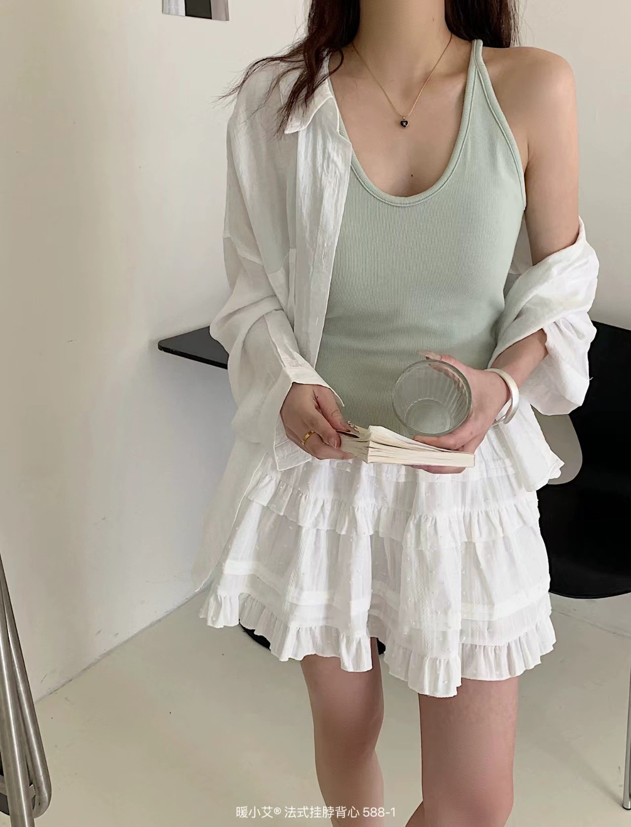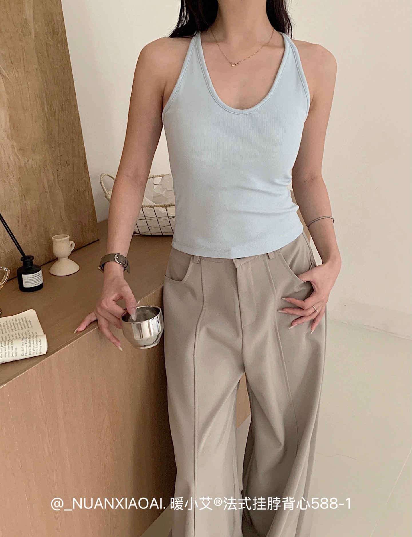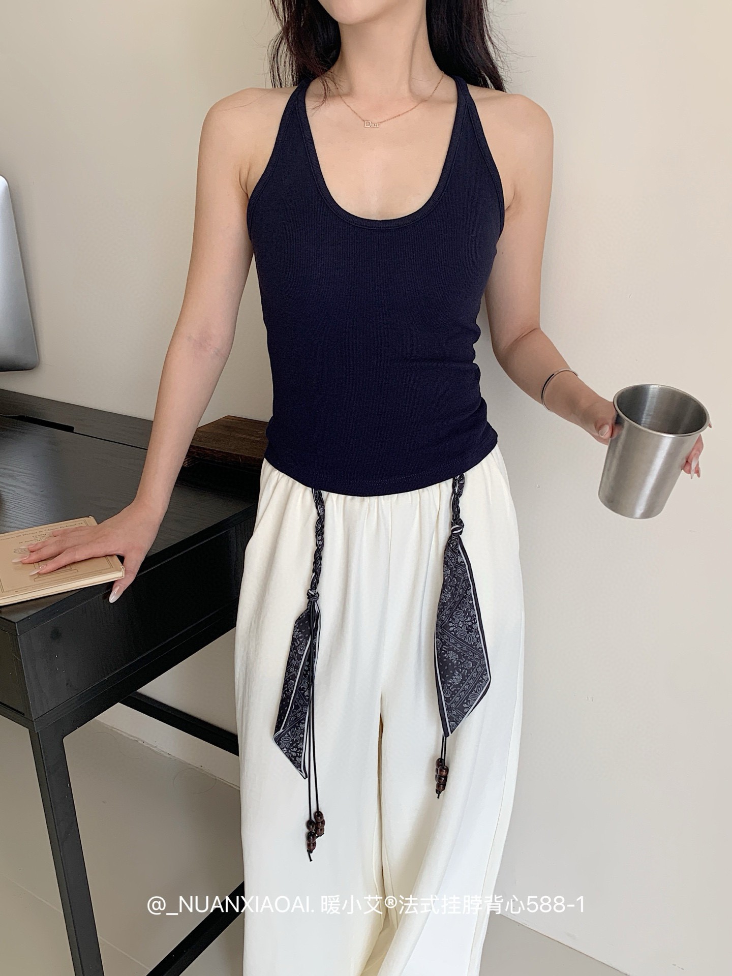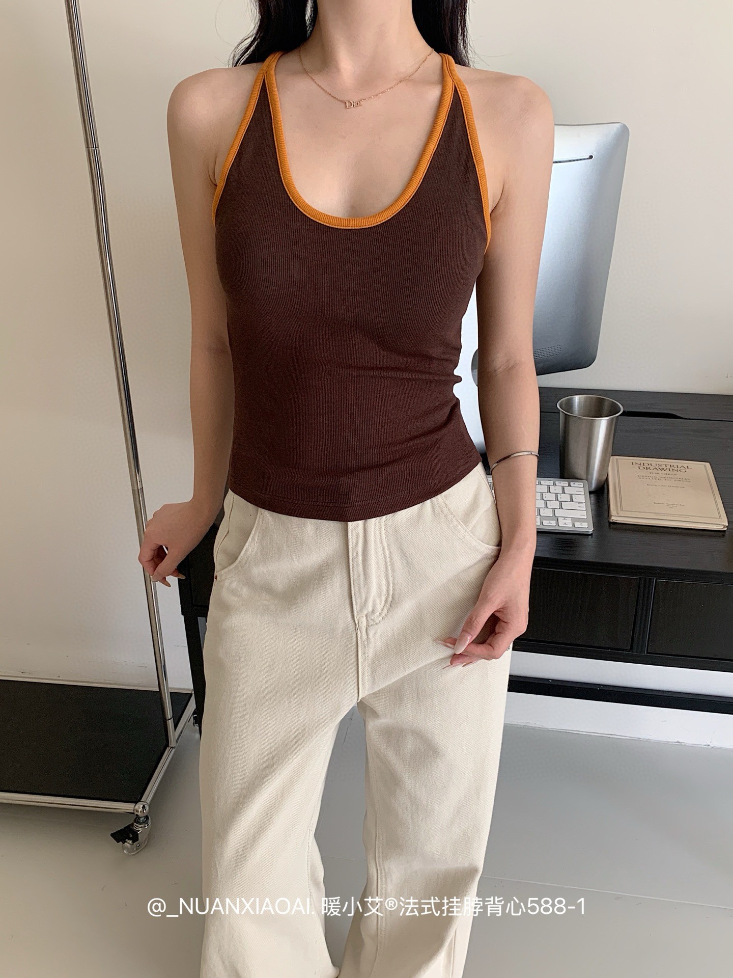 Nuannuan Xiao Ai 588-1Французский кофточка с лямкой на шее, сексуальная высокоэластичная верхняя одежда для похудения с топами без рукавов, летняя красивая майка на спине