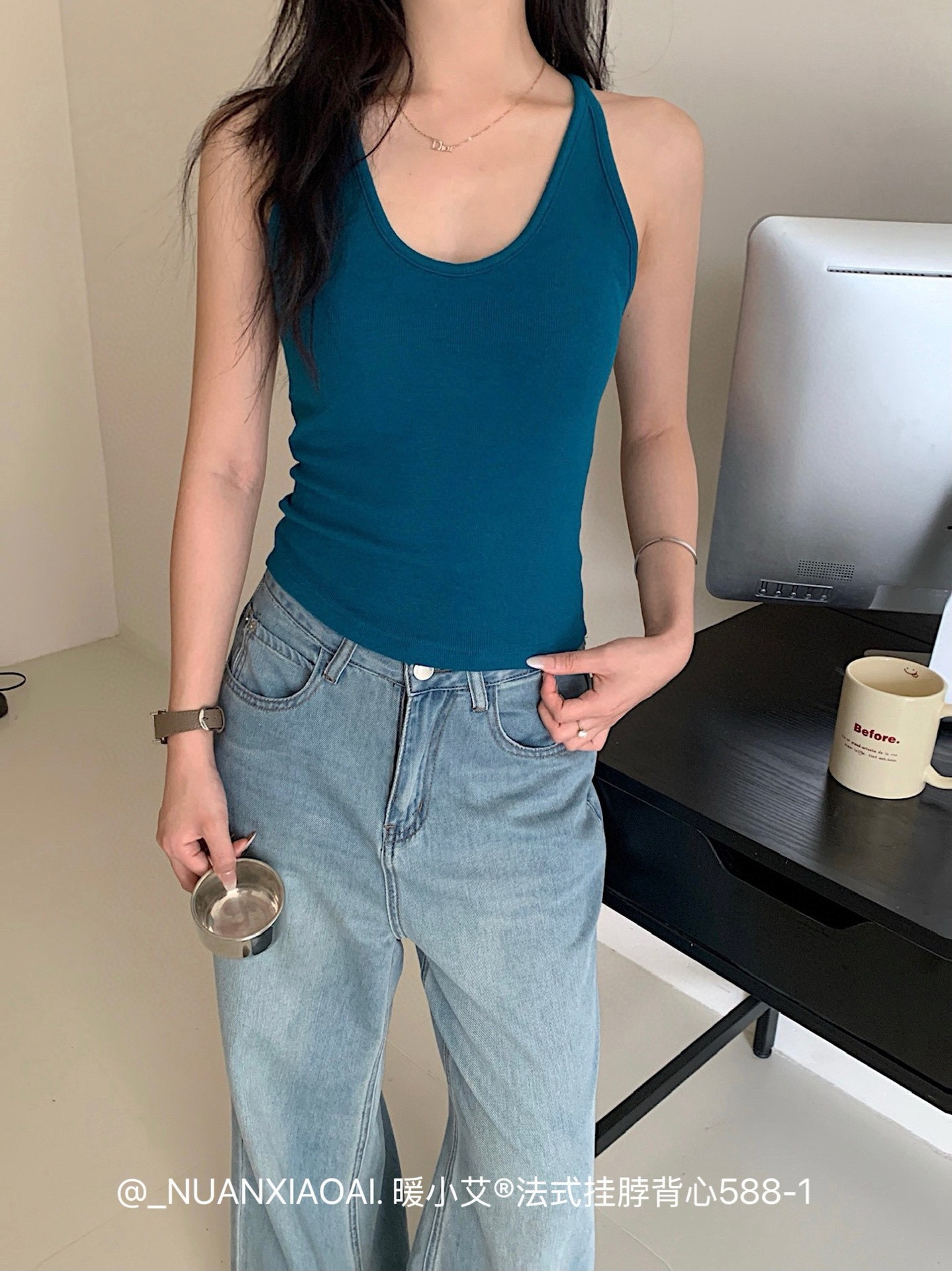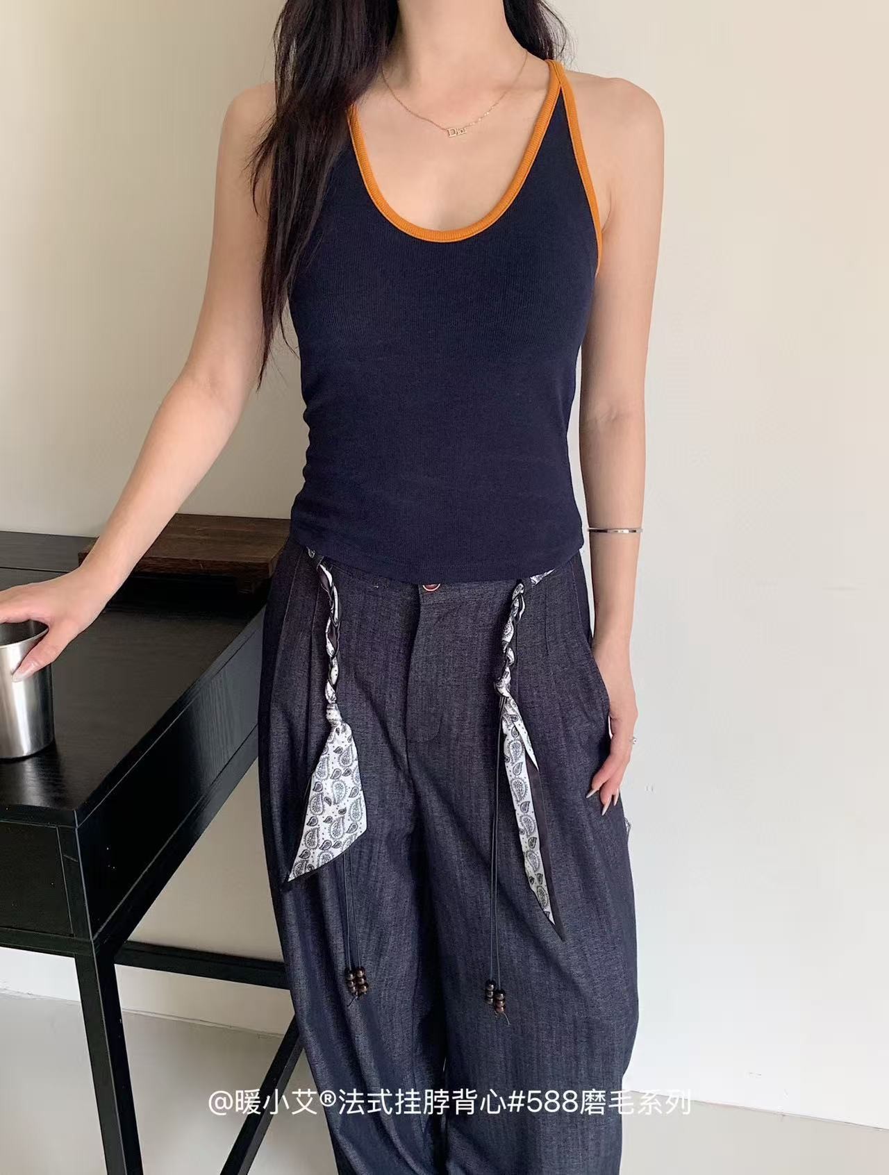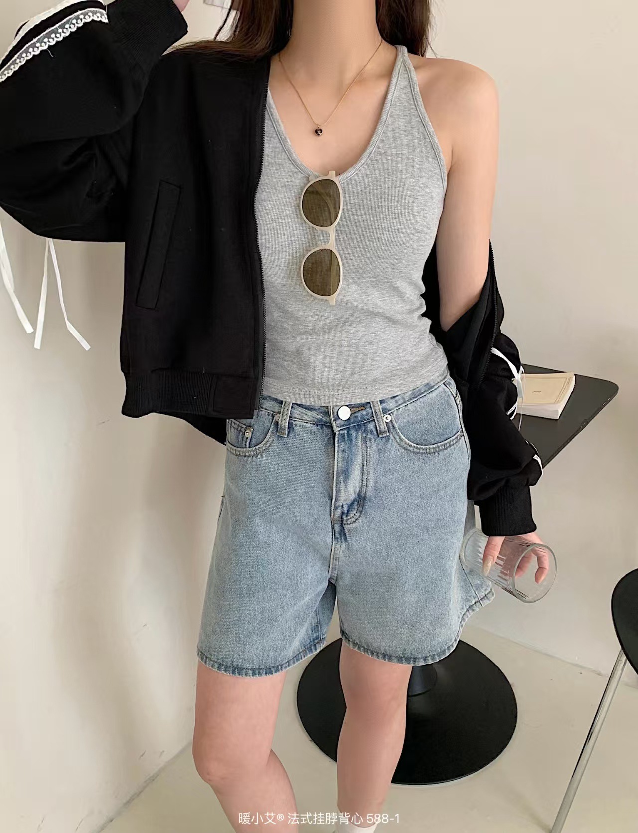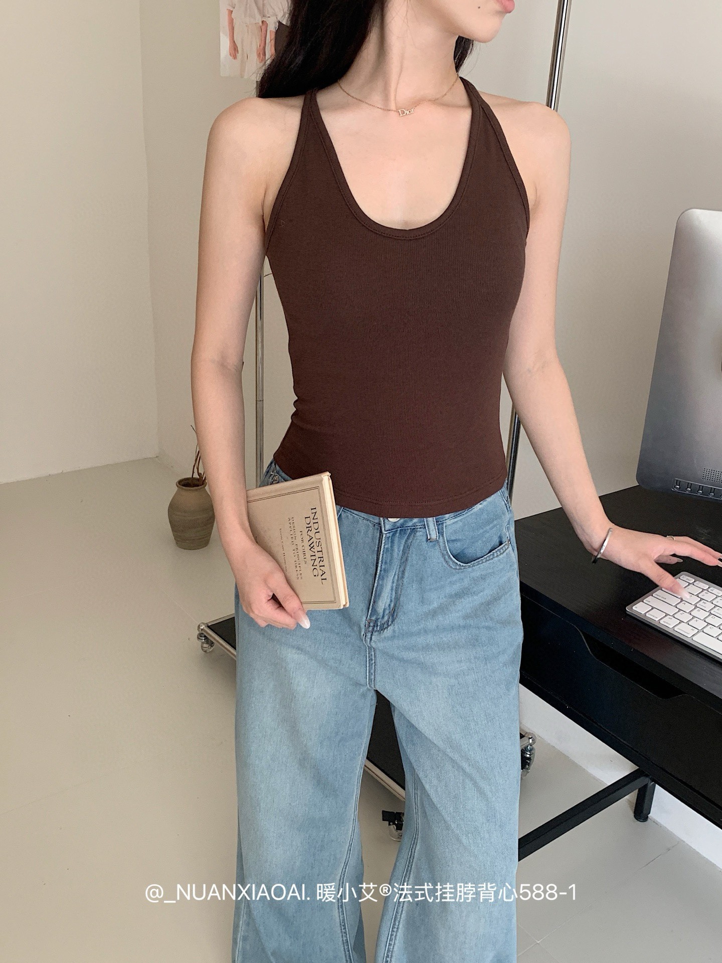 Nuannuan Xiao Ai 588-1Французский кофточка с лямкой на шее, сексуальная высокоэластичная верхняя одежда для похудения с топами без рукавов, летняя красивая майка на спине