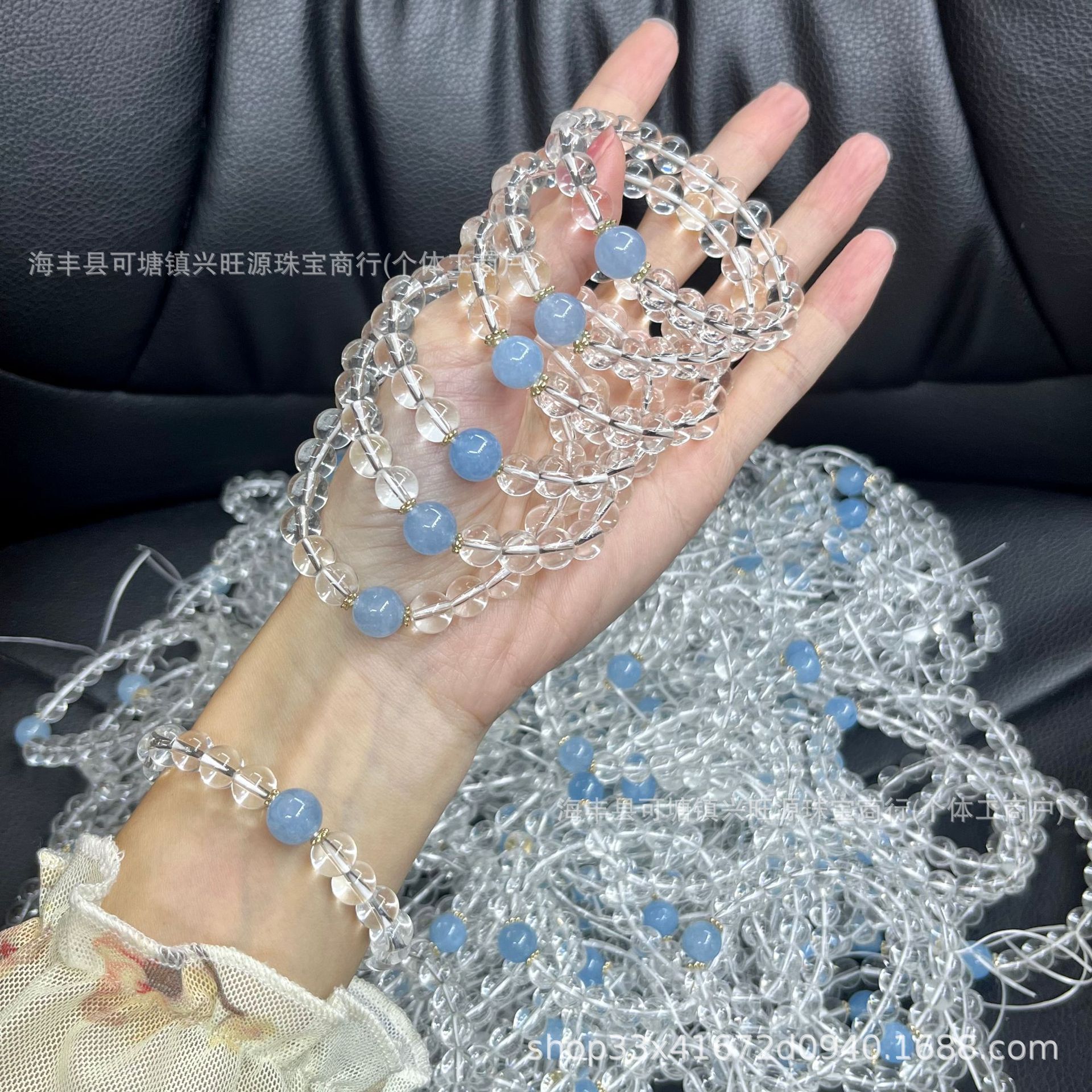 兴旺源珠宝白玻璃冰种手链搭海蓝宝女生休闲生日闺蜜礼物福利款批 批发量越大价格越低,可供直播间长期合作,欢迎来电私聊