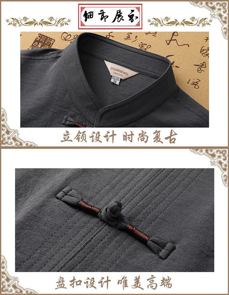 Китайский стиль Тан костюм мужской отец ледяной шелк повседневный летний рукав с короткими рукавами дедушка рубашка этнический костюм среднего и пожилого возраста