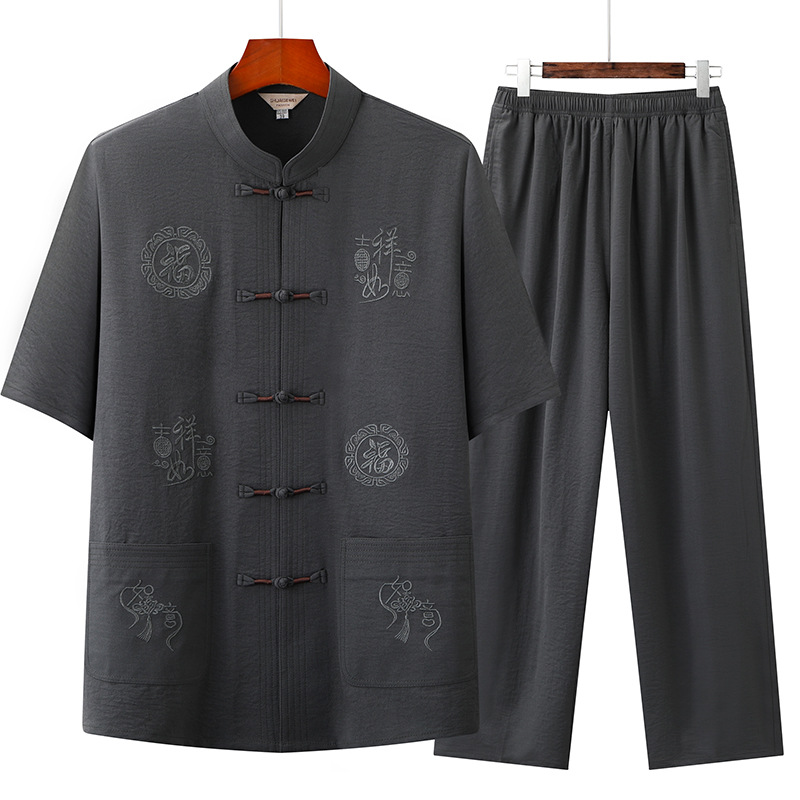 Темно-серый благоприятный костюм с короткими рукавами; Светло-серый благоприятный костюм с коротким рукавом; Красный благоприятный костюм с короткими рукавами; Благоприятный костюм с короткими рукавами цвета хаки
