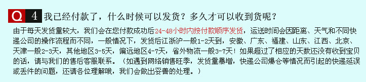 收到货物后,如果有任何疑问,请在3天之内联系我们,在没有联系我们之前请不要先着急着给差评,我们将会不遗余力配合你解决问题。但同时也敬请喜欢以差评威胁的挑剔买家绕道而行。