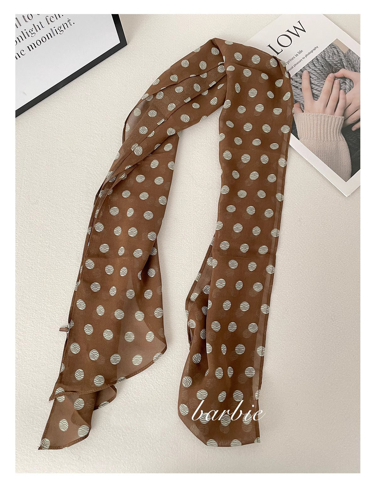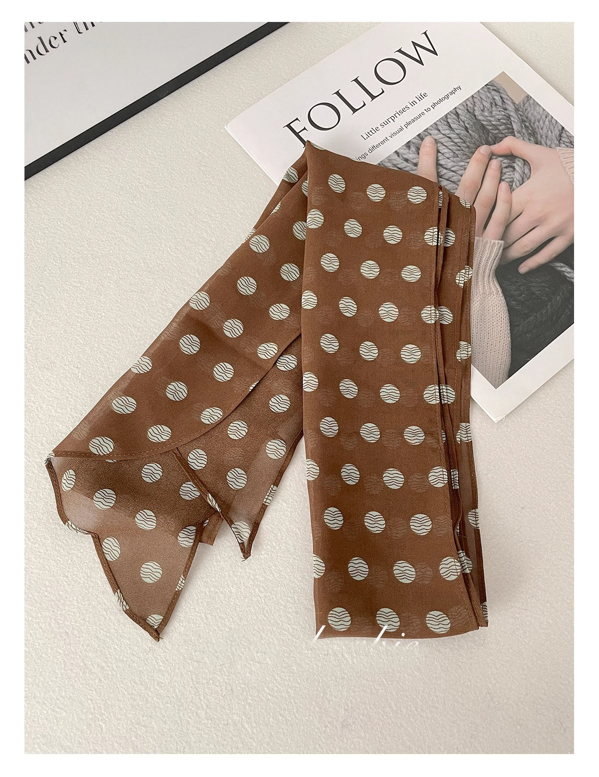 Волосы для волос европейские и американские аксессуары коричневый 2025 весенний шейный женский шарф с принтом