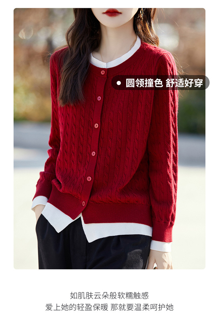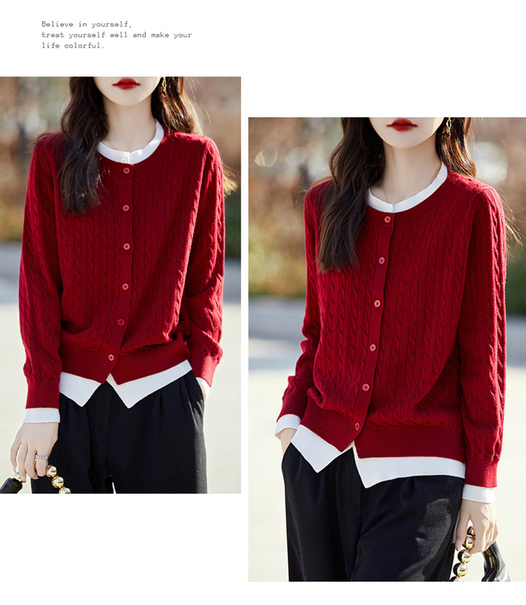 25 весенне-осенние модели трансграничный вязаный свитер с круглым вырезом поддельные две части шерстяной кардиган