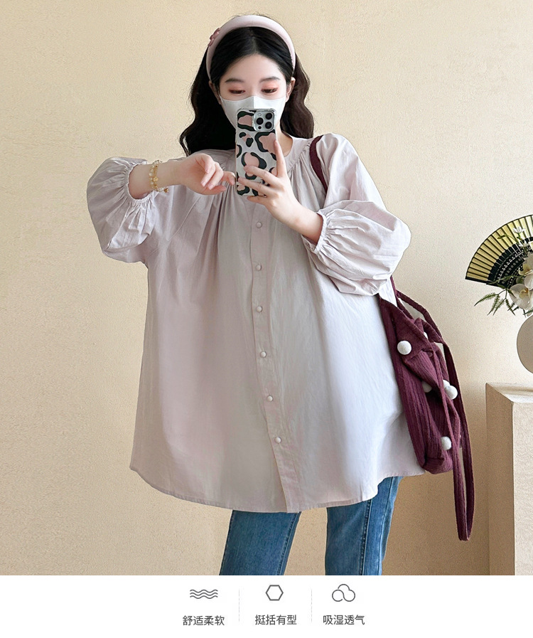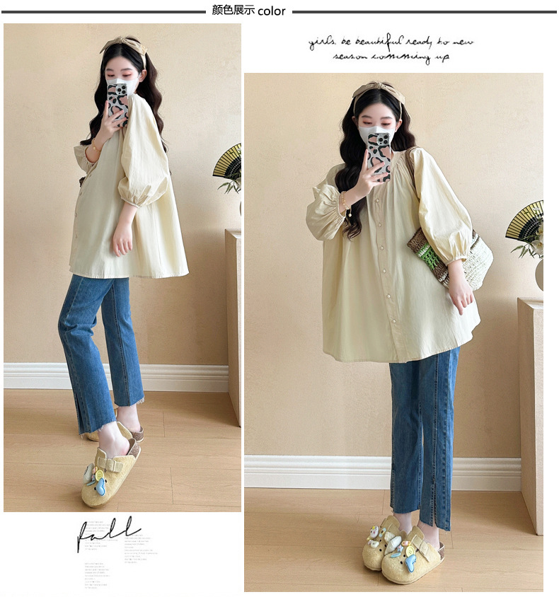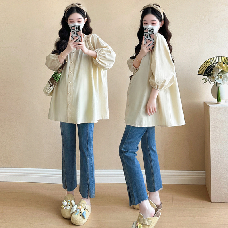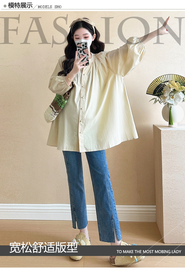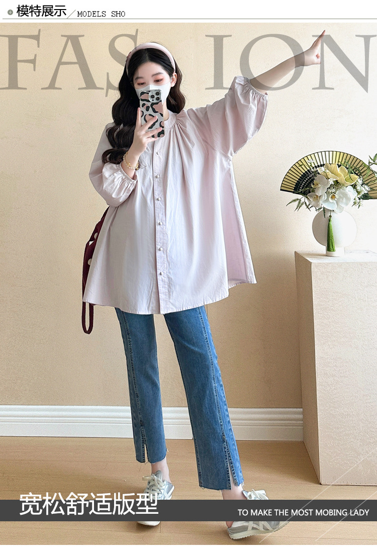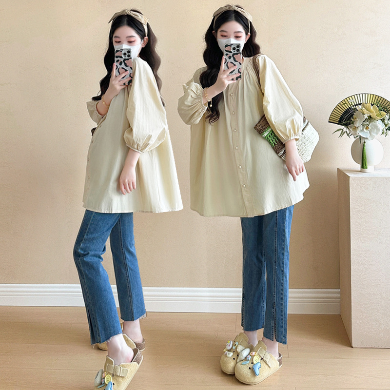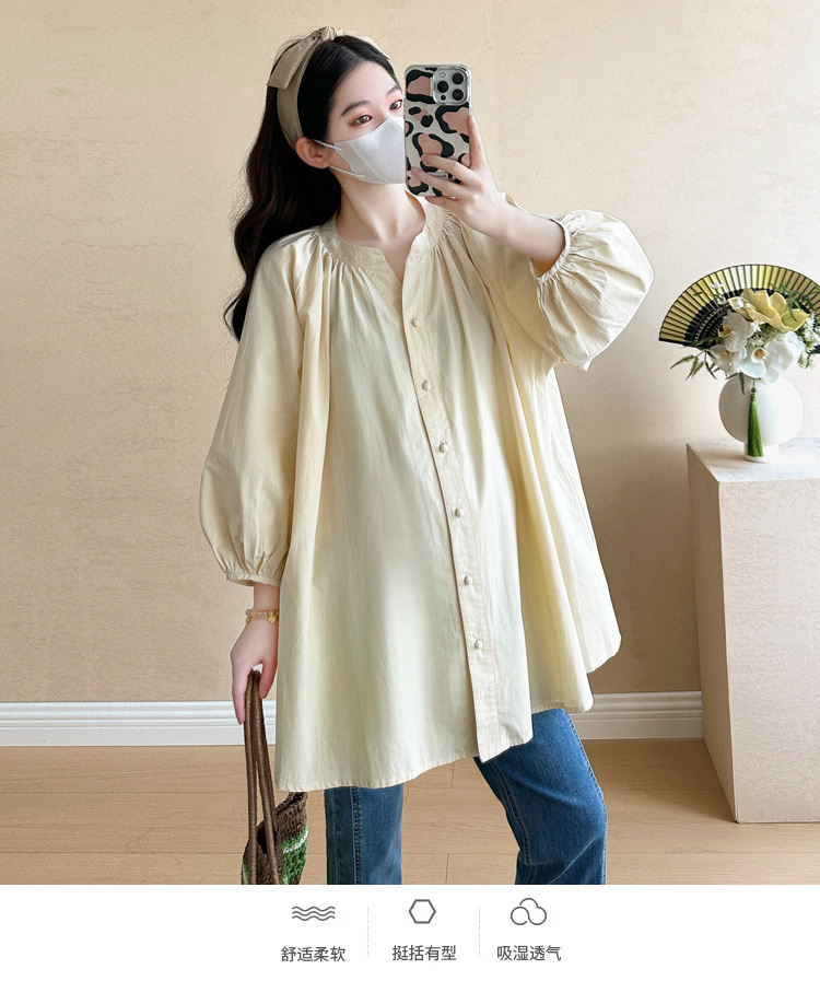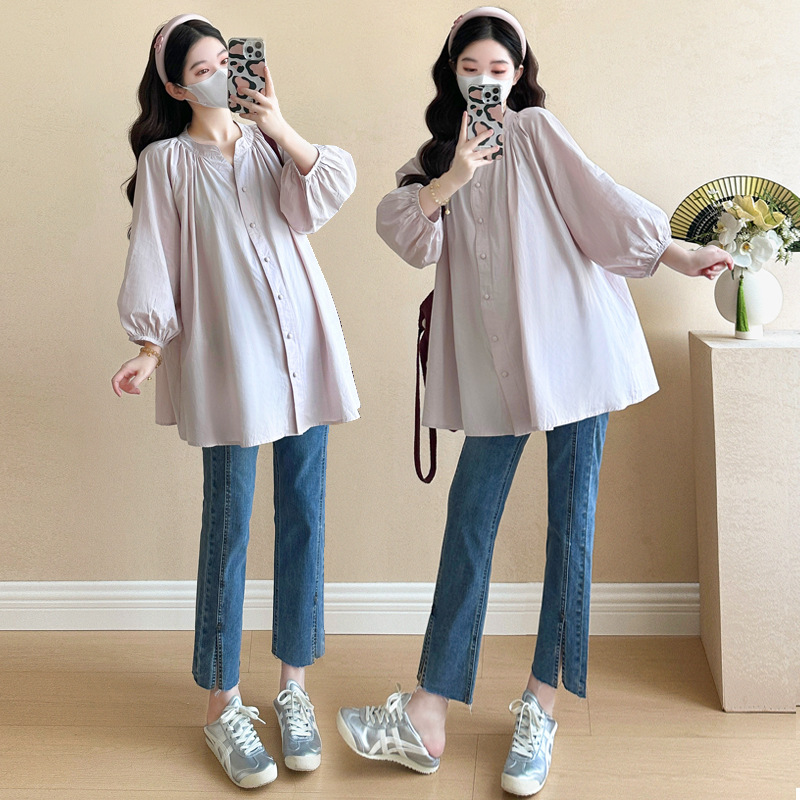 Пятно для беременных одежды 2025 весна новые длинные рукава средние и длинные рубашки для беременных