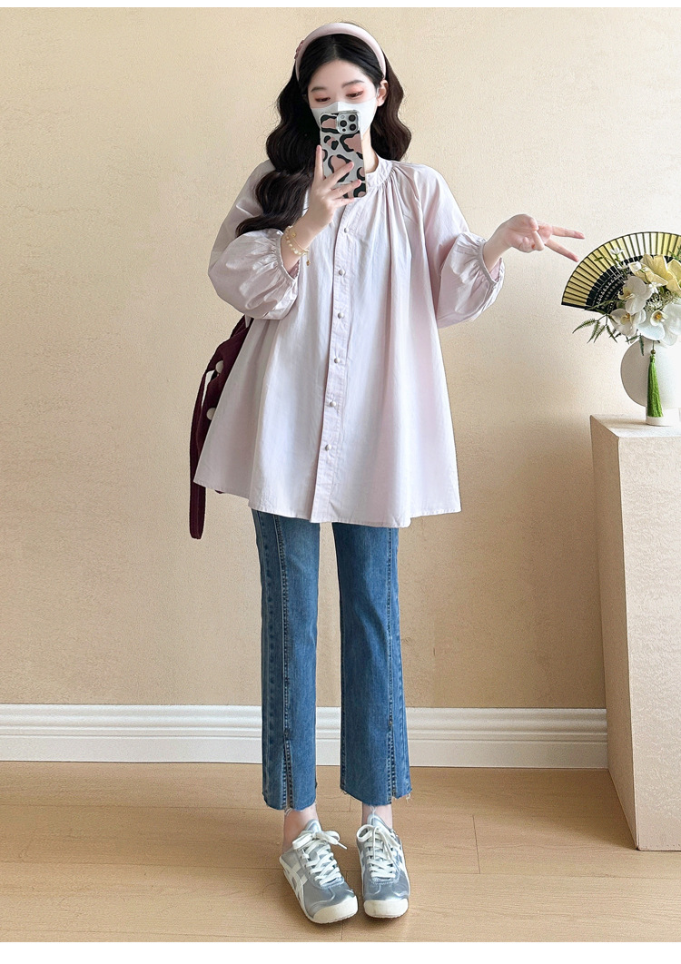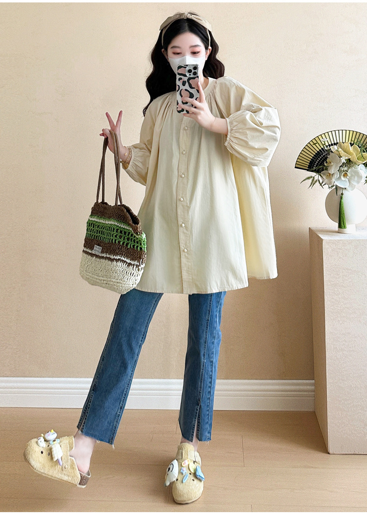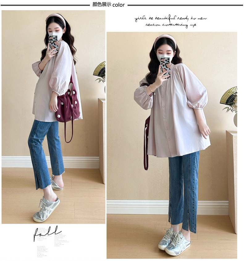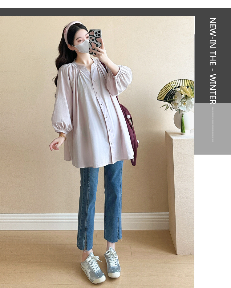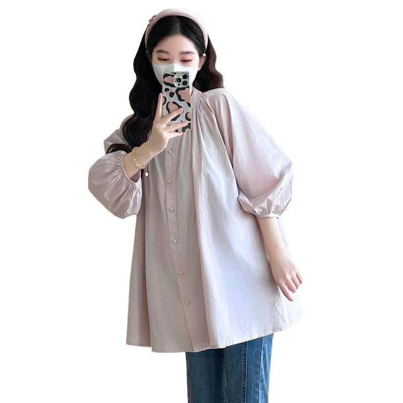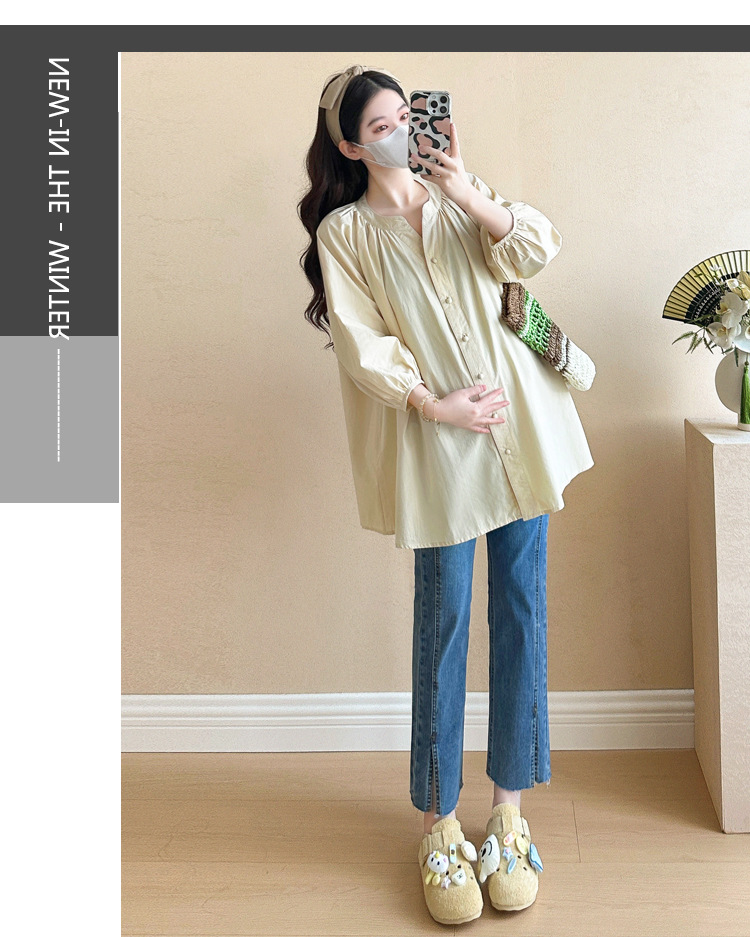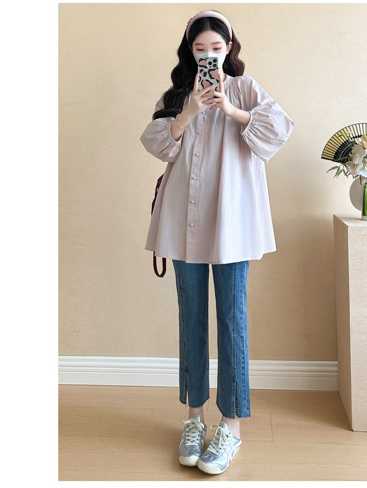 Пятно для беременных одежды 2025 весна новые длинные рукава средние и длинные рубашки для беременных