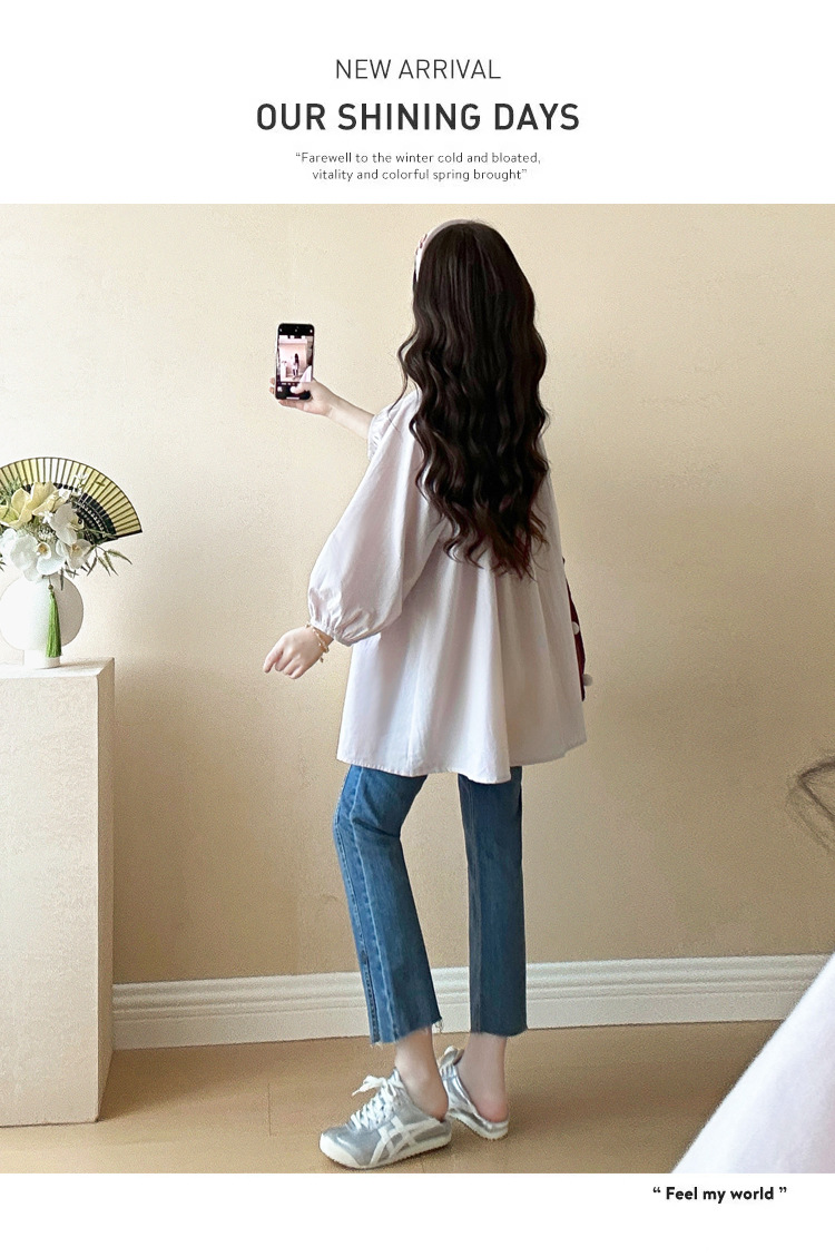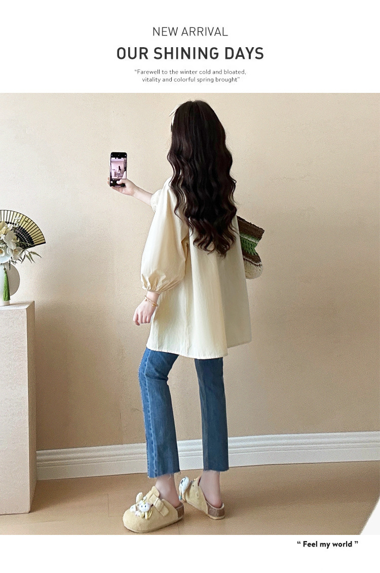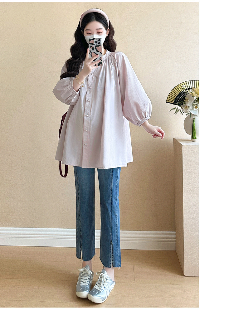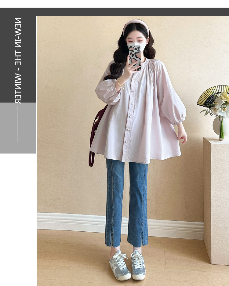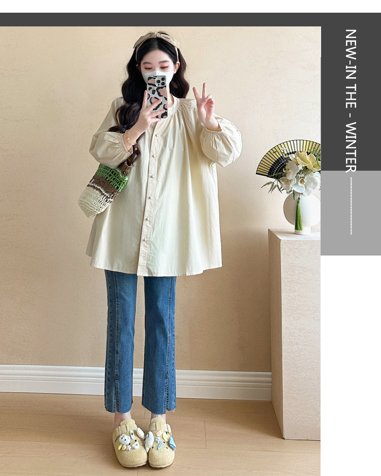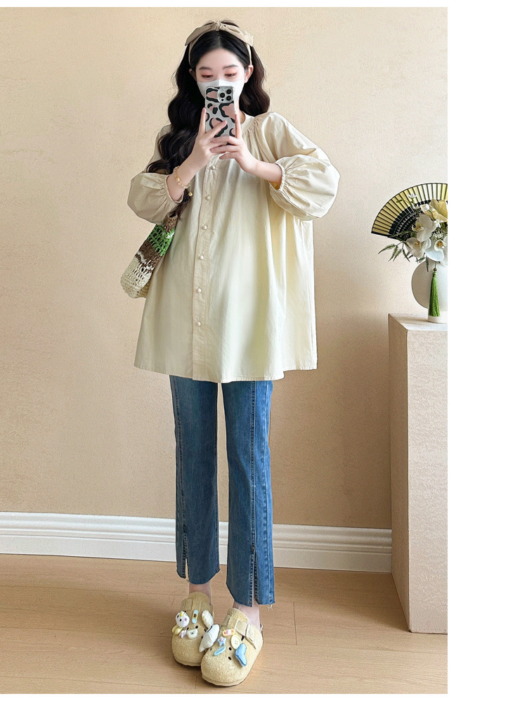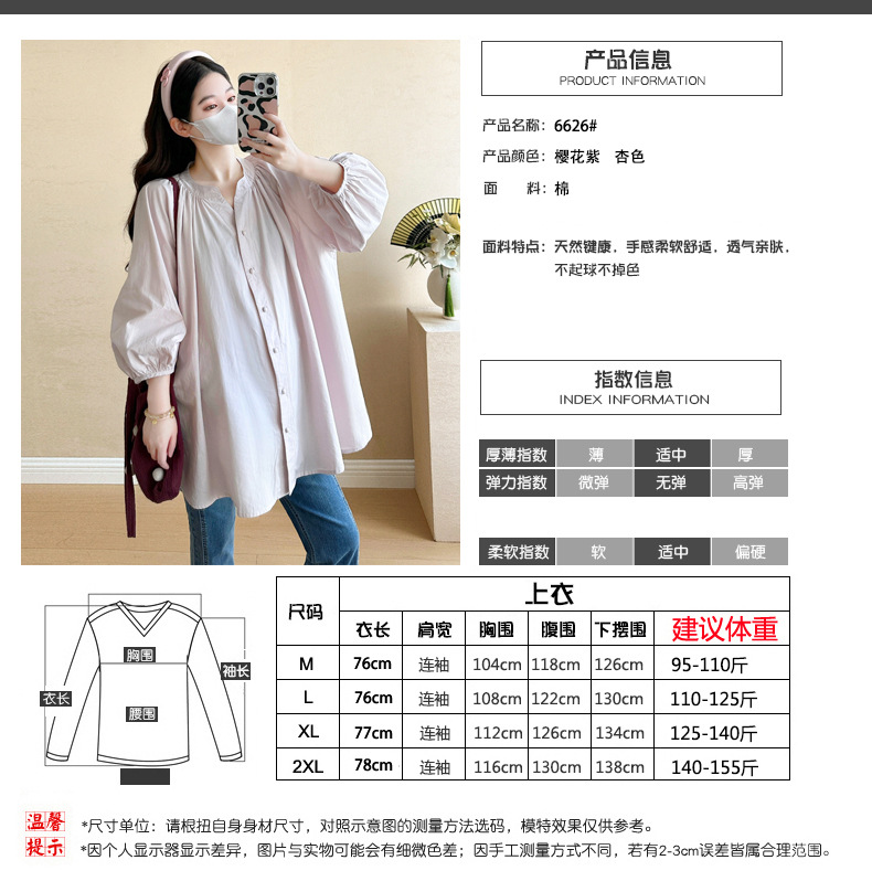 Пятно для беременных одежды 2025 весна новые длинные рукава средние и длинные рубашки для беременных