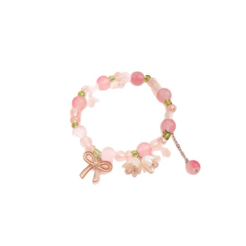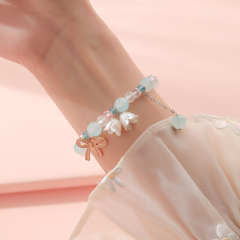 Прямые продажи с фабрики, сладкий кремовый бант, лилия долине, цветок, браслет, студенческий градиент, цветной стеклянный браслет, трансграничная оптовая продажа
