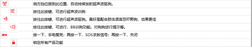 内置配件:驱狗器.吊绳.充电线.说明书。