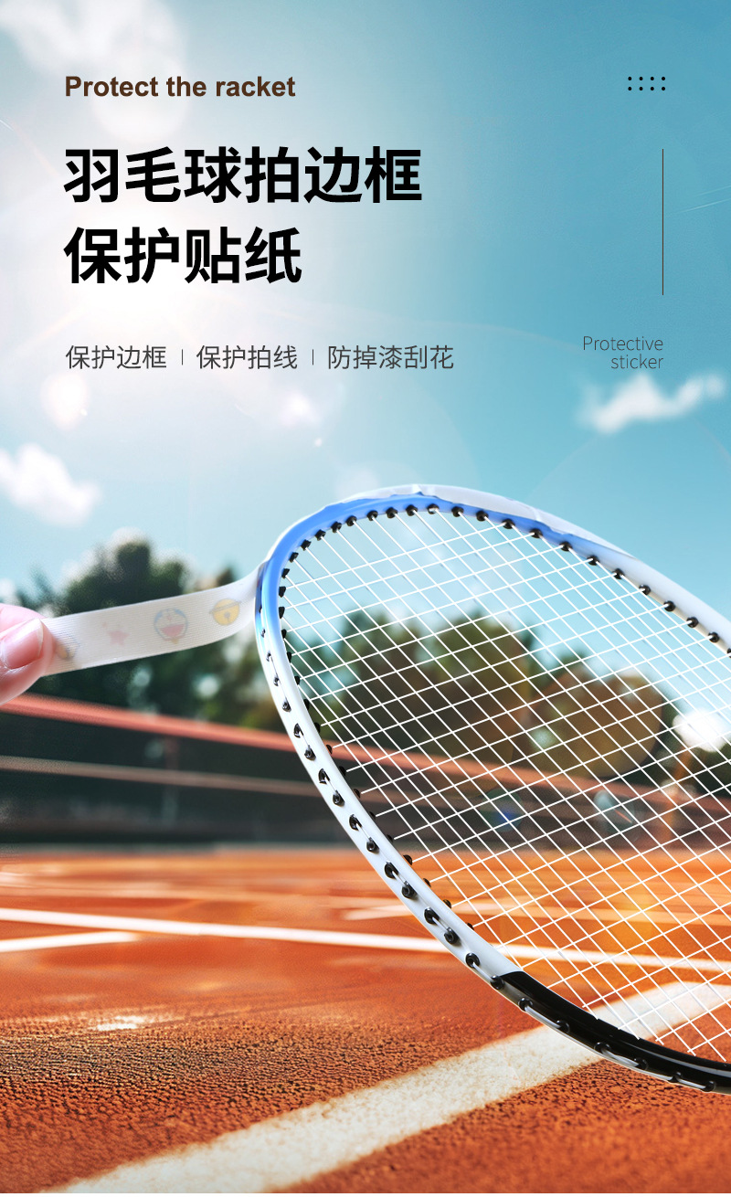 Защитная наклейка на ракетку для бадминтона с рисунком, противоизносная наклейка на головку ракетки по всему краю, износостойкая защитная наклейка из полиуретанового материала на рамке ракетки