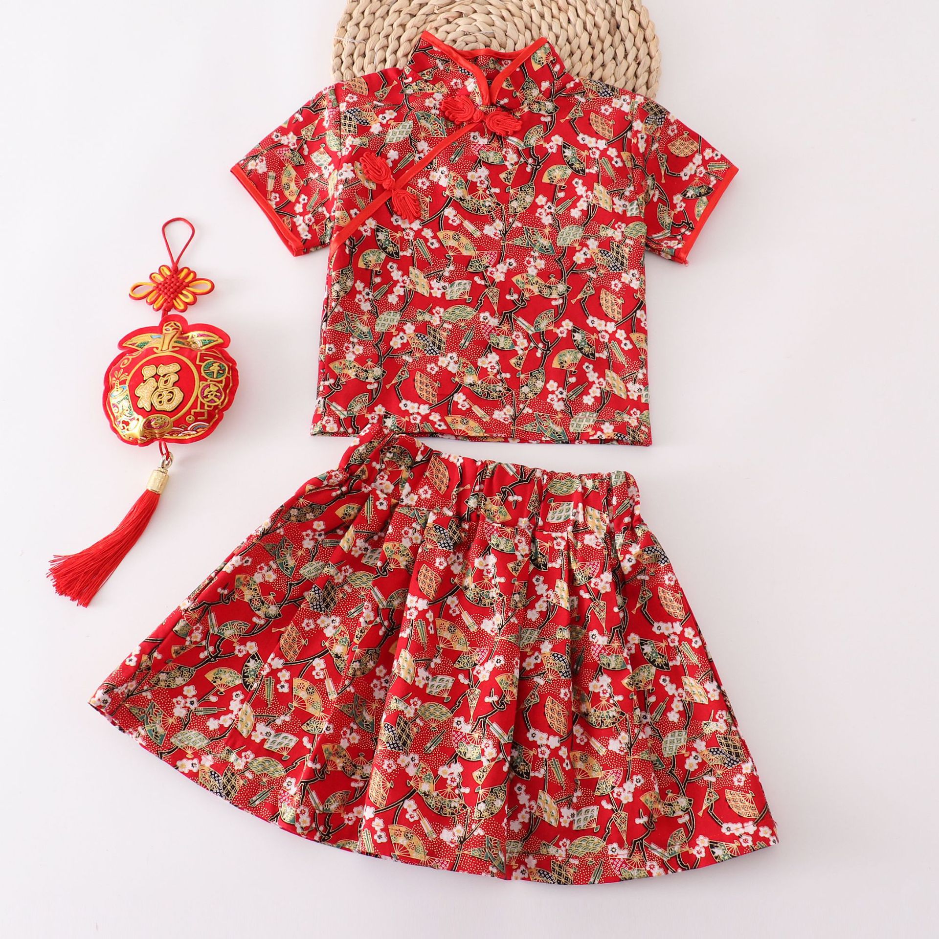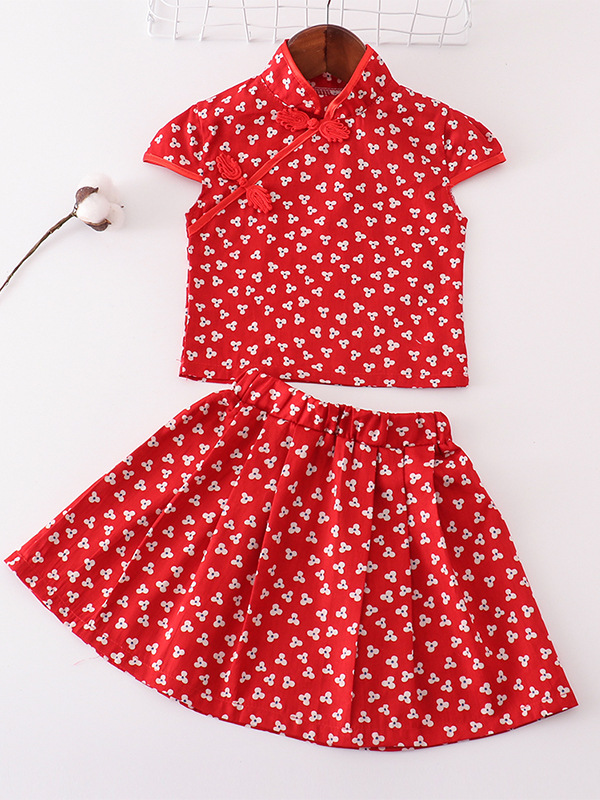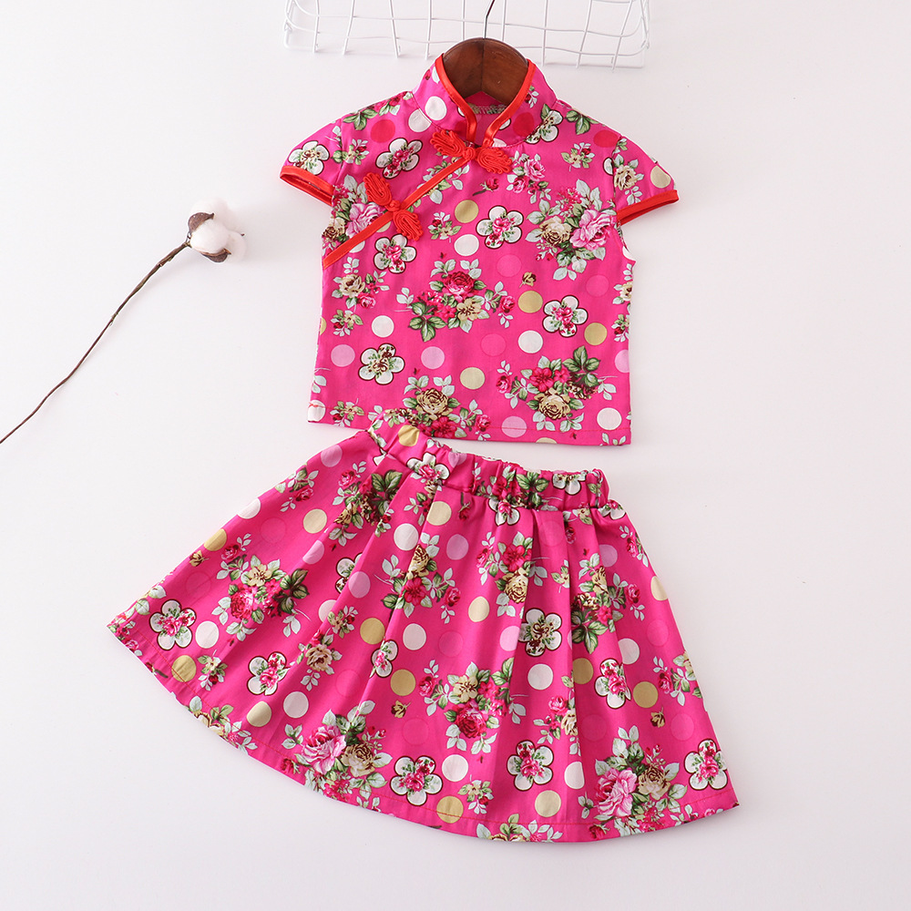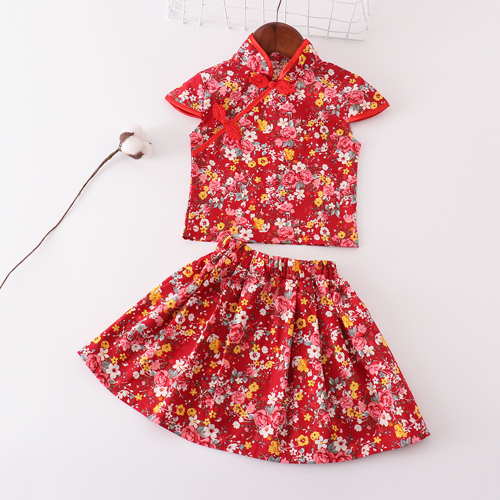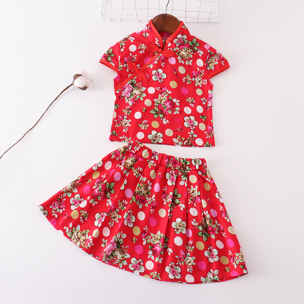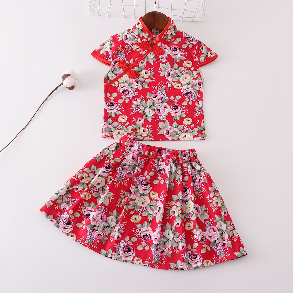 Набор платьев в китайском стиле для девочек Красный цветочный цветок новая юбка