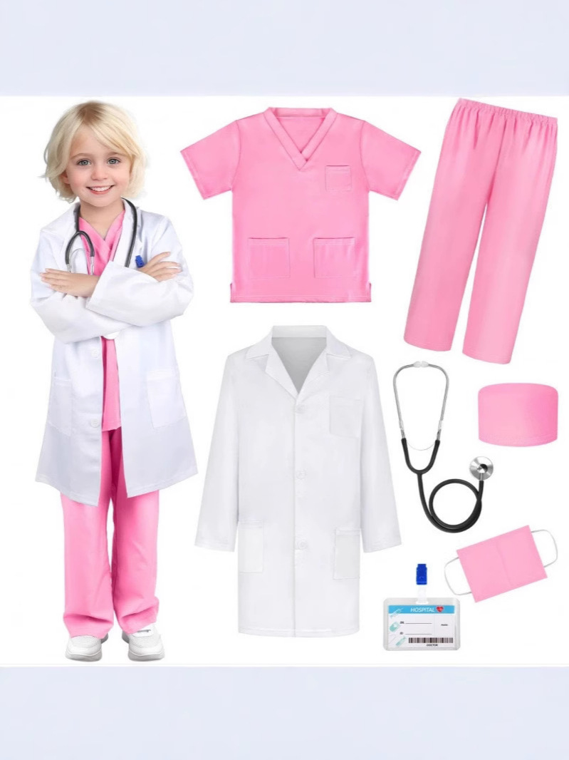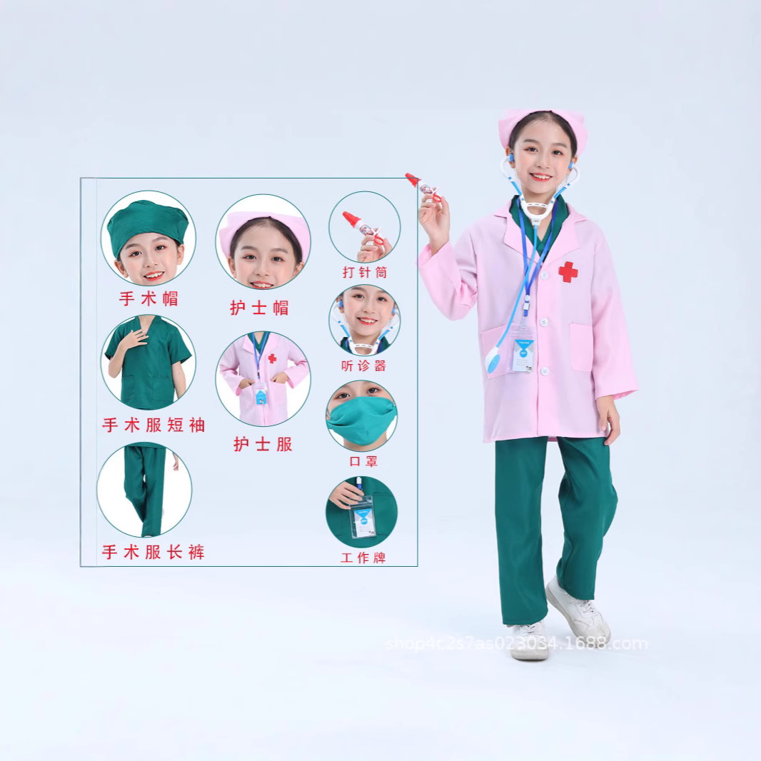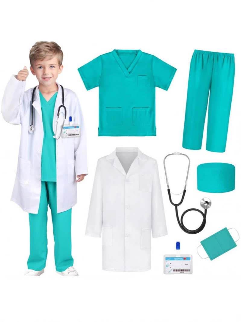доктор; медсестра; Белый халат с прямым кроем; Белый халат с короткими рукавами; Белый халат + горизонтальное разрешение на работу + очки и лупа; Зеленый хирургический халат; Розовый хирургический халат; Комплект белый халат + зеленый хирургический халат; Комплект белый халат + синий хирургический халат; Комплект белый халат + розовый хирургический халат; Белые длинные рукава + горизонтальное разрешение на работу.; Белые длинные рукава + термотрансферная этикетка; синий хирургический халат; Набор "Доктор + игрушка", 7 предметов; Розовый комплект хирургического халата; Набор зеленых хирургических халатов; Синий комплект хирургического халата; Комплект зеленого хирургического халата (металлический стетоскоп); Доктор + металлический стетоскоп; Принт Доктор + Металлический стетоскоп; Комплект синего хирургического халата (металлический стетоскоп); Белый халат + металлический стетоскоп королевского синего цвета + разрешение на работу.; Белый халат с синим логотипом + горизонтальное разрешение на работу с королевским синим стетоскопом; Синий логотип, белый халат + разрешение на работу с синим стетоскопом; Розовый хирургический халат + стетоскоп, новое разрешение на работу; Зеленый хирургический халат + стетоскоп, новое разрешение на работу; Синий хирургический халат + стетоскоп, новое разрешение на работу; Бордовый хирургический халат; Бордовый хирургический халат + стетоскоп, новое разрешение на работу